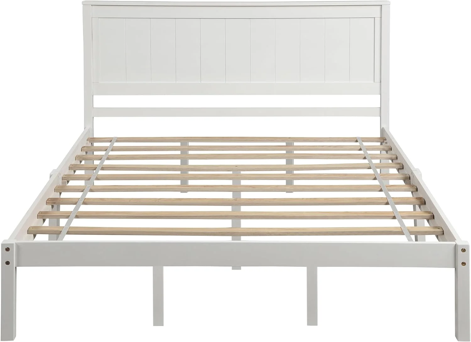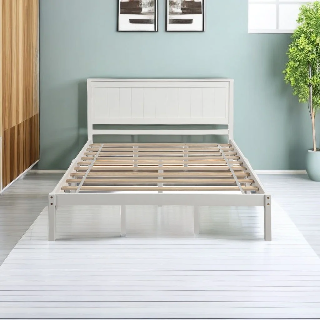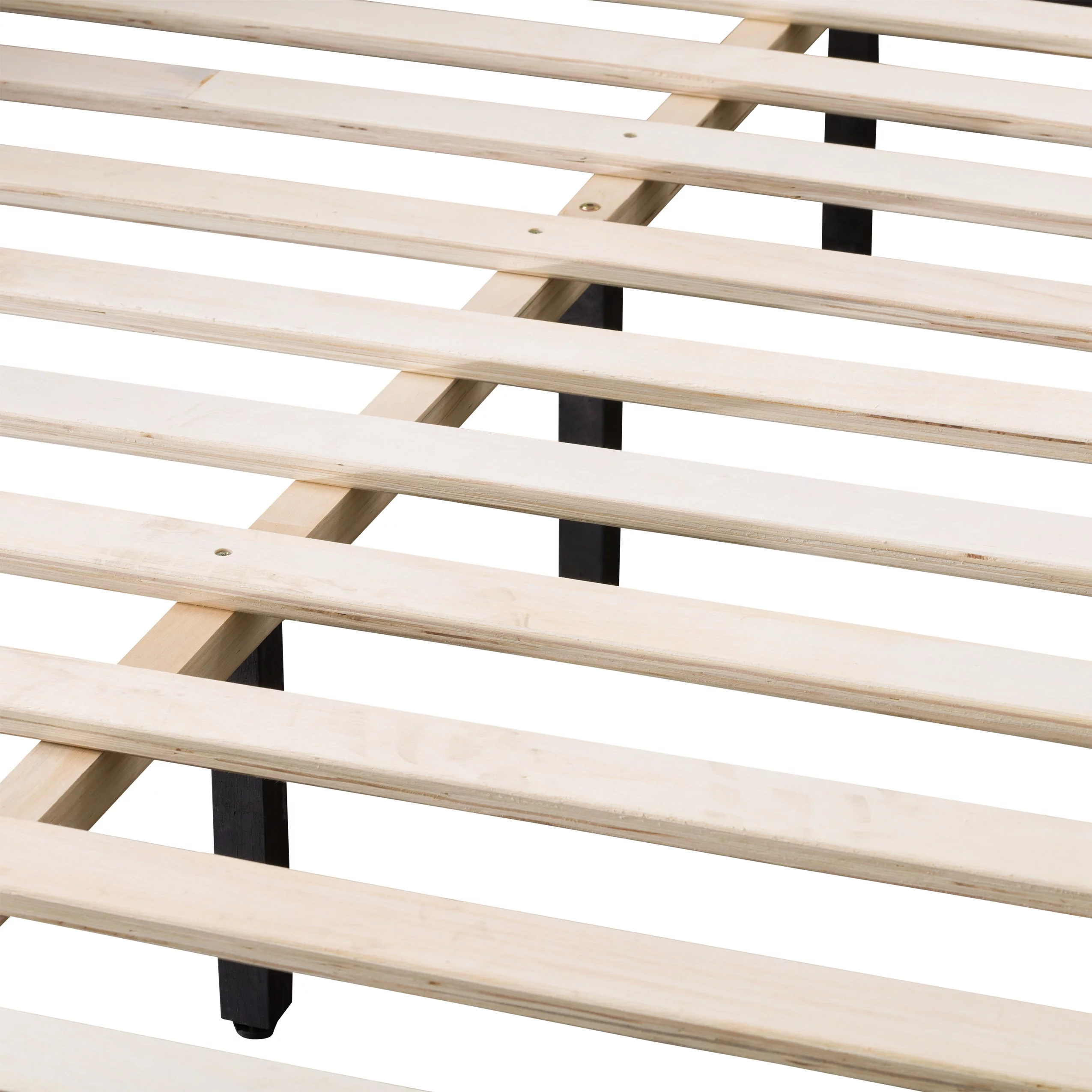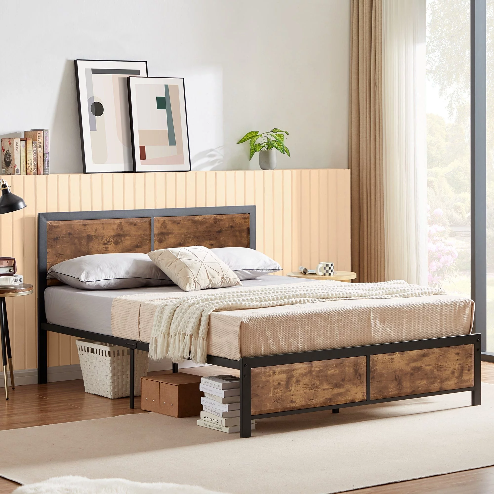KHD Javlergo Industrial Platform Bed Frame with Wood Headboard and Footboard Queen