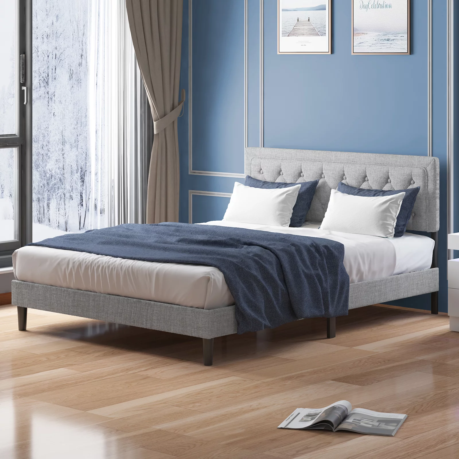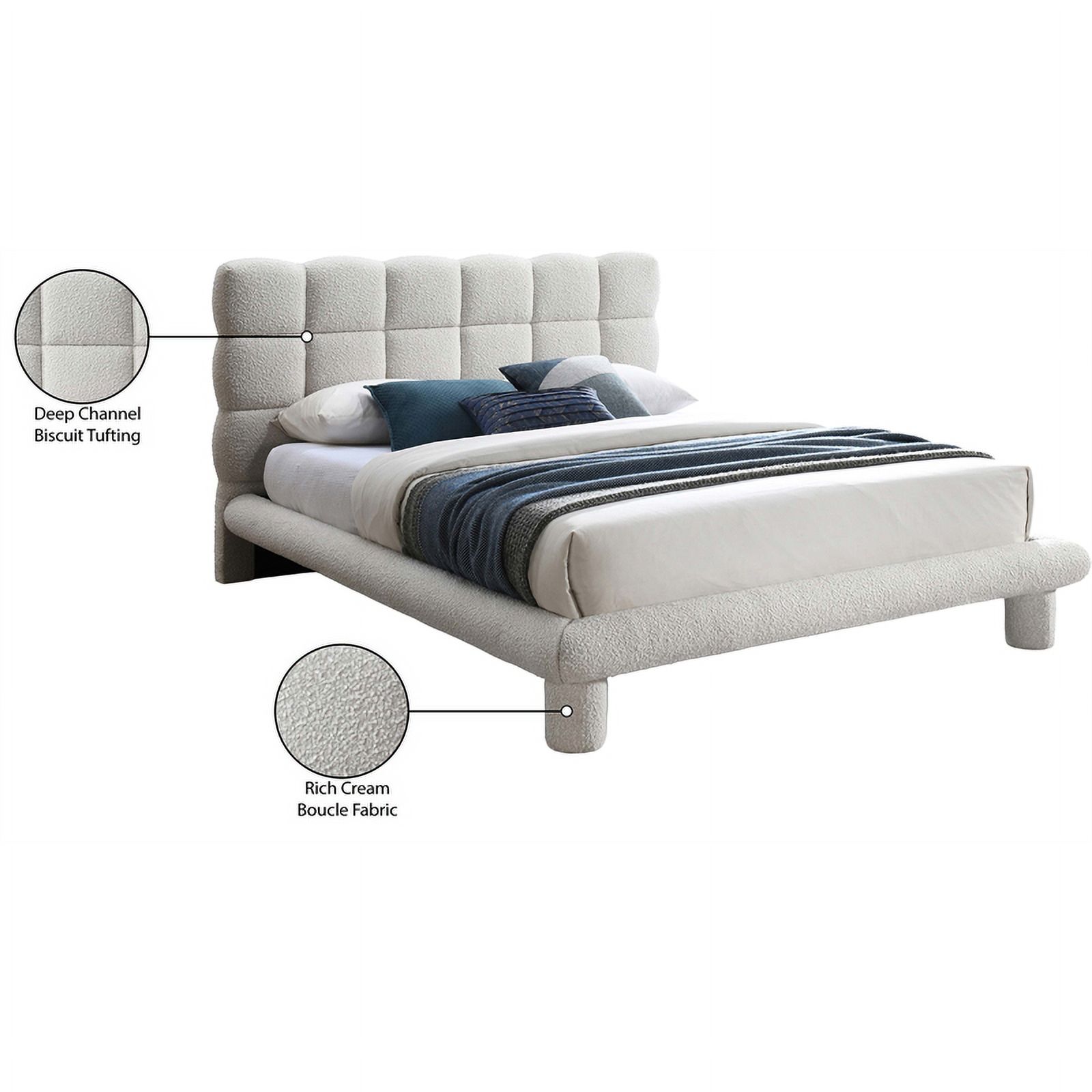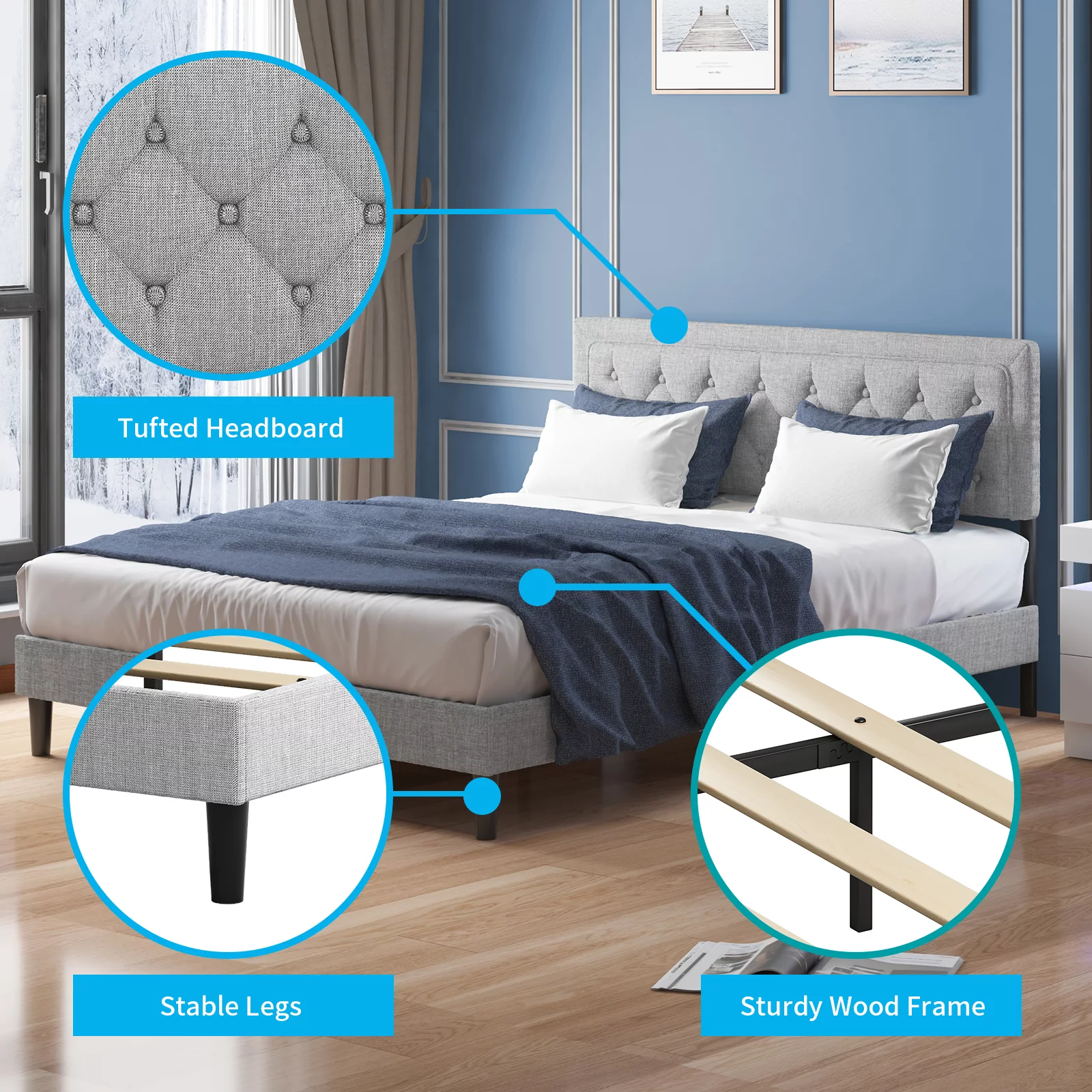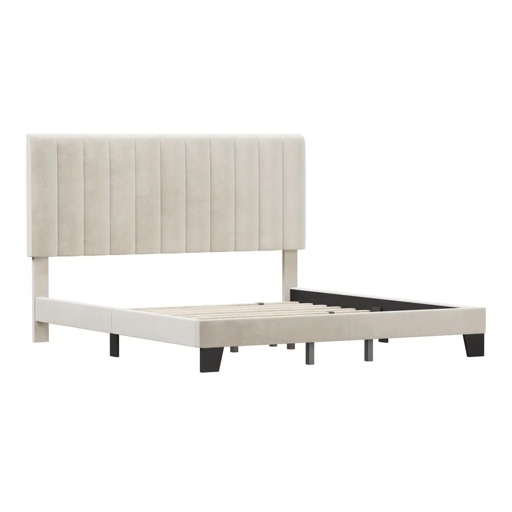 Zanmintaobo Upholstered Platform Bed Frame with Tufted Wingback, Queen Size, Cream