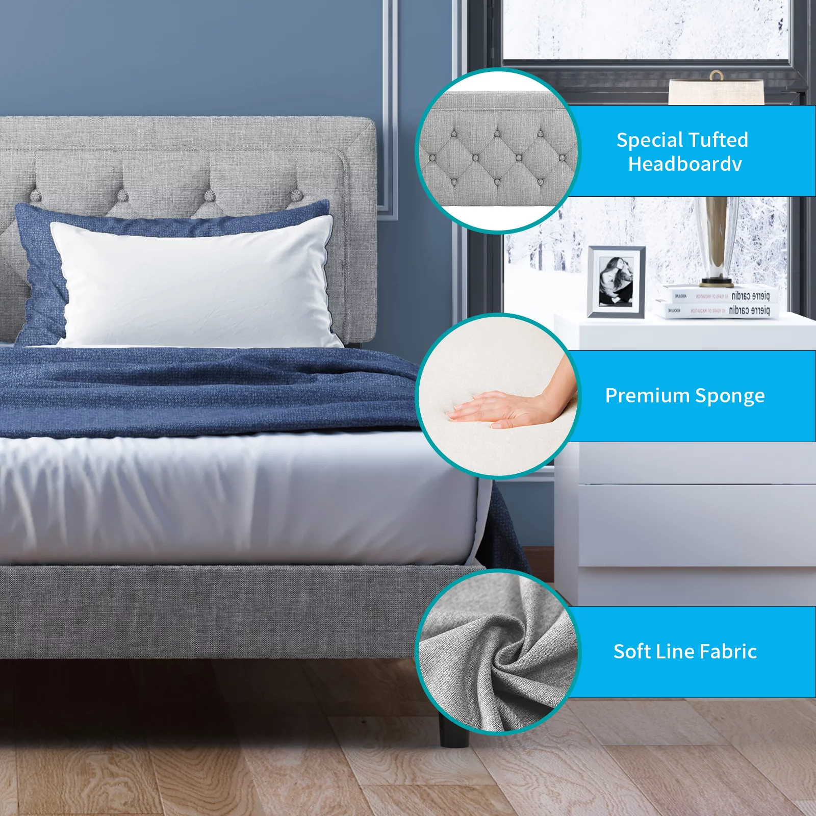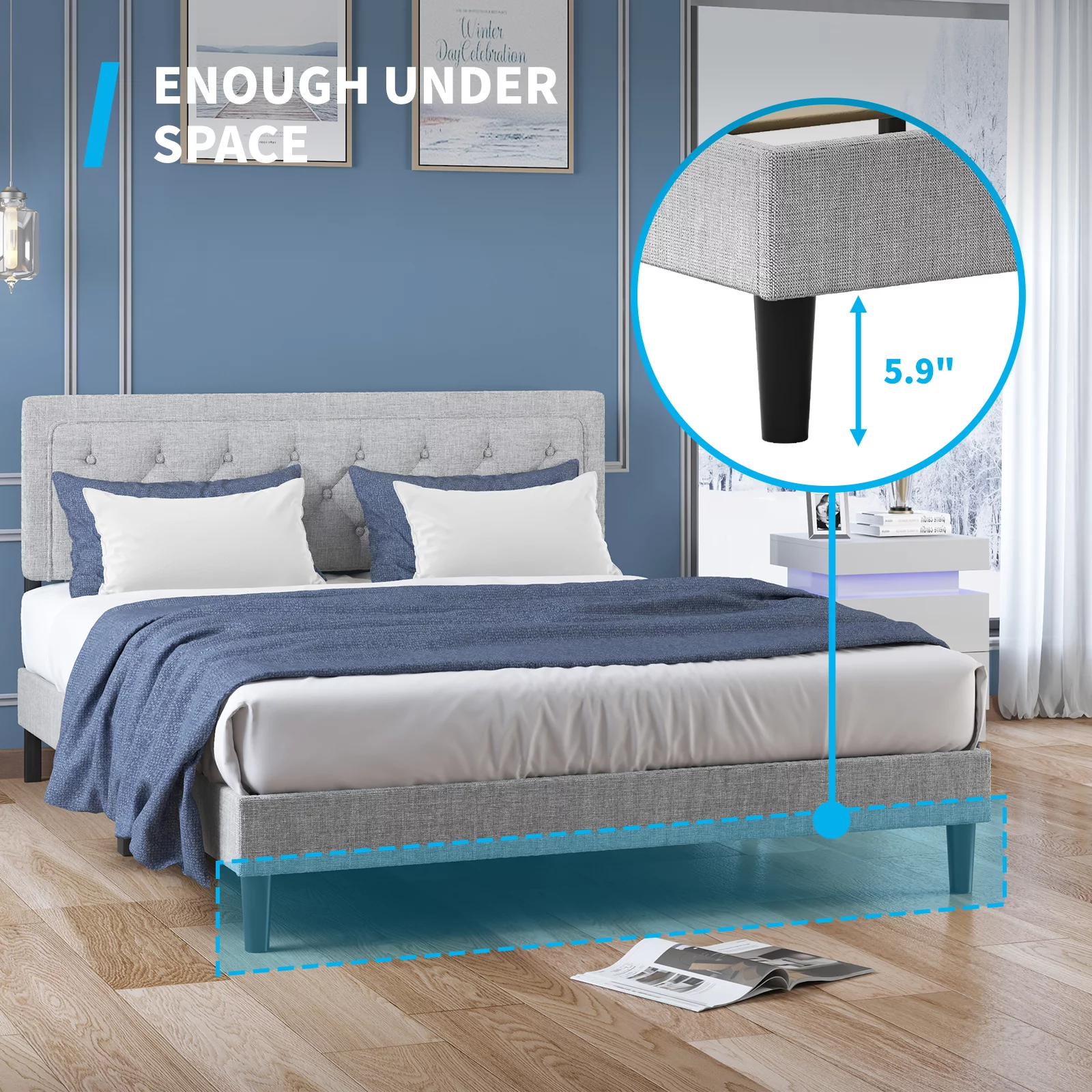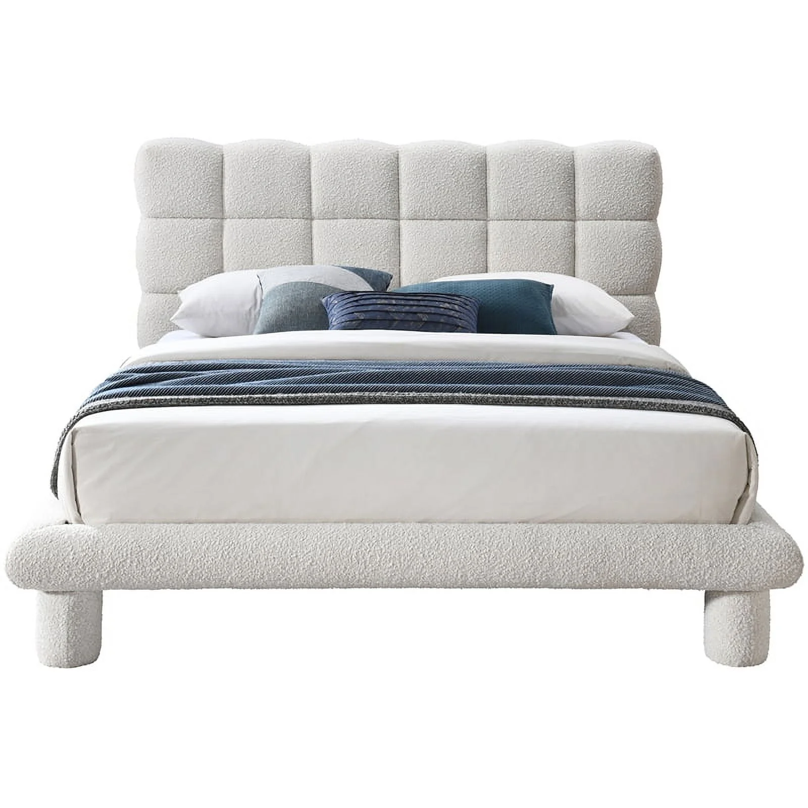 Zanmintaobo Upholstered Platform Bed Frame with Tufted Wingback, Queen Size, Cream