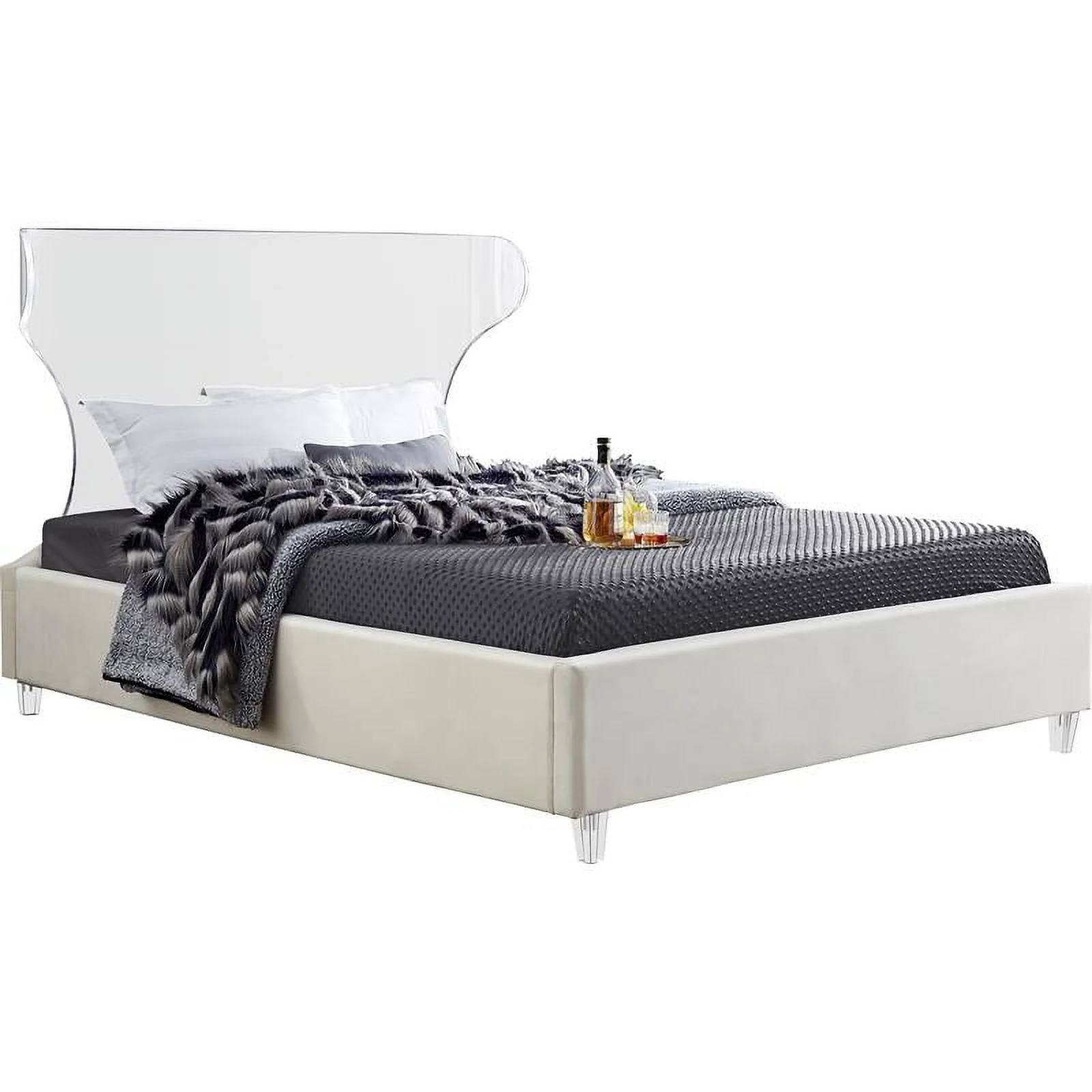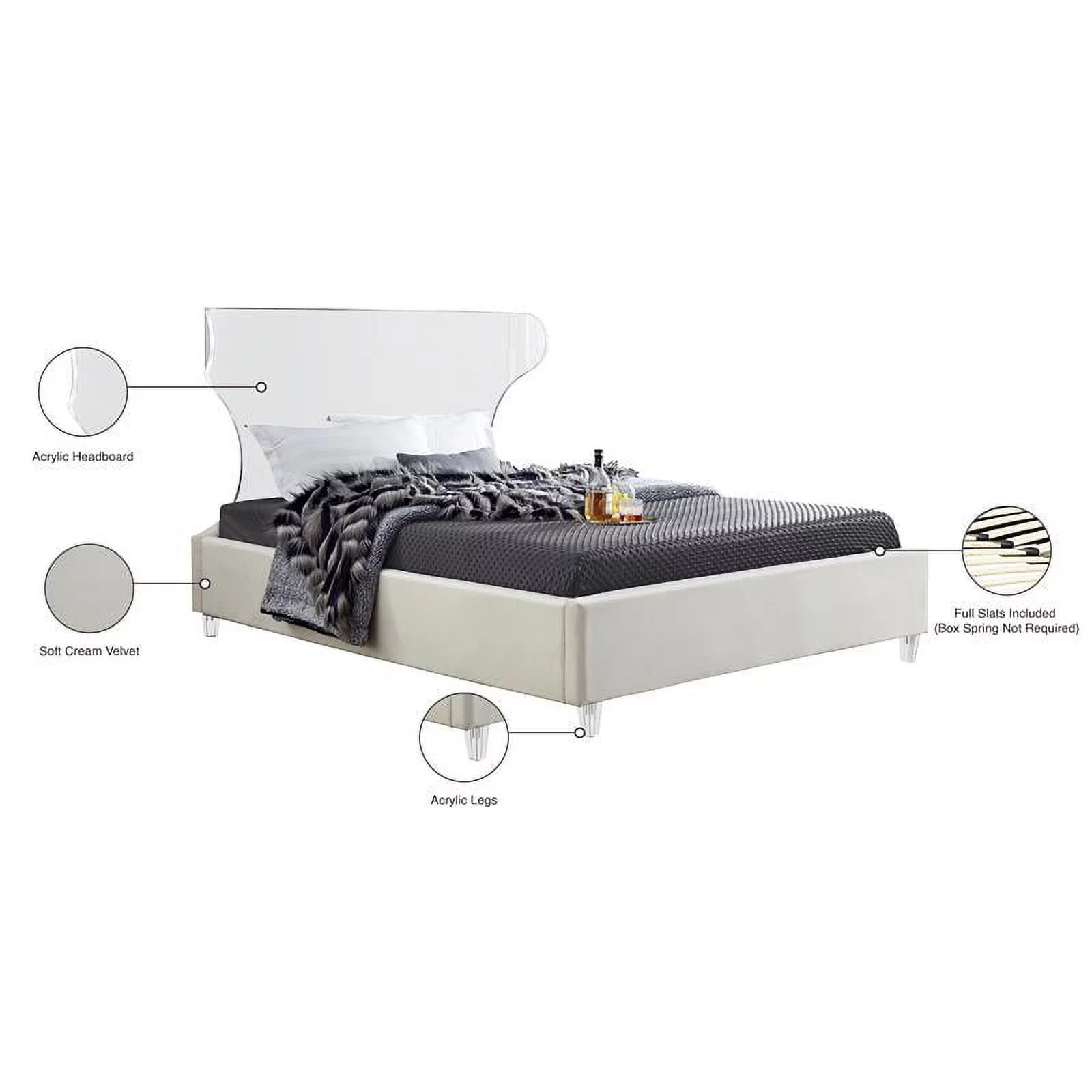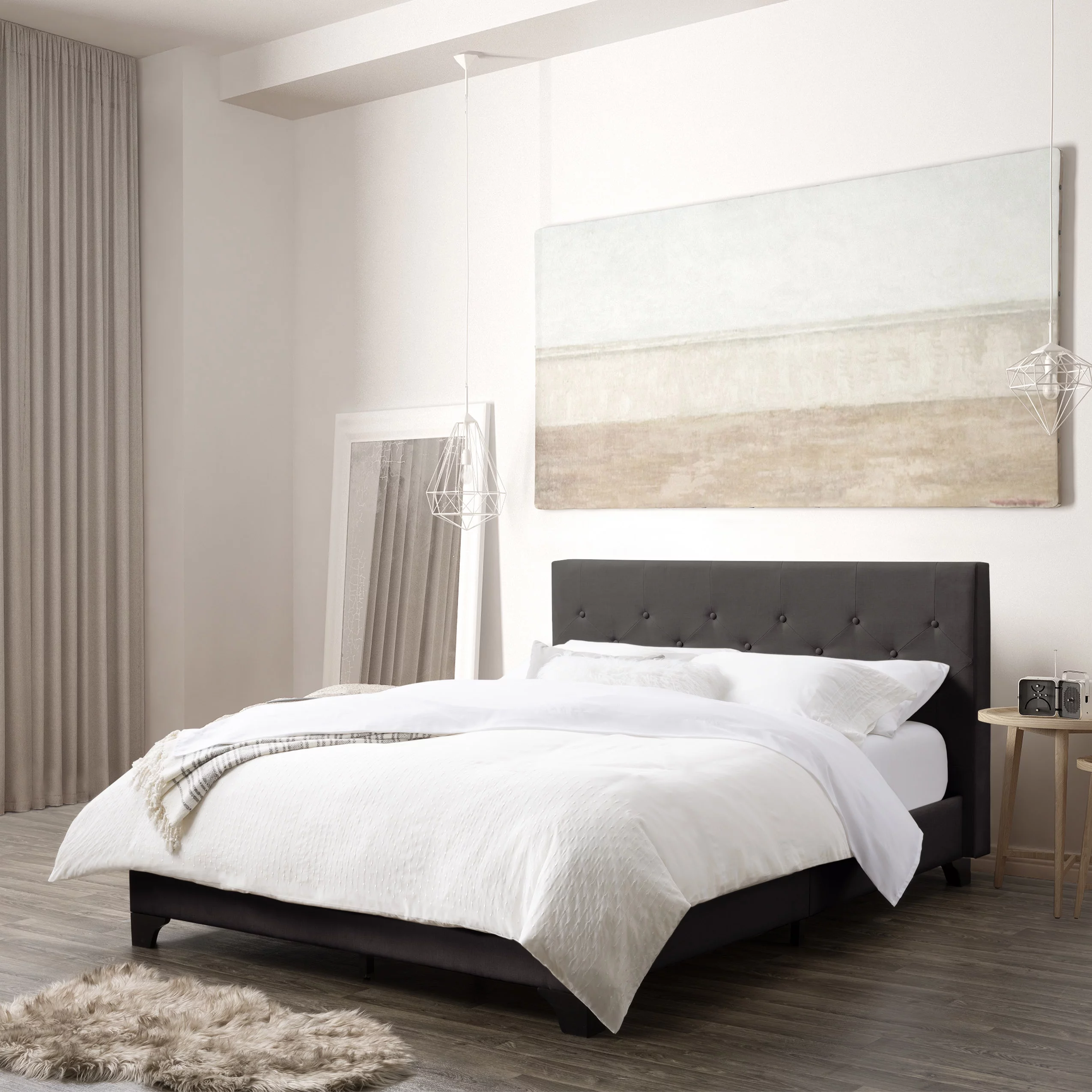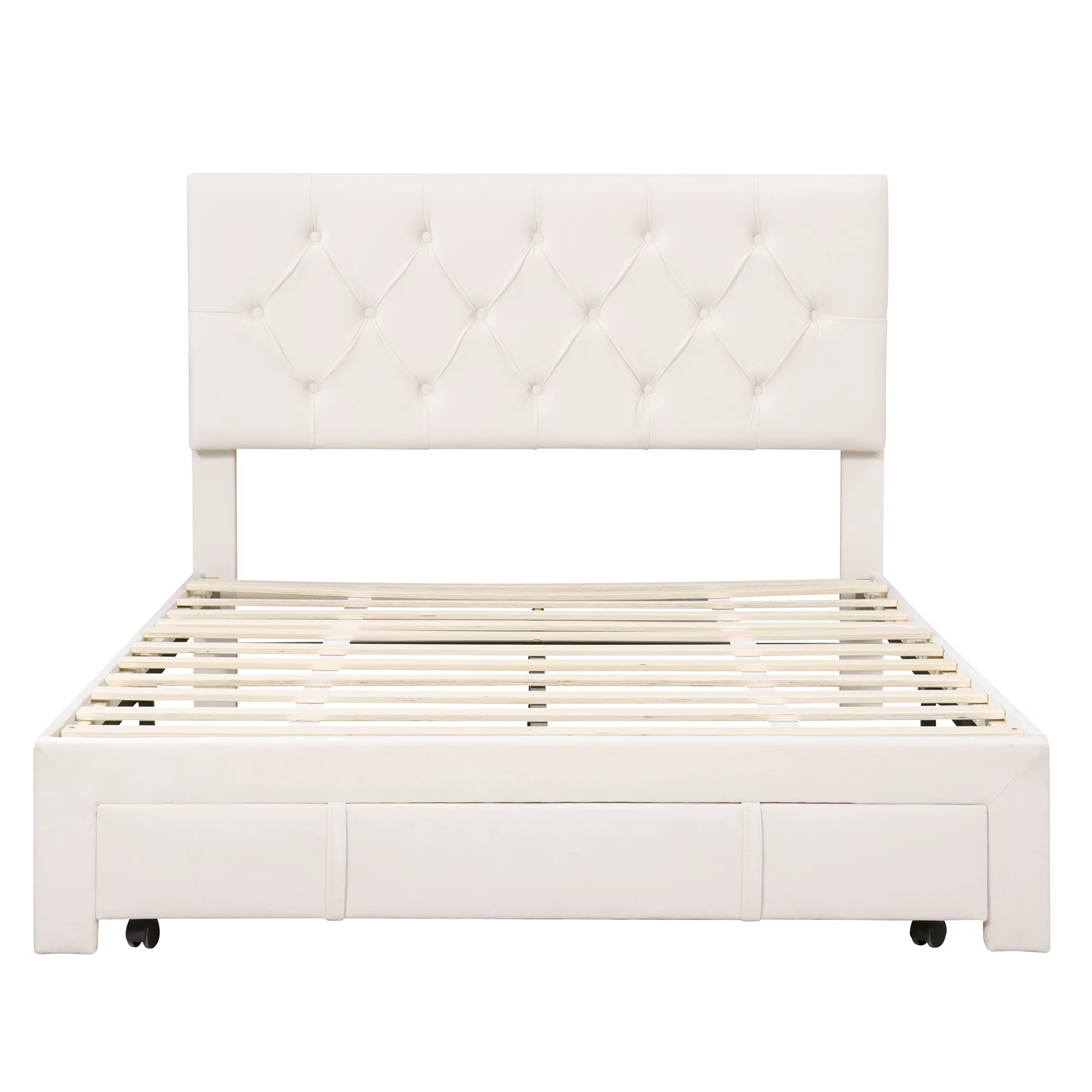 Zanmintaobo Upholstered Platform Bed Frame with Tufted Wingback, Queen Size, Cream