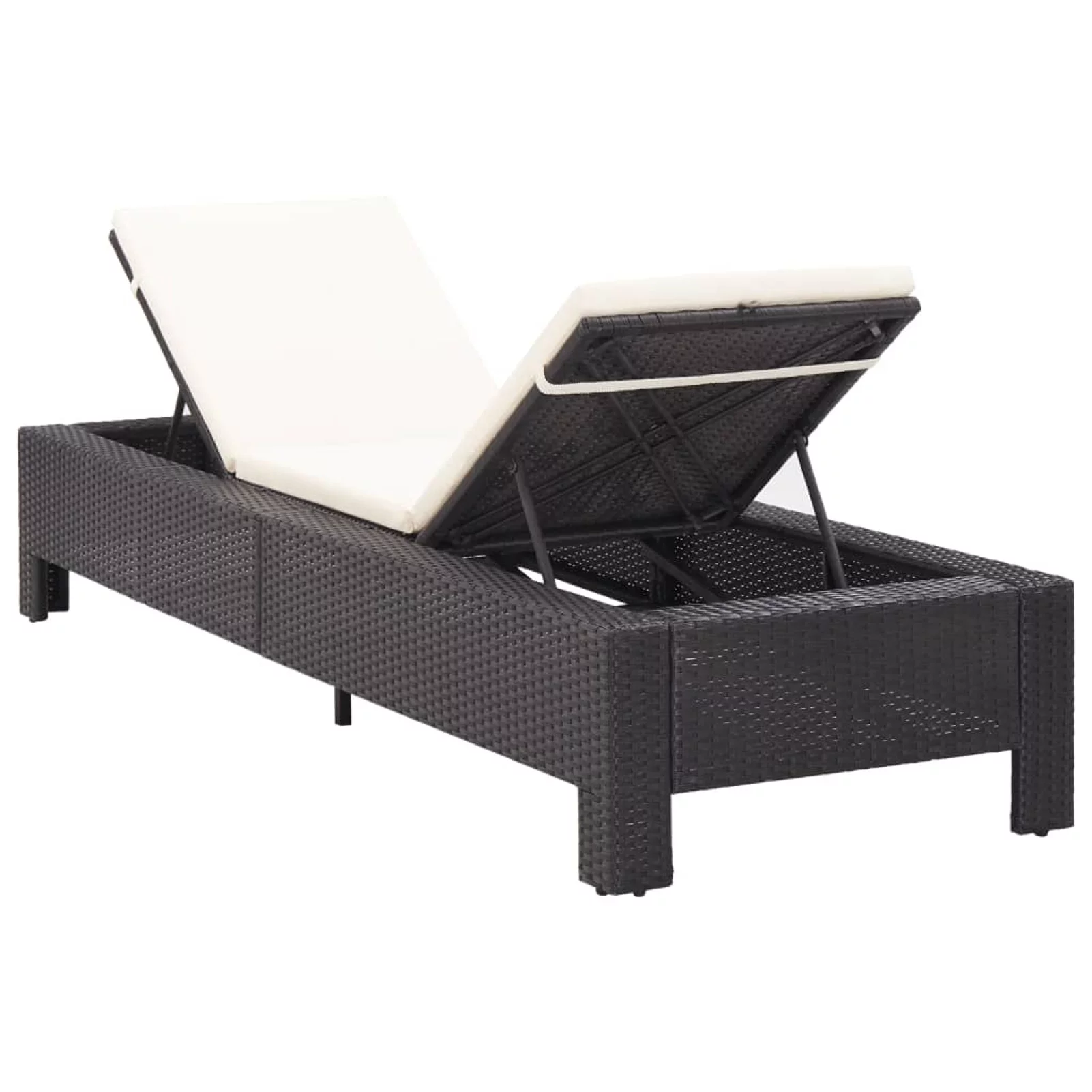 moobody Sunbed with Foldable Roof Black 78.7"x44.9"x50.4" Poly Rattan