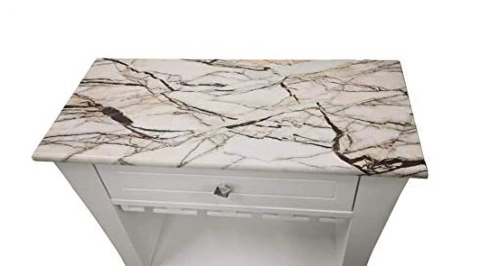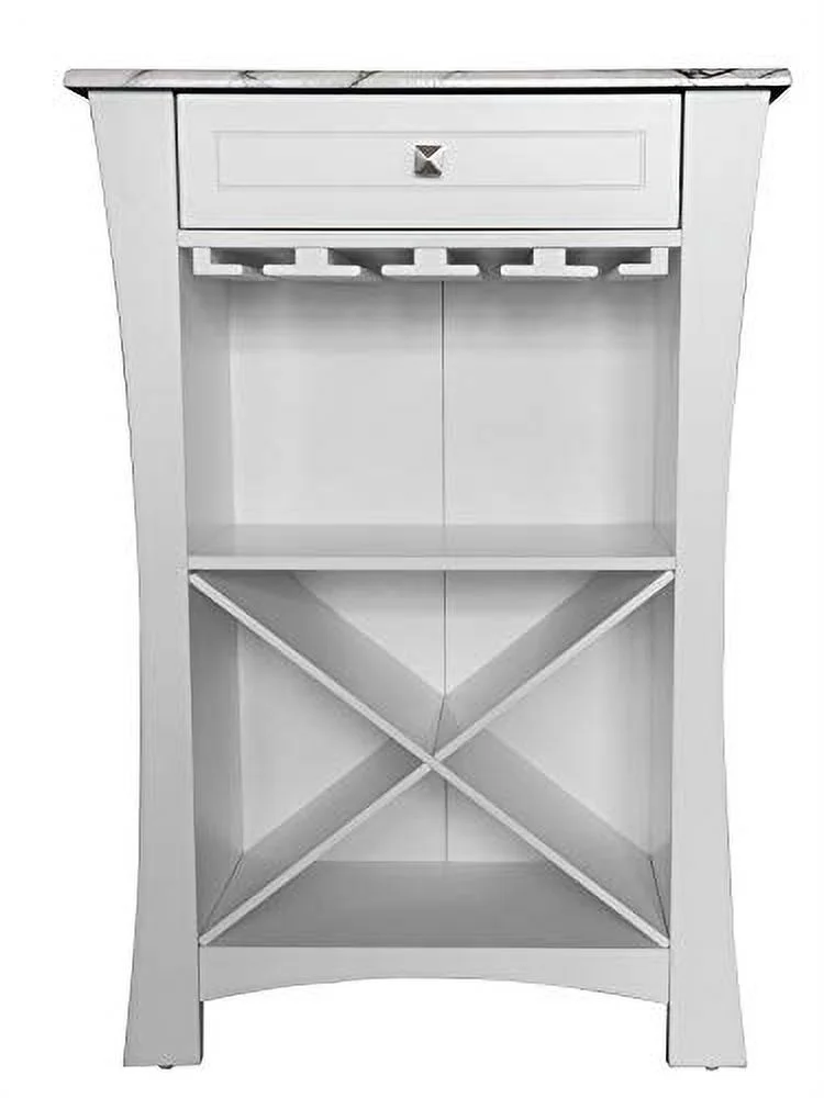 Kings Brand Hiland Bar Cabinet Wine Storage With Glass Holders & Drawer, White, White