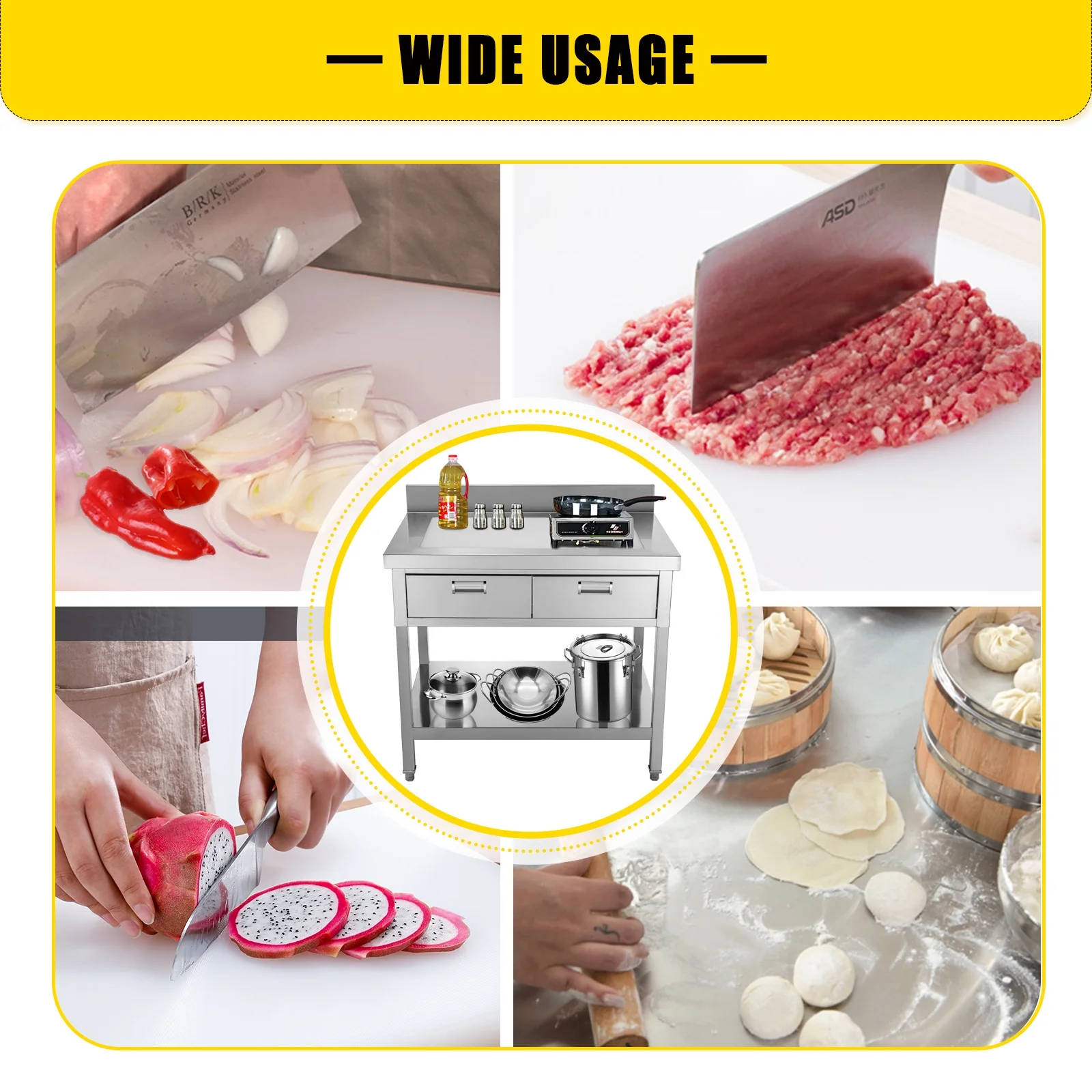 24" x 60" Stainless Steel Work Table With Two Shelves | 12" Wide Double Tier Overshelf | Metal Kitchen Prep Table & Shelving Combo