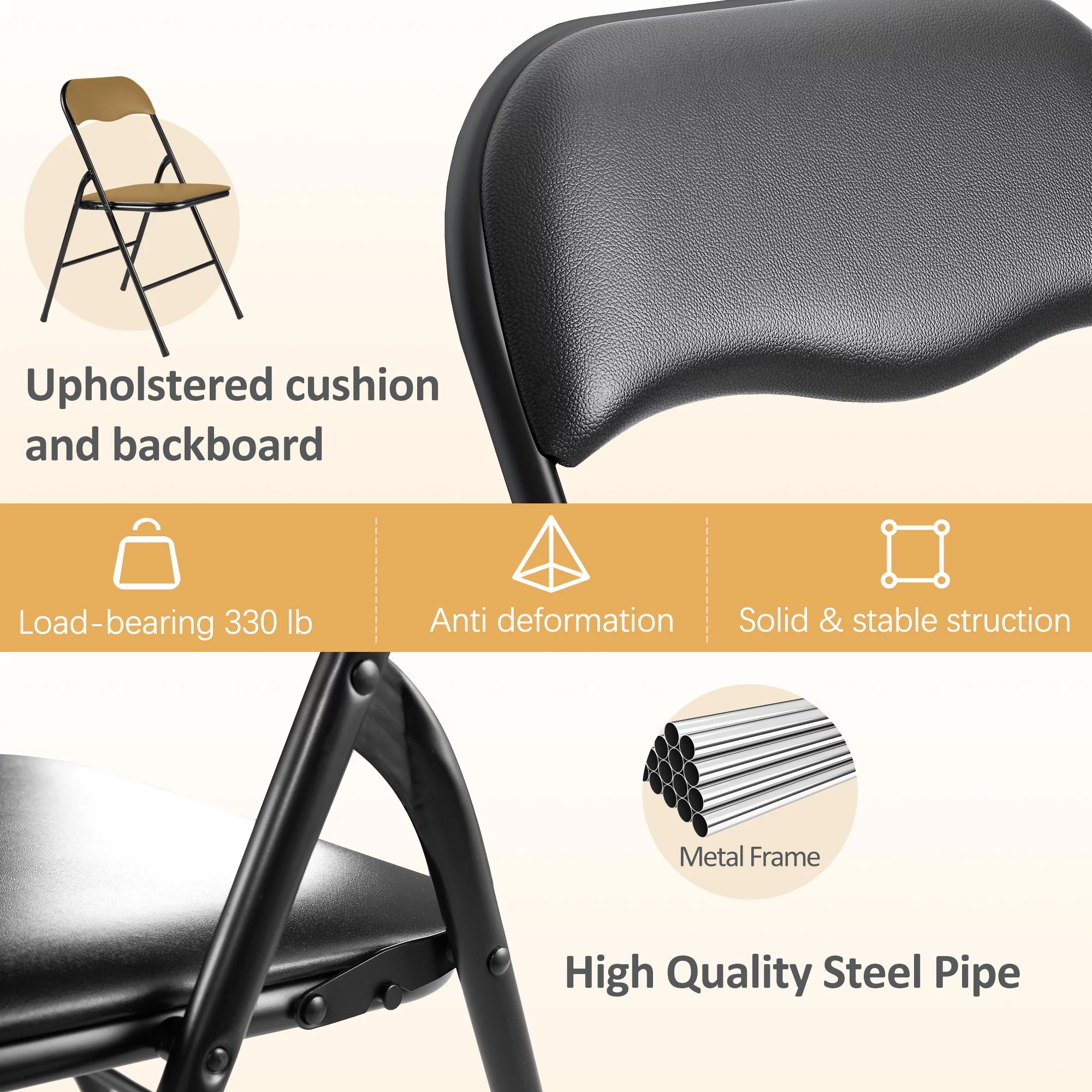 Jaxpety 6 Pack Commercial Plastic Folding Chairs Stackable Wedding Party Event Black