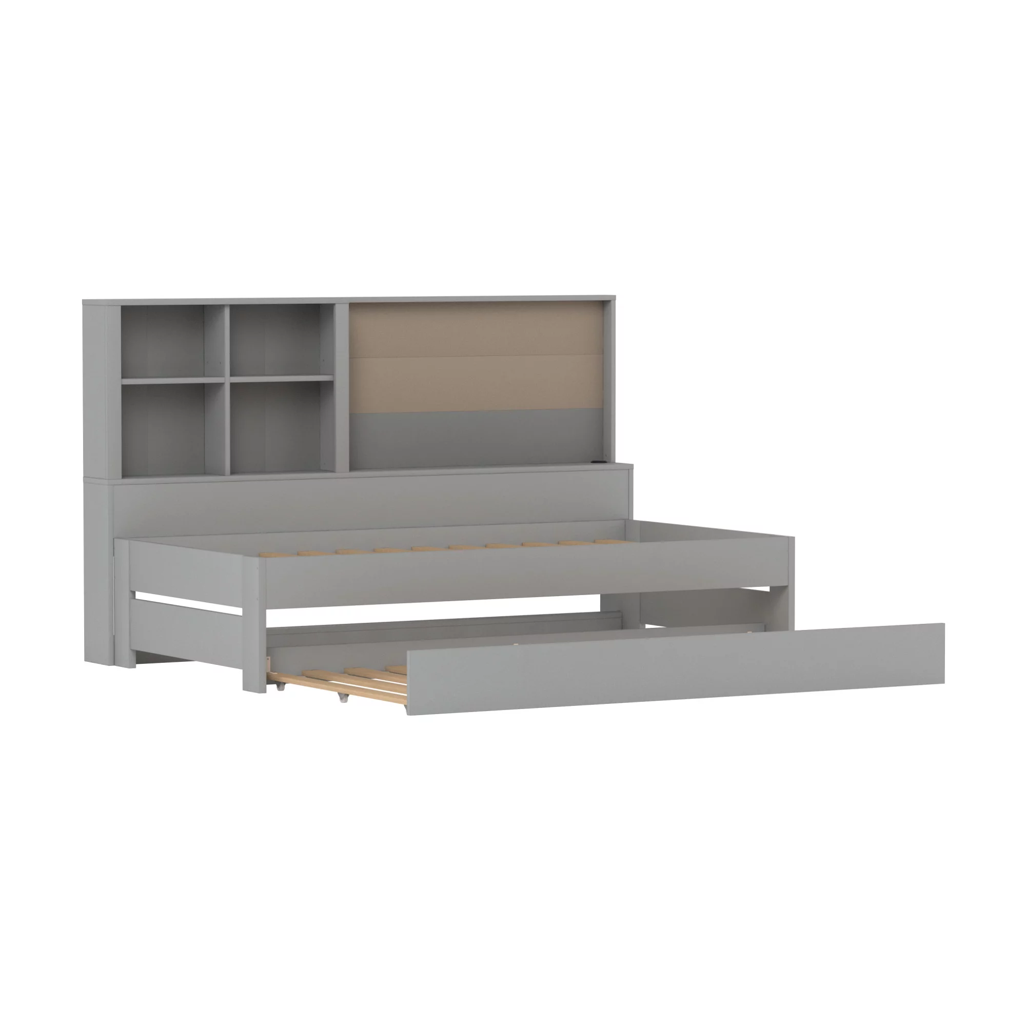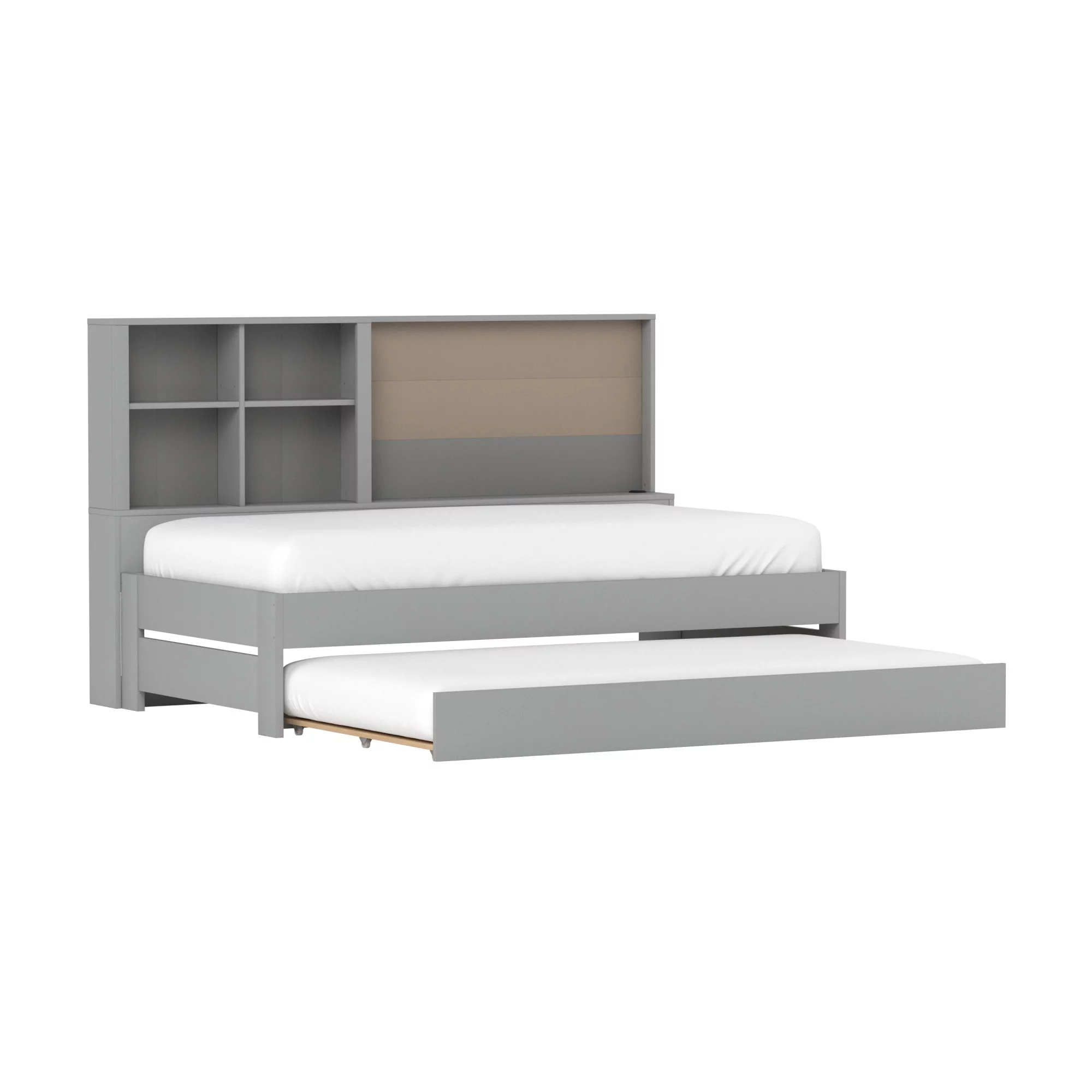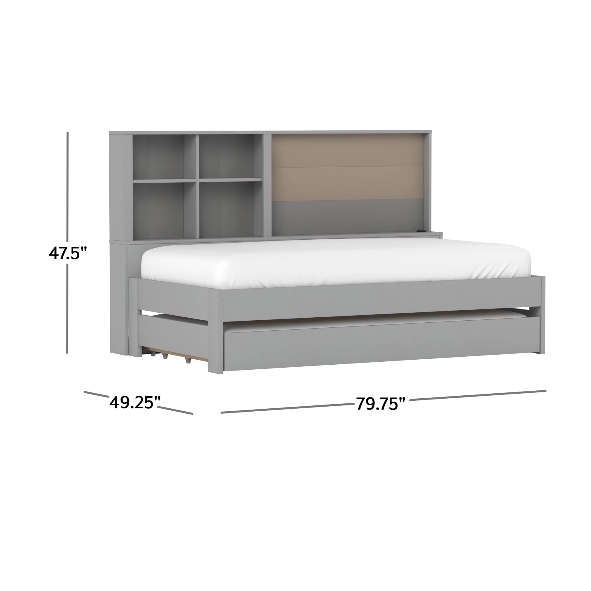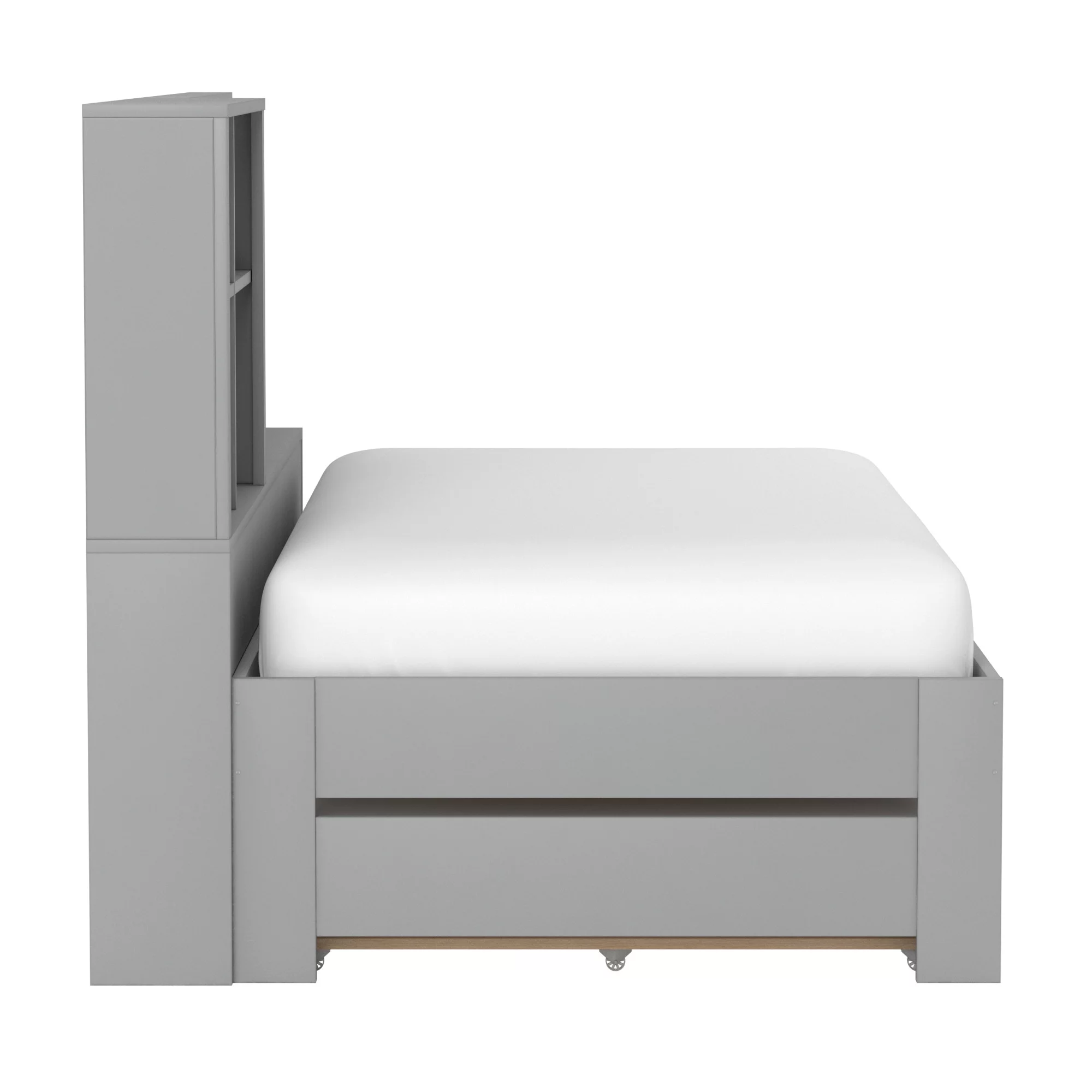 Breslin Bookcase Twin Bed with Trundle and 1 USB Port, Gray, by Hillsdale Living Essentials