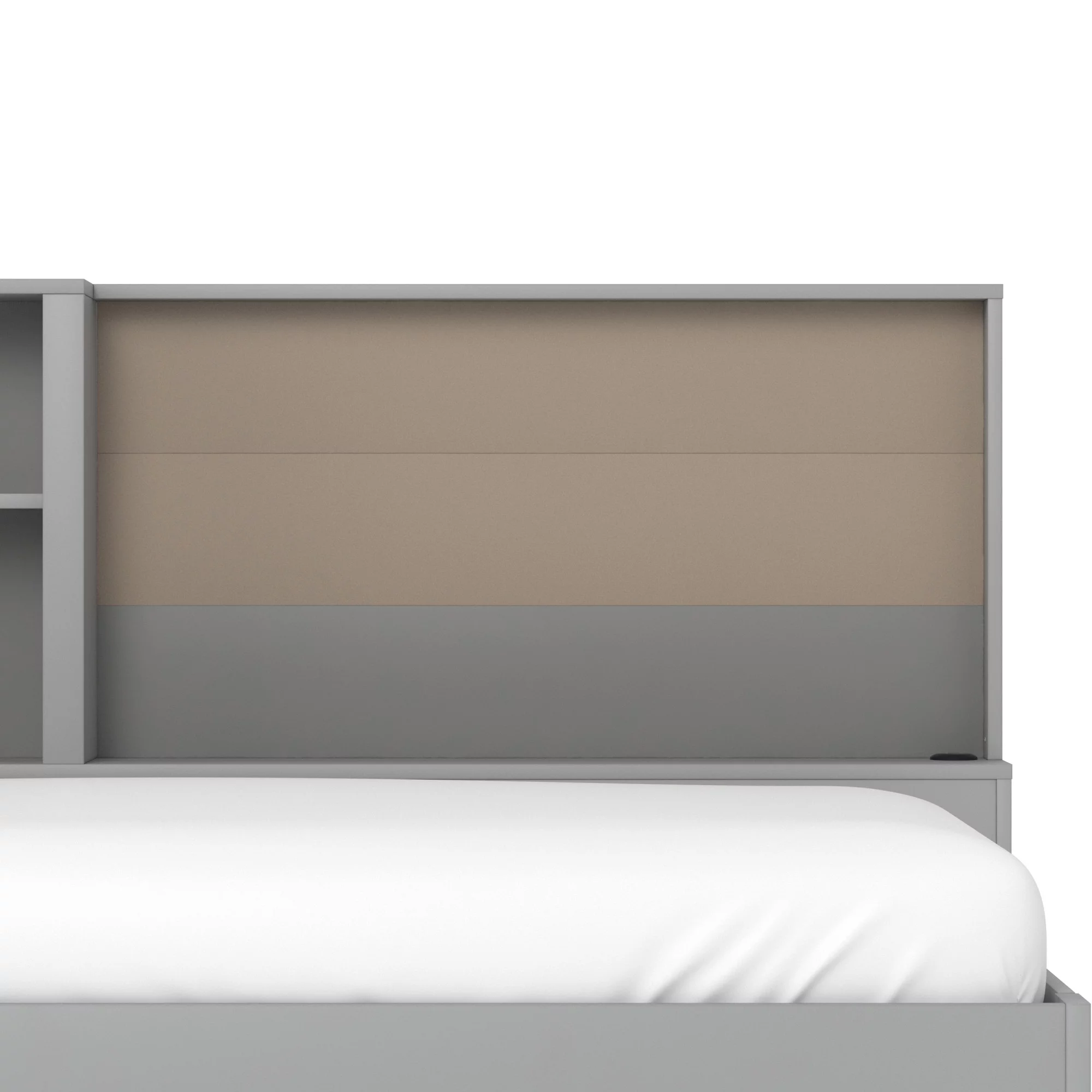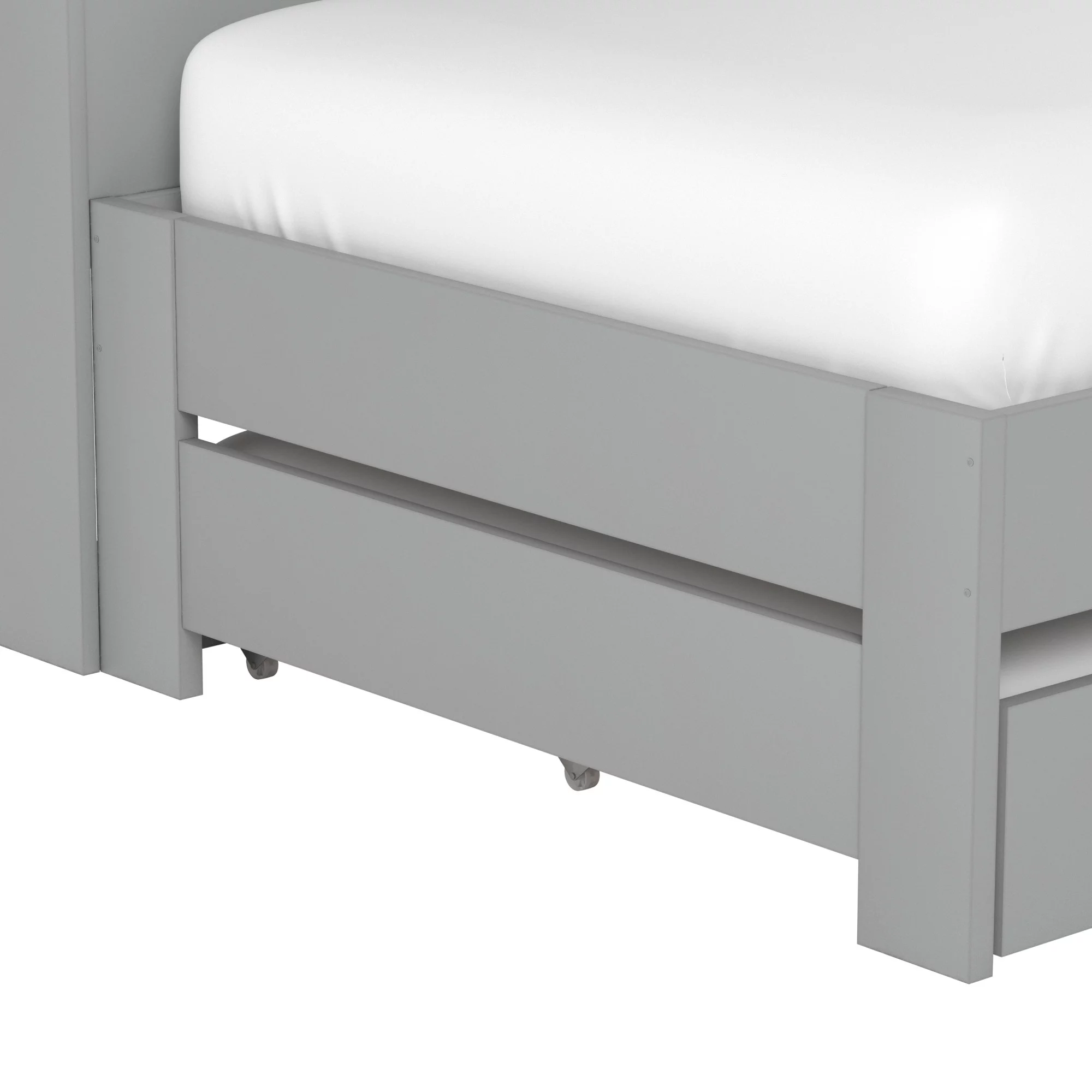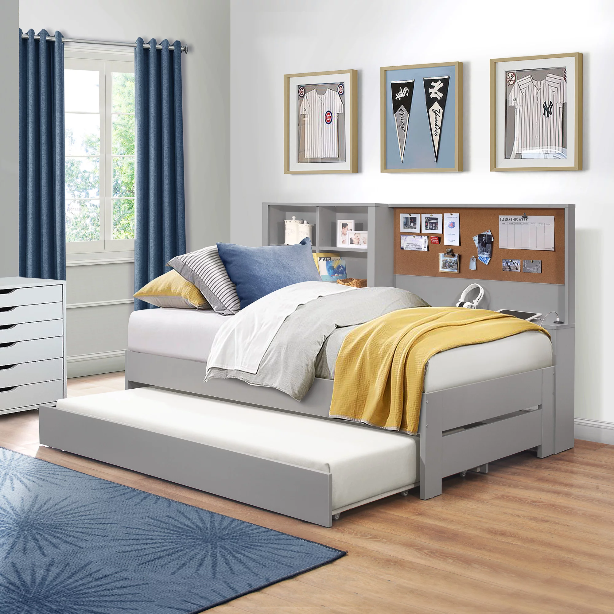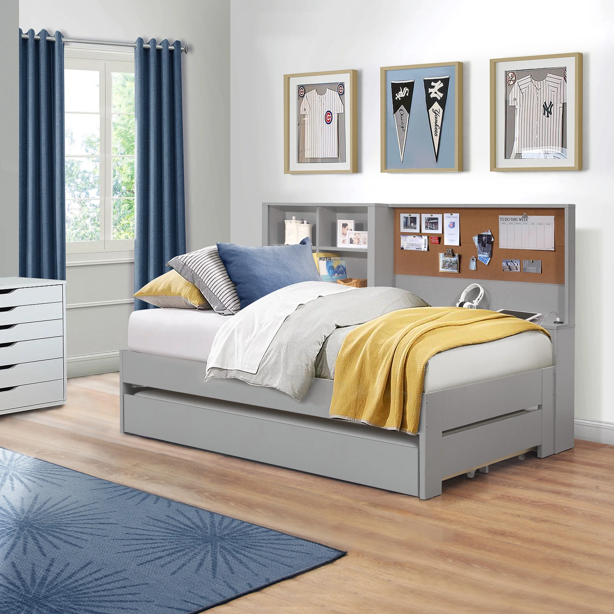 Breslin Bookcase Twin Bed with Trundle and 1 USB Port, Gray, by Hillsdale Living Essentials