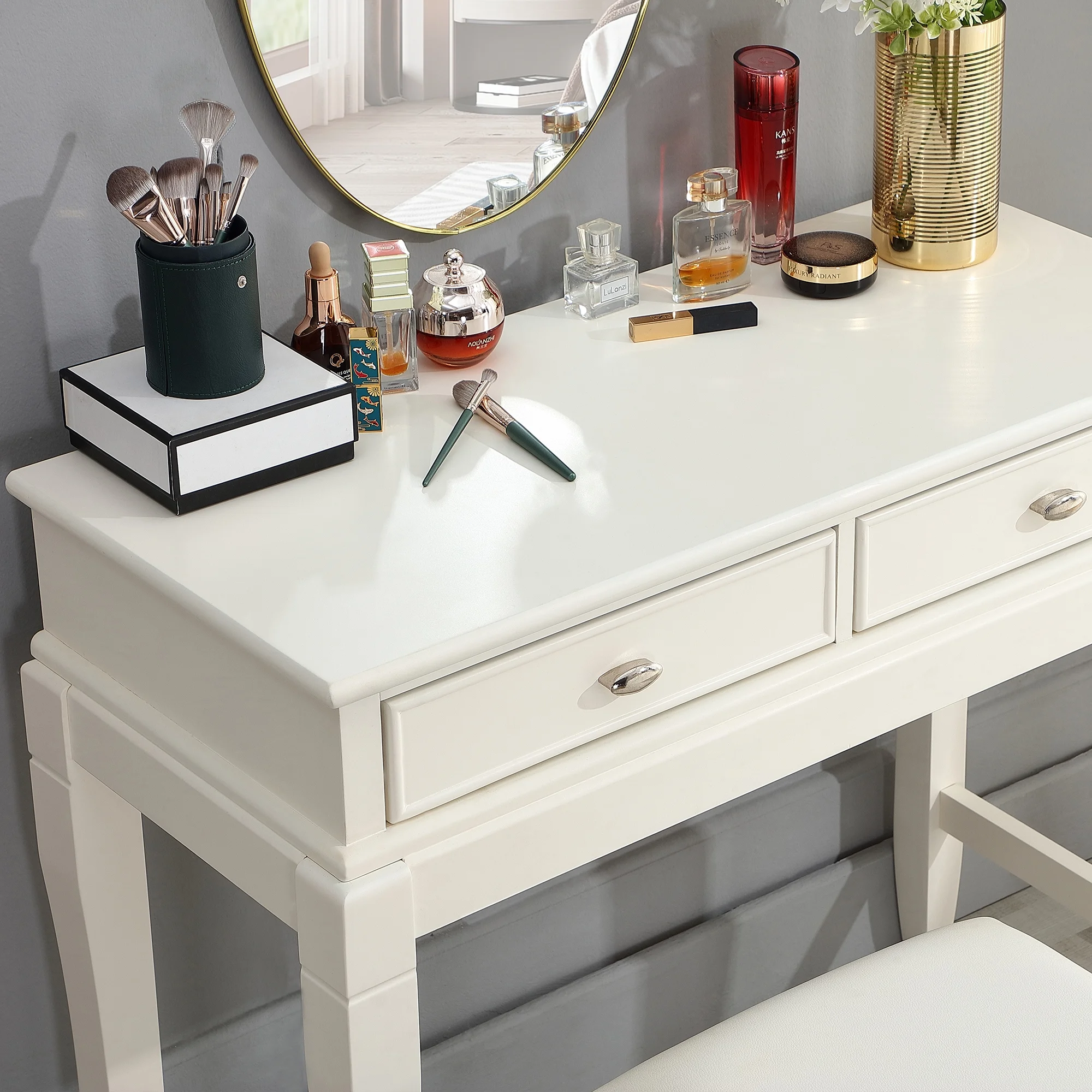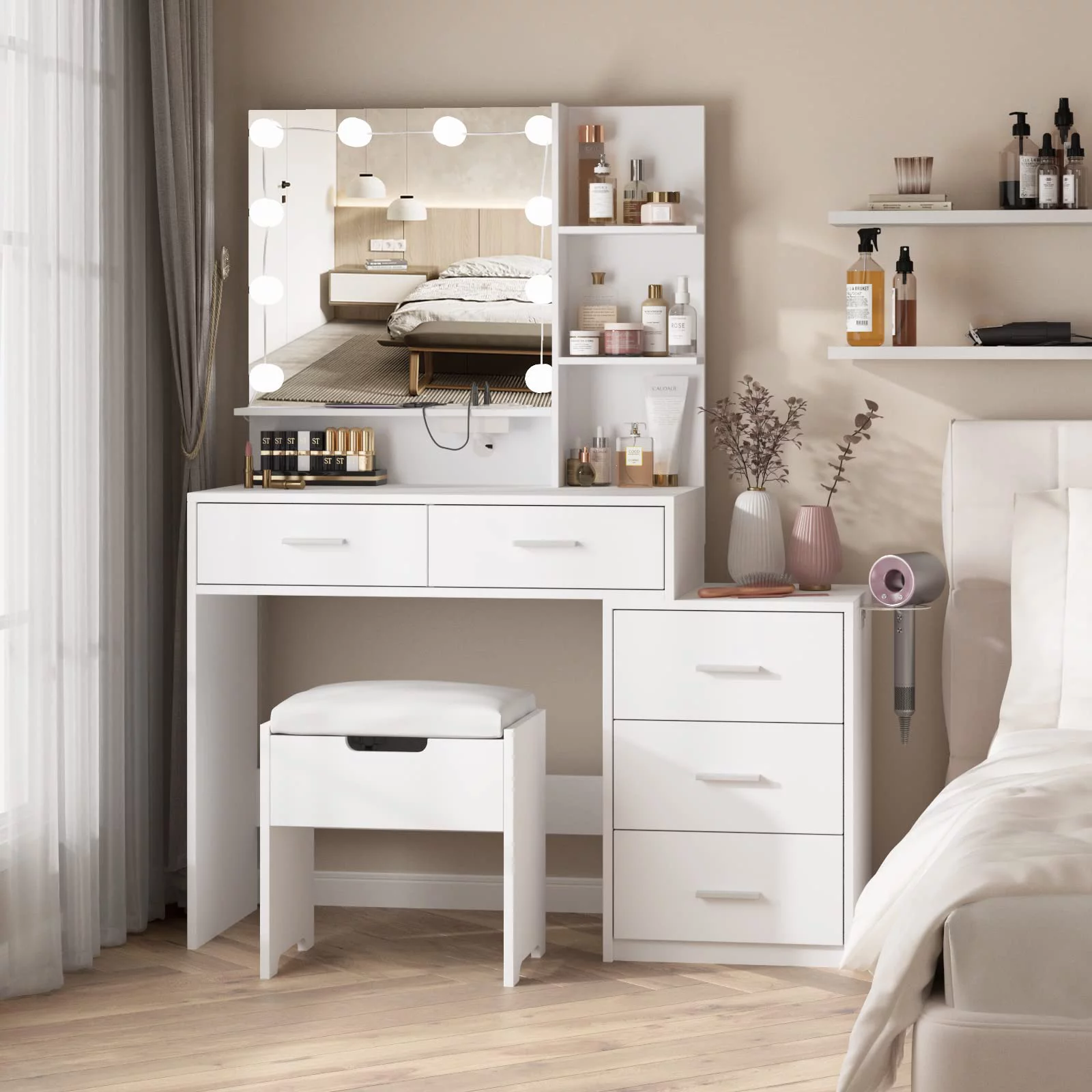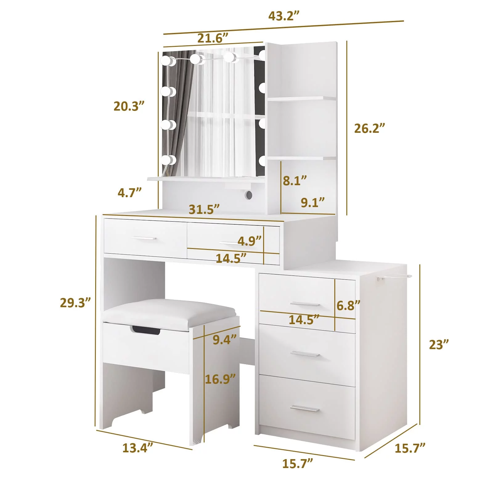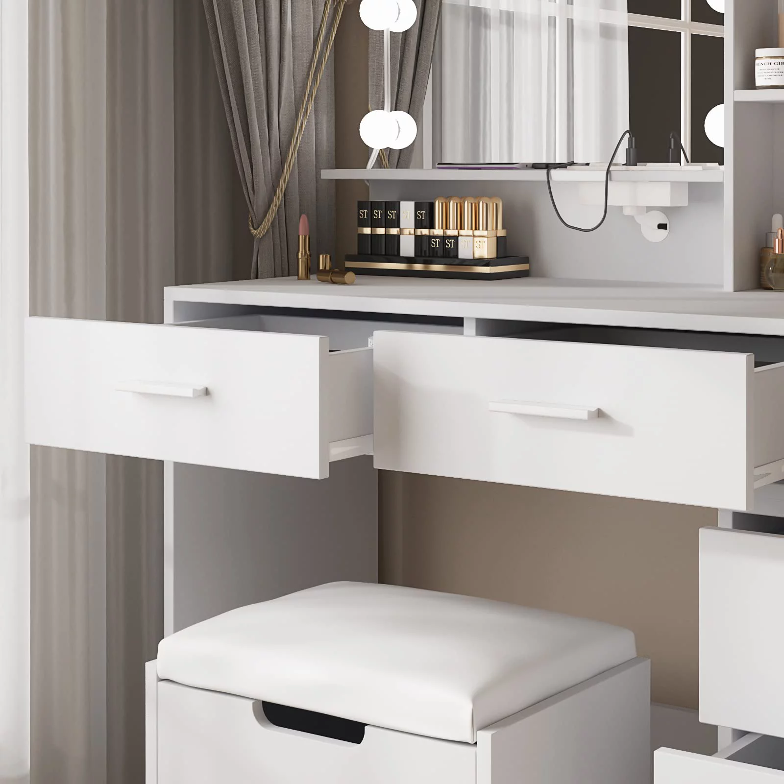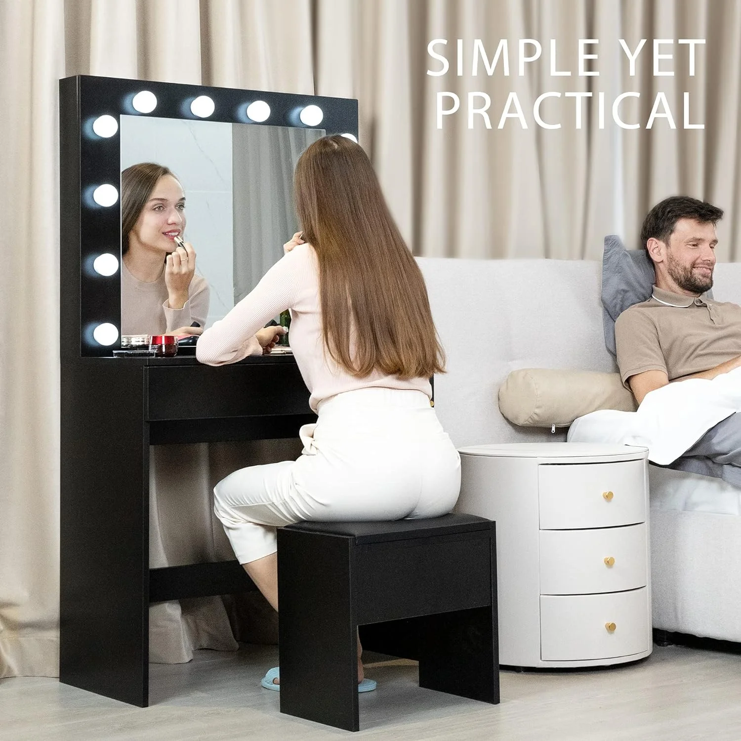 SPECSTAR Makeup Vanity Set with 12 Light Bulbs, Makeup Dressing Table with Lighted Mirror and Large Drawer, Black