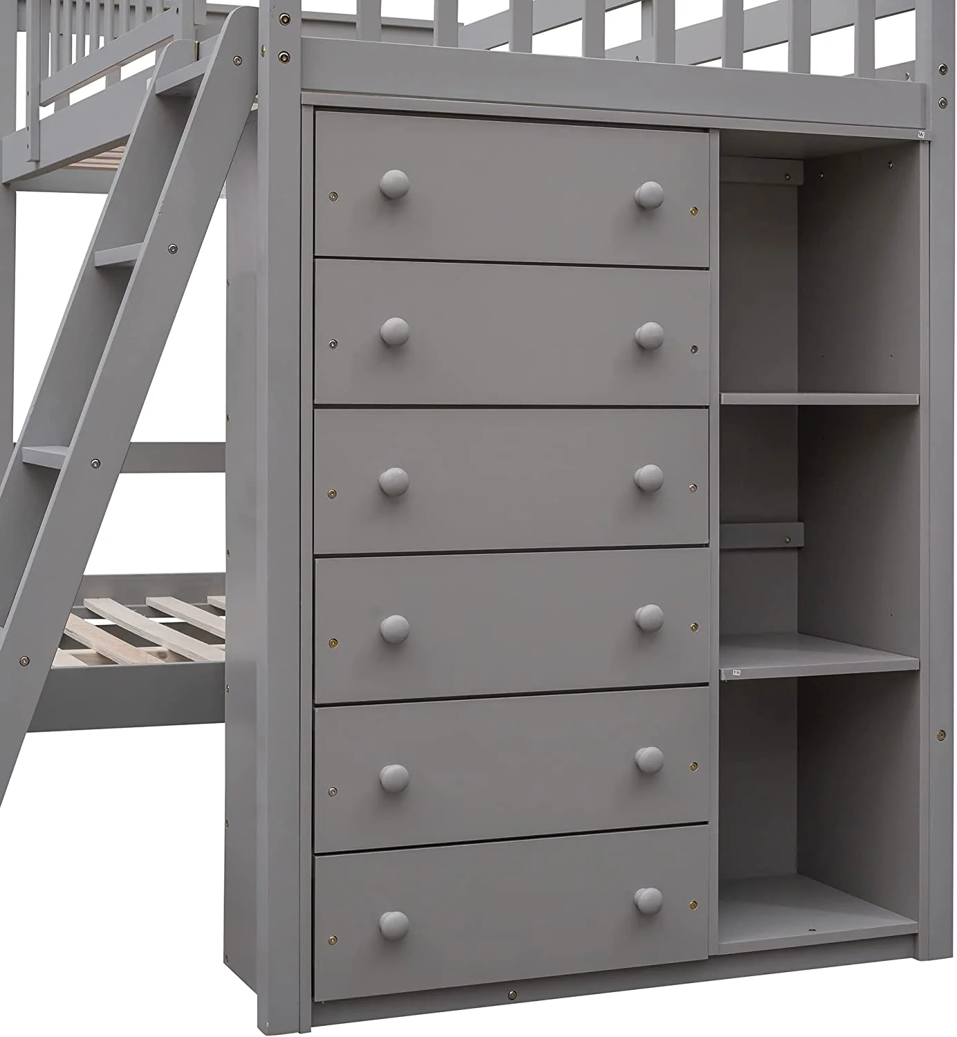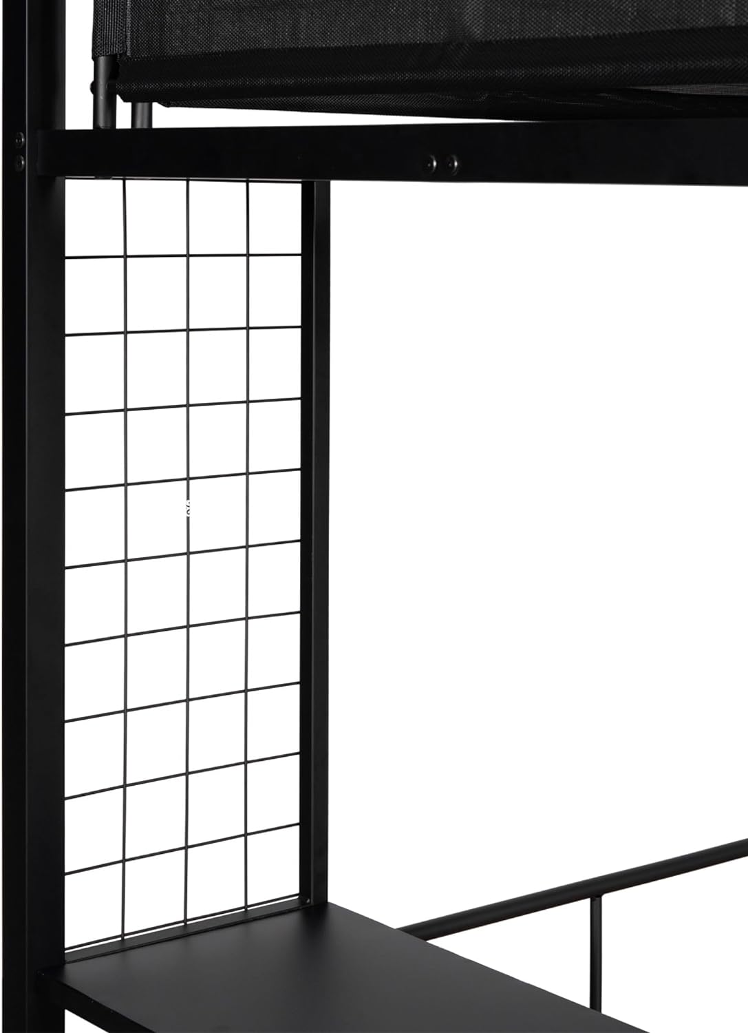 Z-Bedroom Full Size Loft Study Bunk Bed - Textured Black with Silver Trim & Pulls