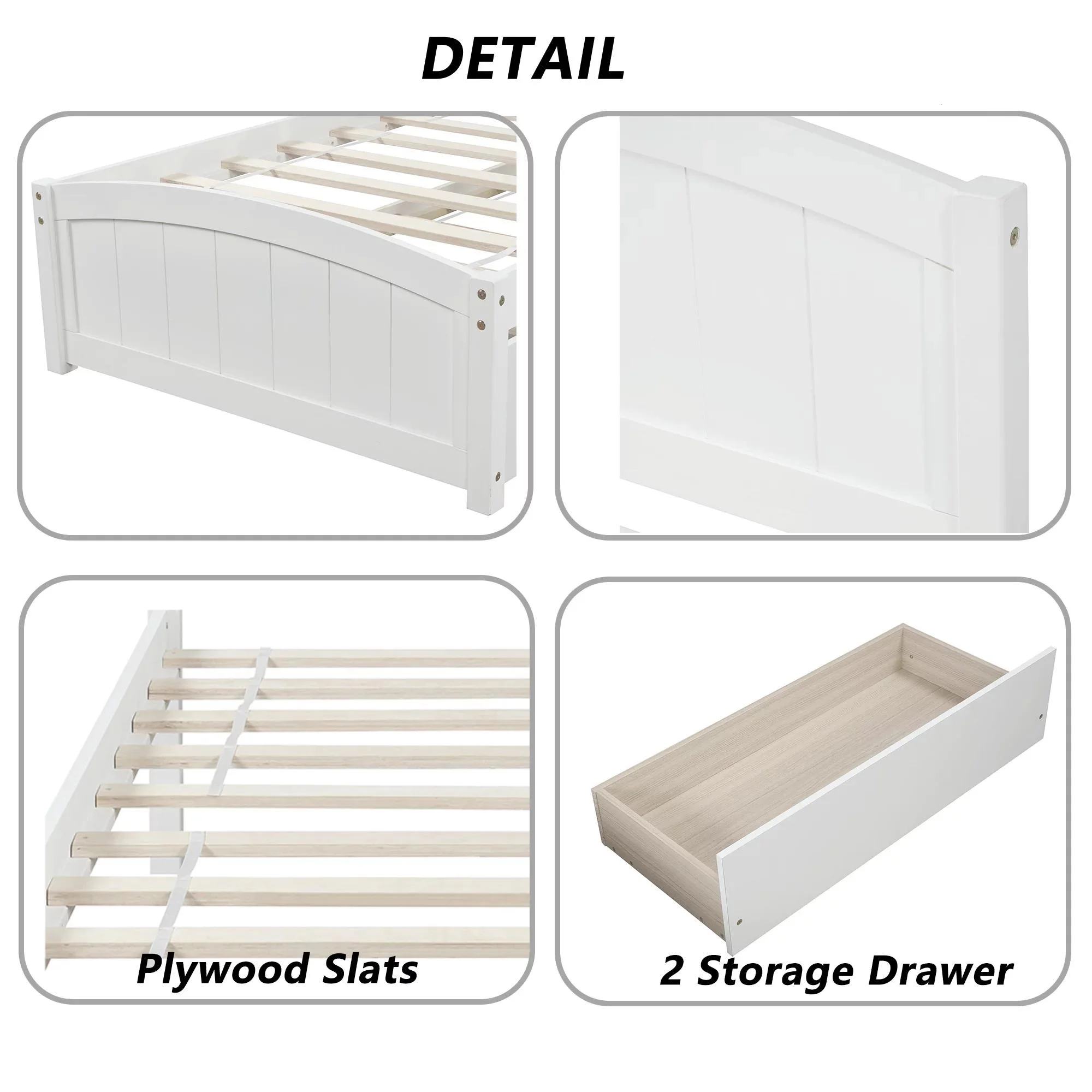 Gewnee Kids Wood Platform Bed,Twin Size Platform Bed with Headboard and Storage Drawers,White