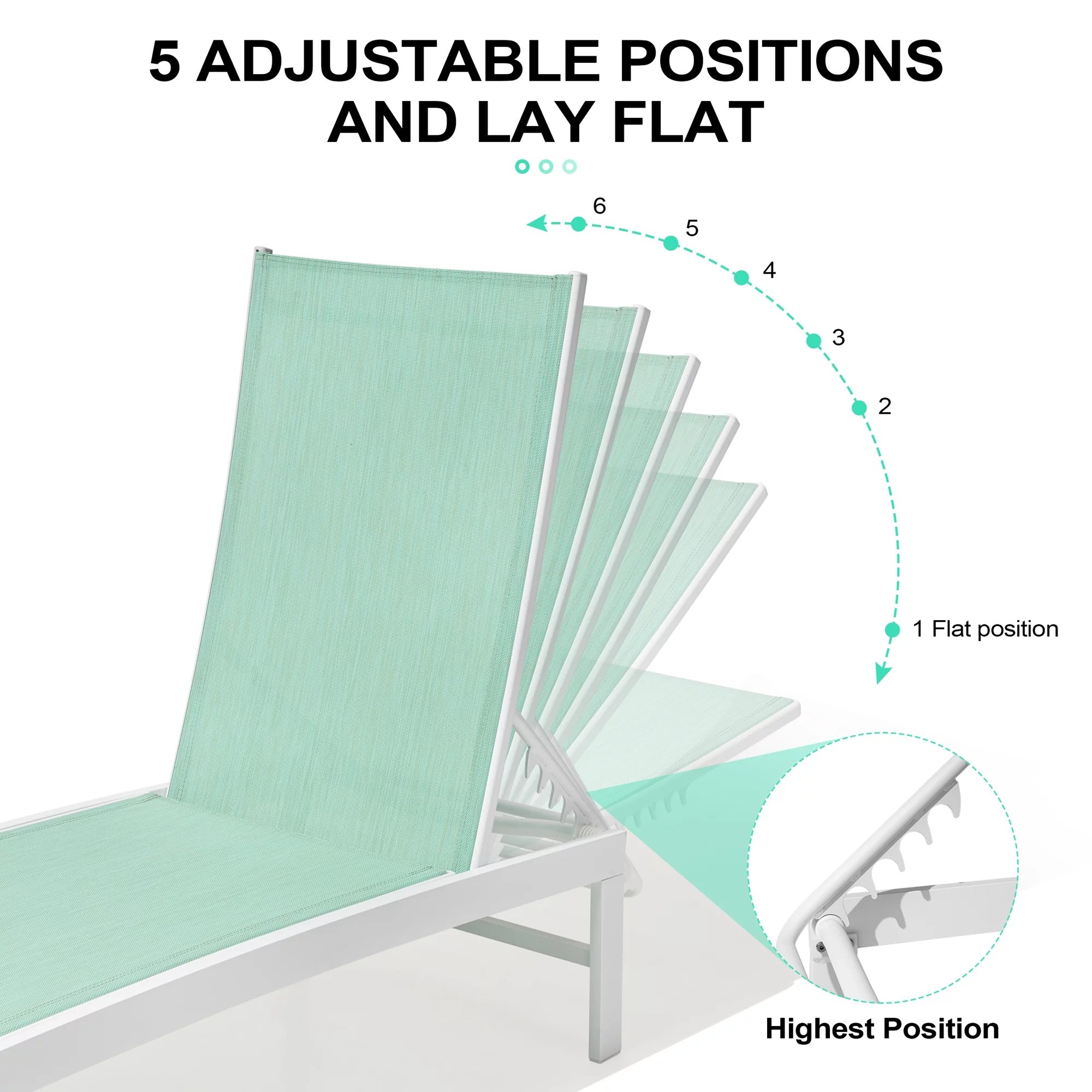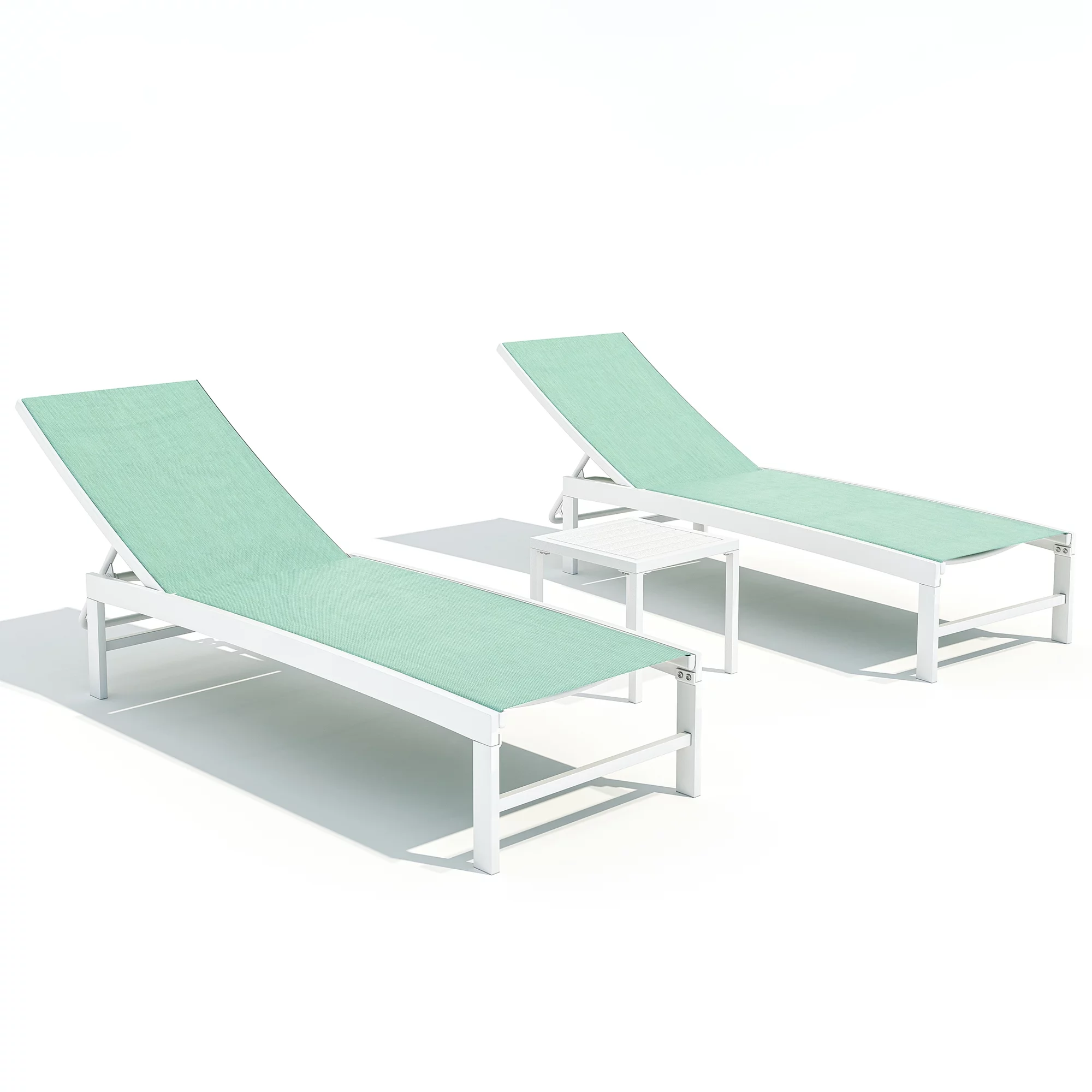 Crestlive Products Set of 3 Outdoor Aluminum Chaise Lounge Chairs and Table, Green