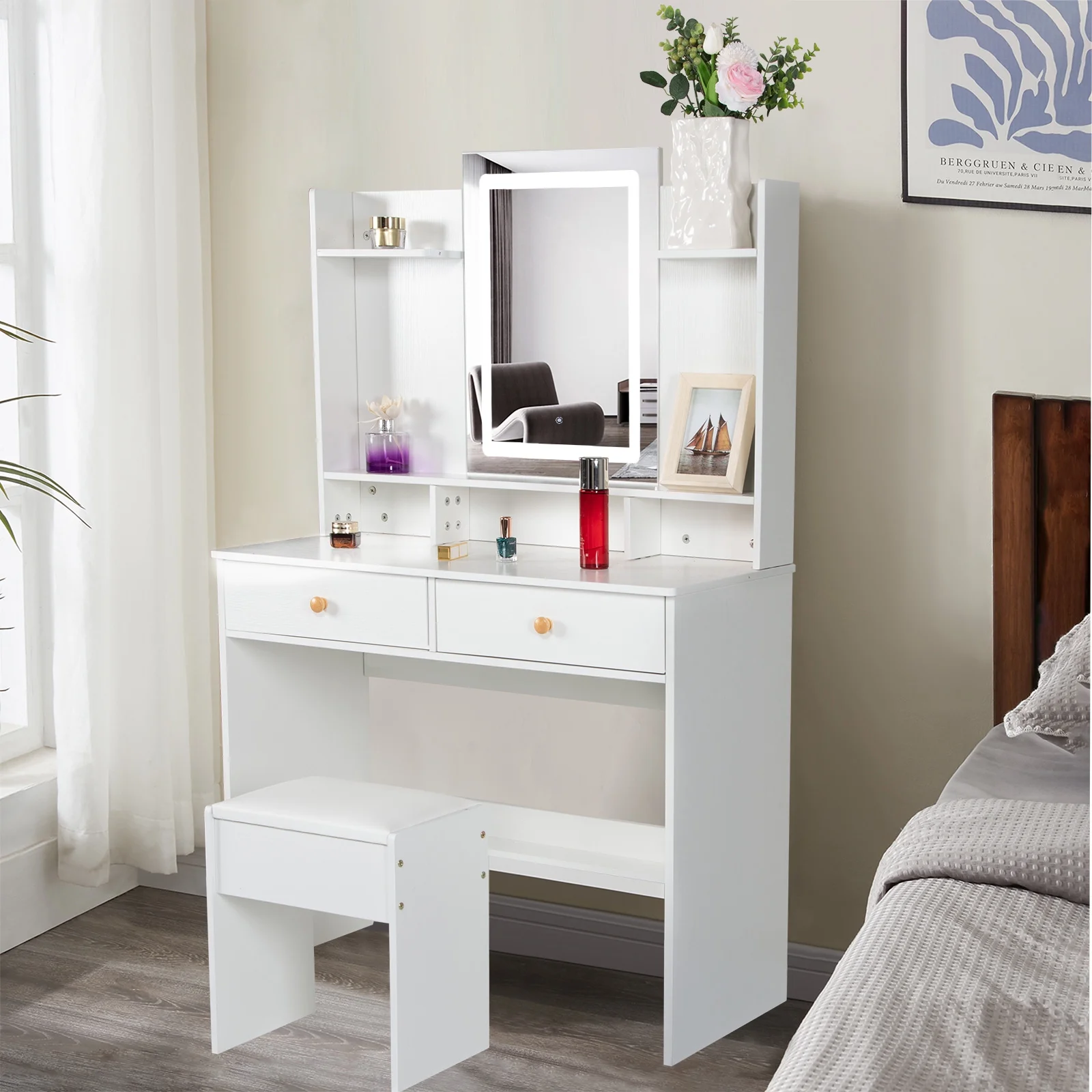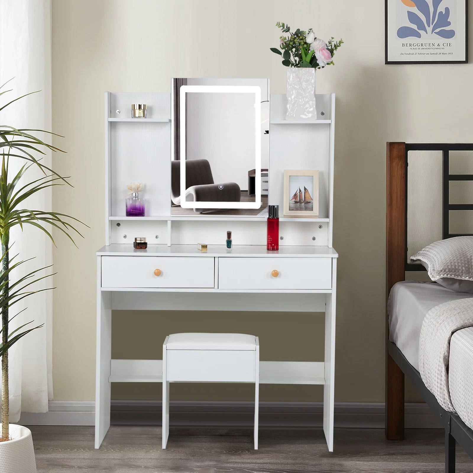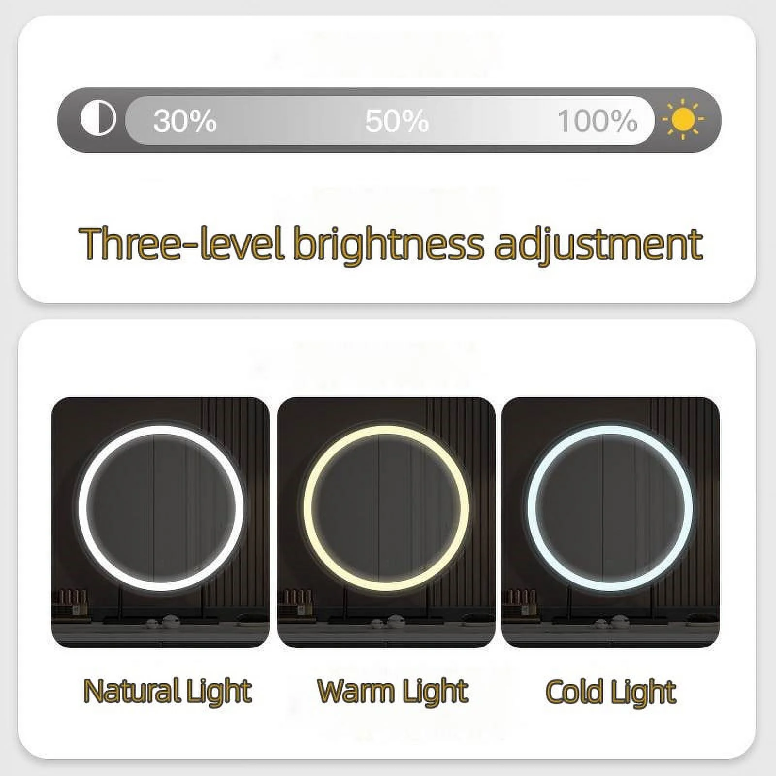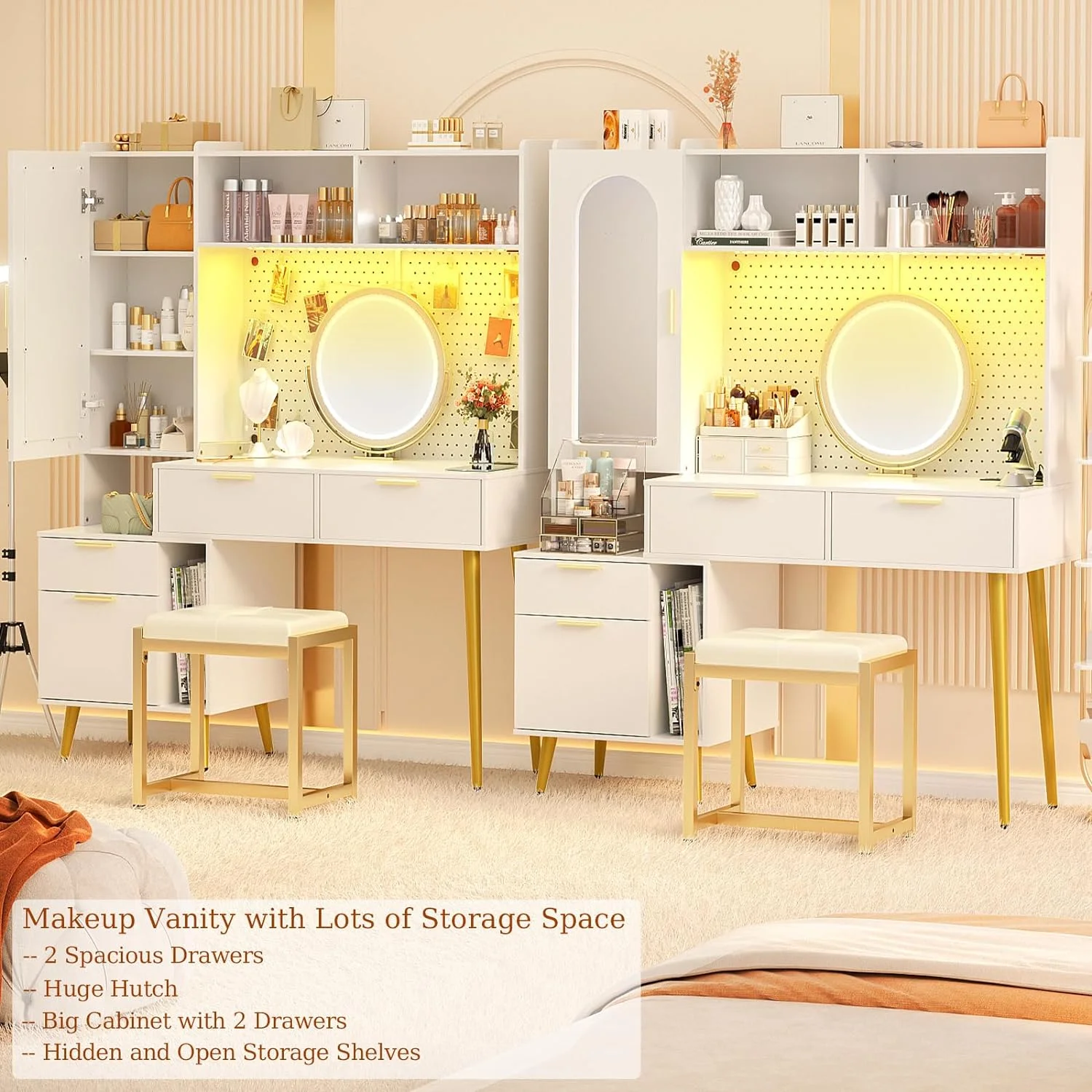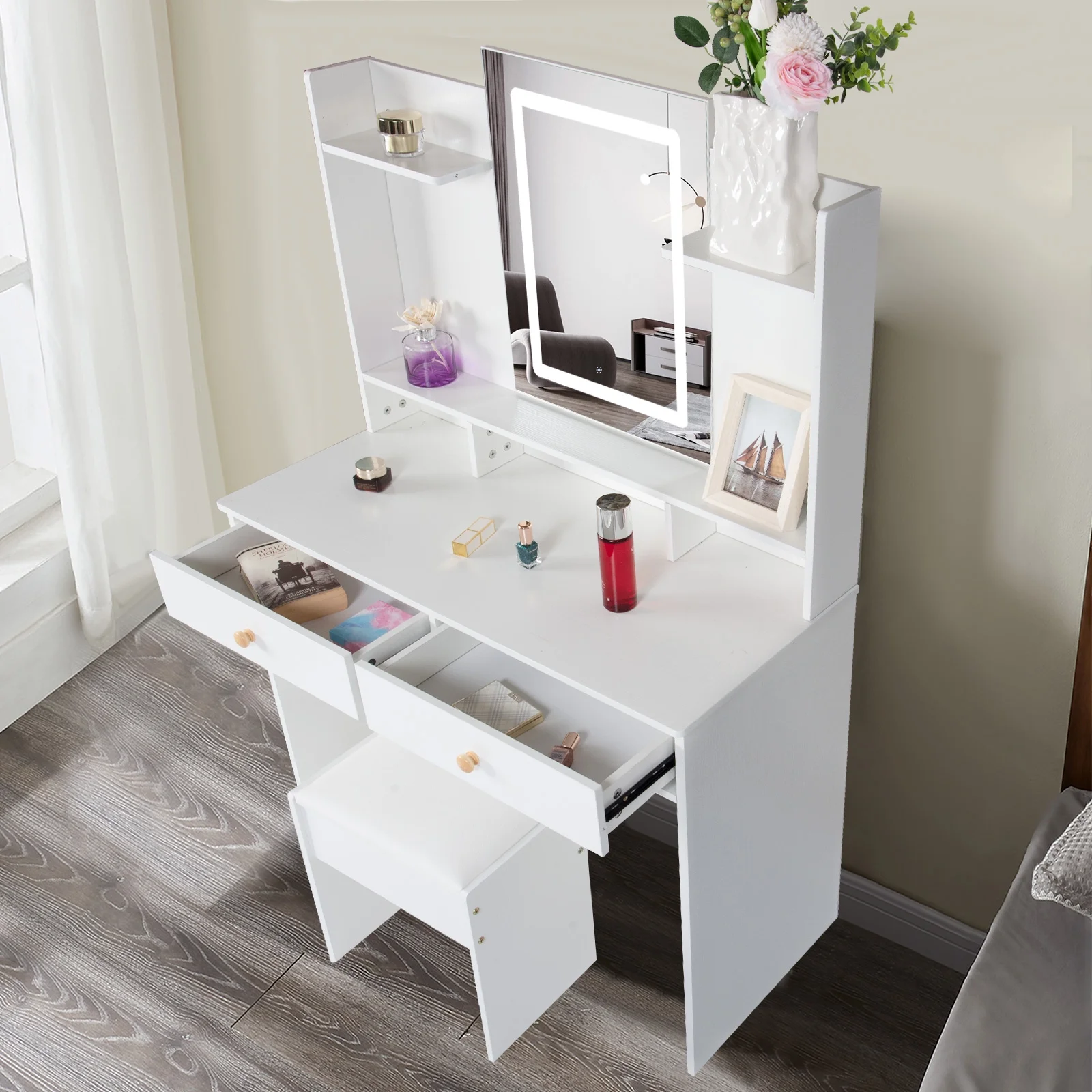 MIRROTOWEL Vanity Desk, Dressing Table with Large Drawer, 3 Level Storage & 3 Lighting Modes (Pink)
