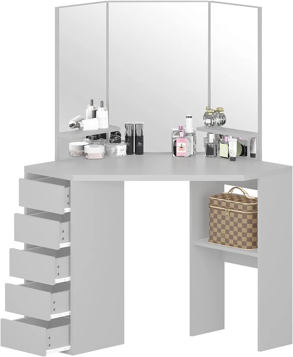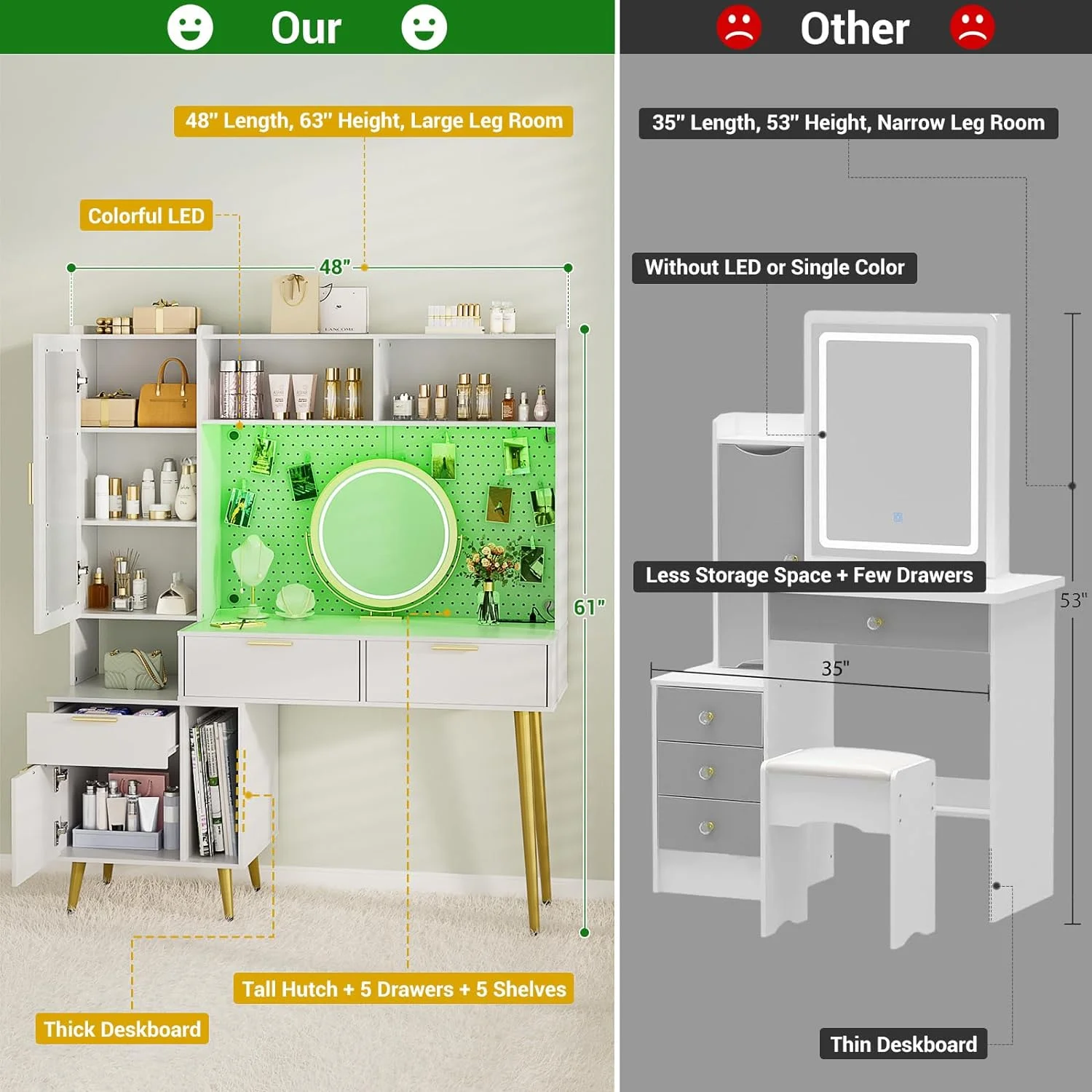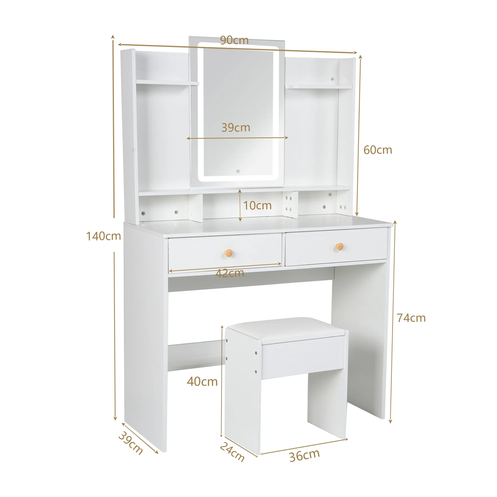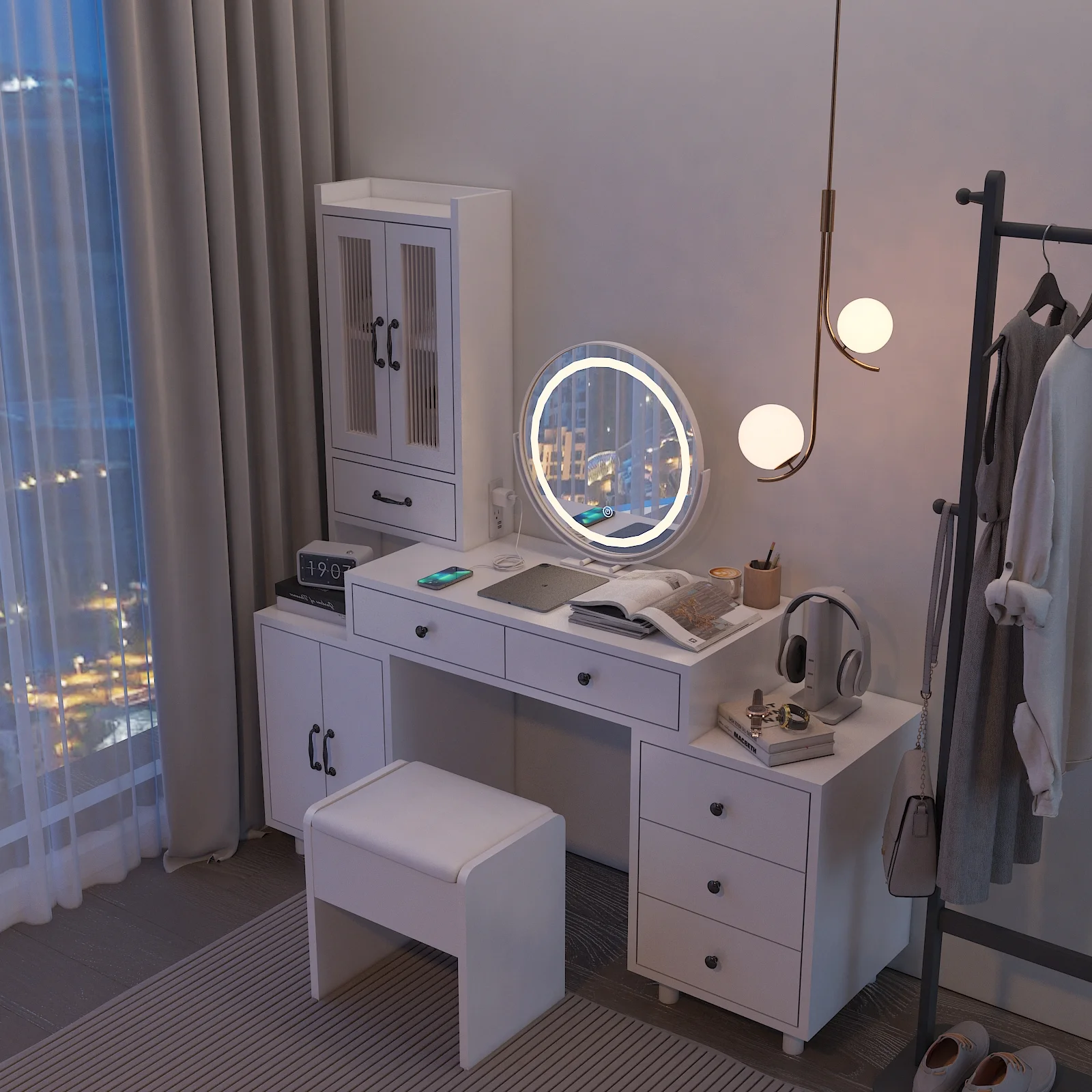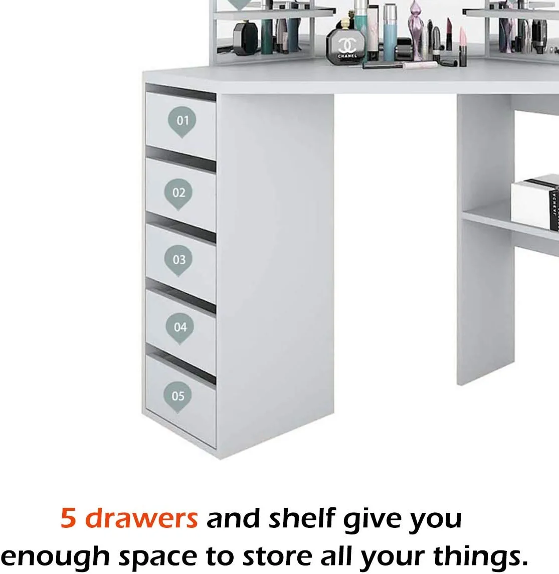 MIRROTOWEL Vanity Desk, Dressing Table with Large Drawer, 3 Level Storage & 3 Lighting Modes (Pink)