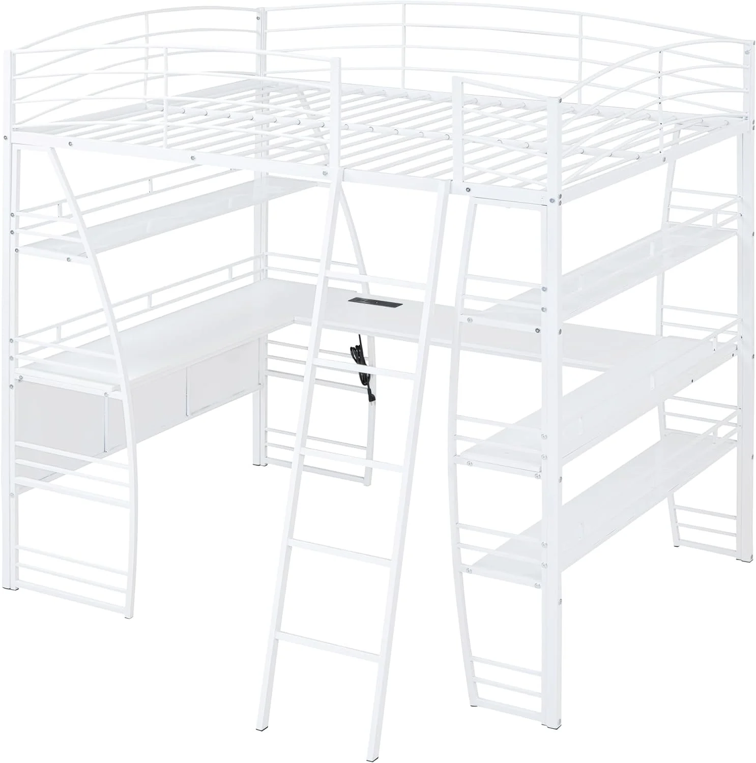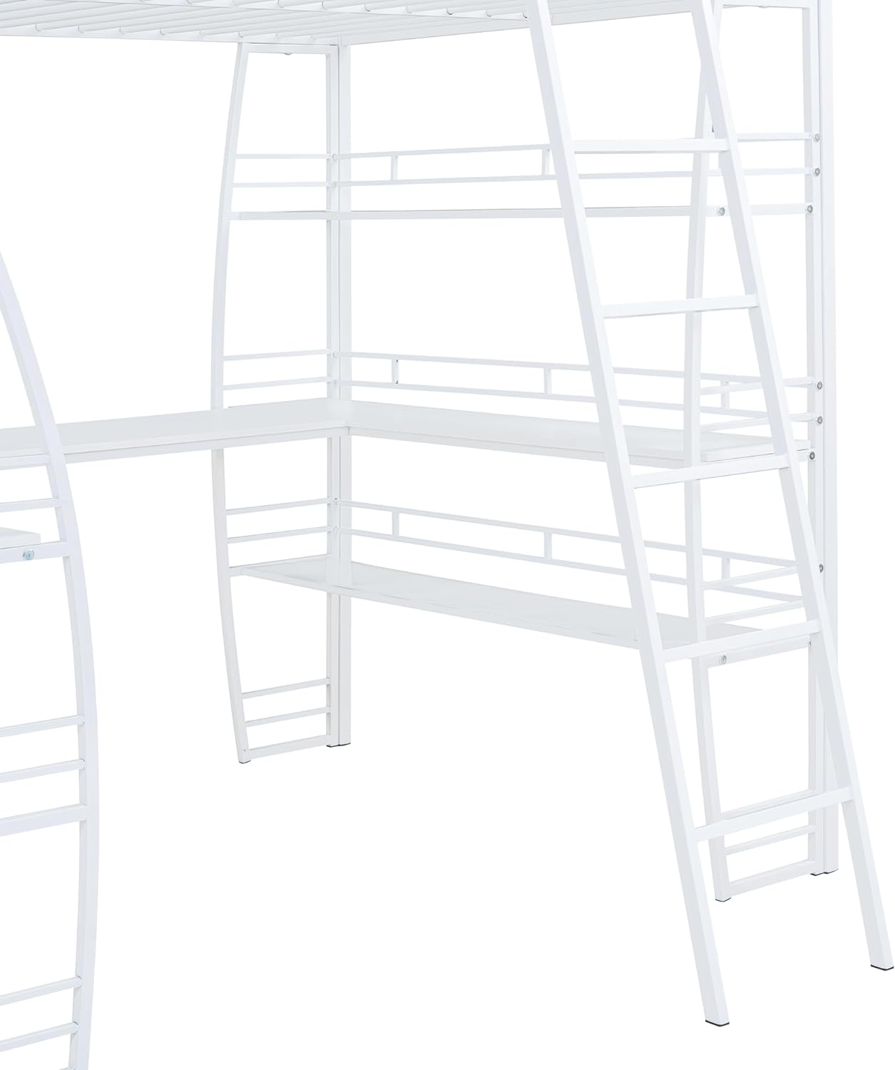 Metal Bunk Beds Over Full Bunk Bed Frame Loft Bed With A Full Platform Bed Under For Dorm, Boys & Girls Teens Kids, White
