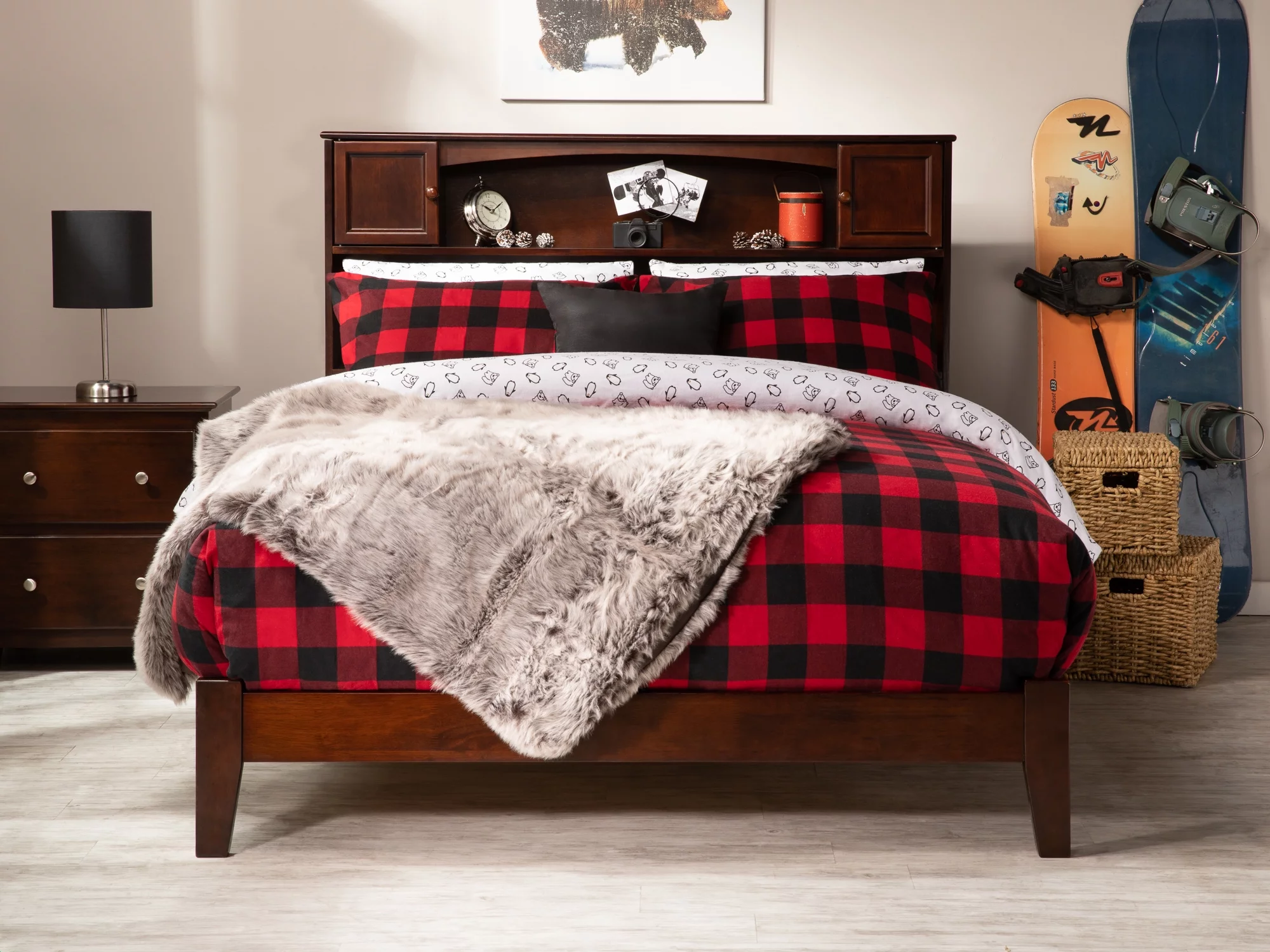 AFI Newport Full Solid Wood Traditional Bed with Storage Headboard in Walnut