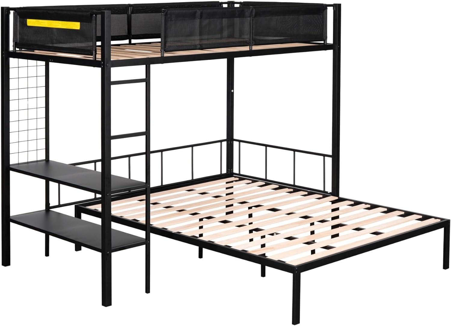 Metal Bunk Beds Over Full Bunk Bed Frame Loft Bed With A Full Platform Bed Under For Dorm, Boys & Girls Teens Kids, Black