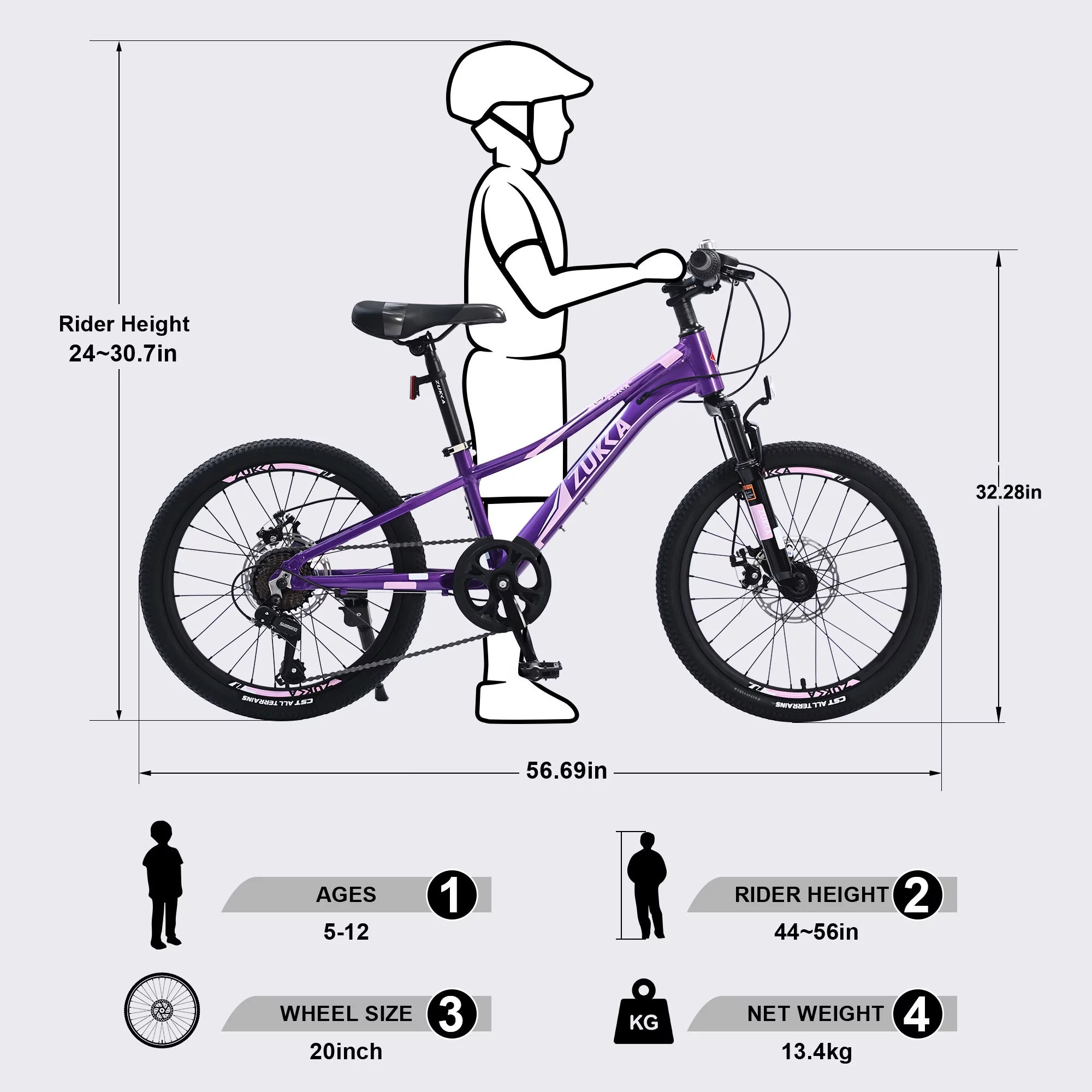 GUTALOR 20-Inch Mountain Bike for Girls and Boys - 7-Speed Off-Road Bicycle