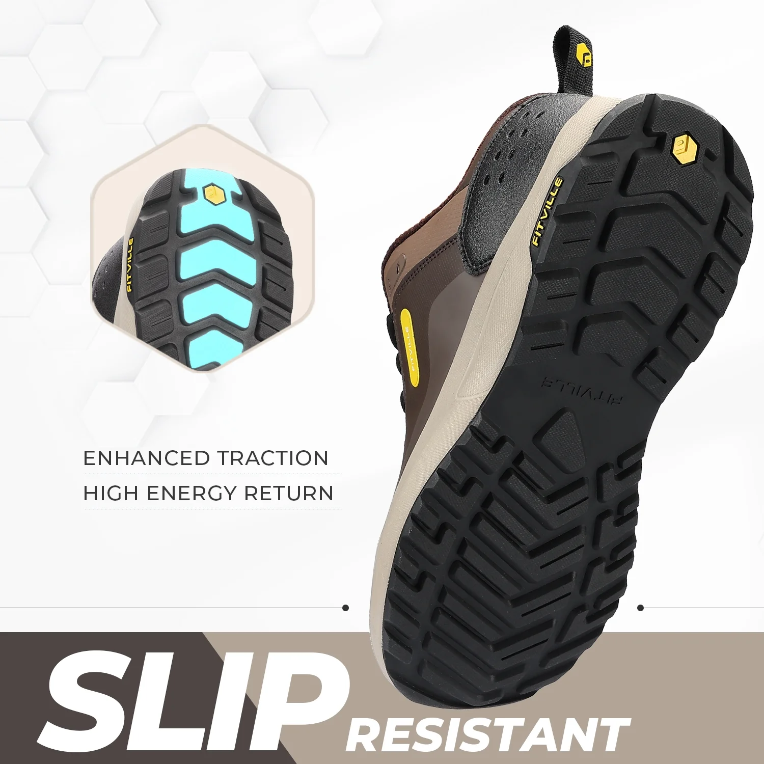 FitVille Mens Extra Wide Hiking Shoes Outdoor Low-top Waterproof Work Shoes Soft Toe with Arch Support-Rugged Core