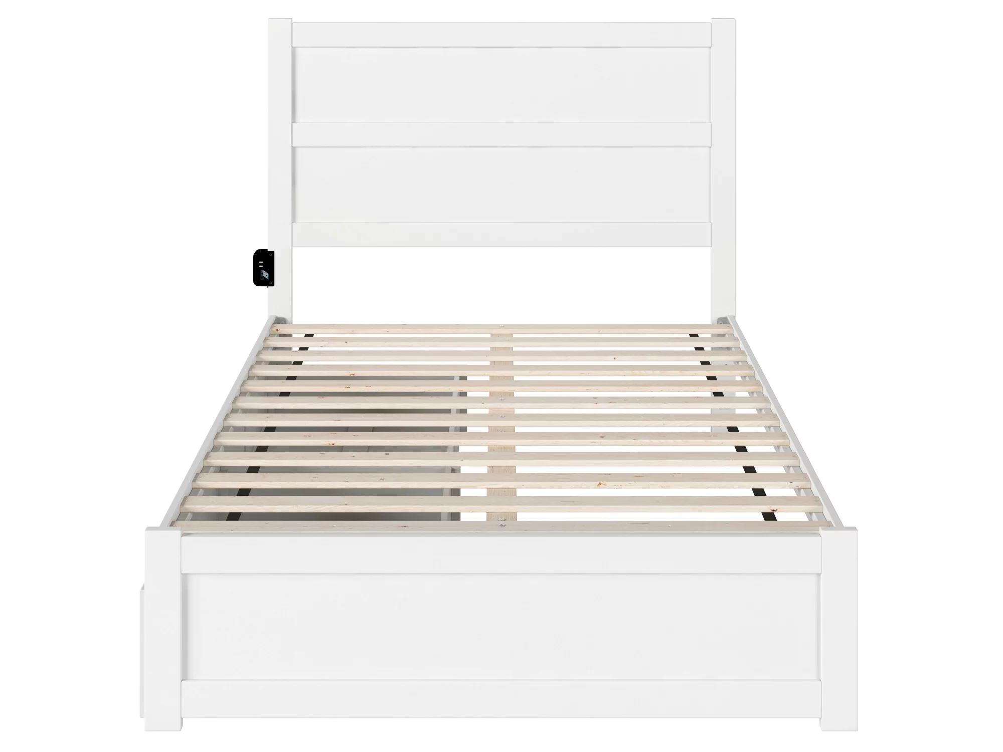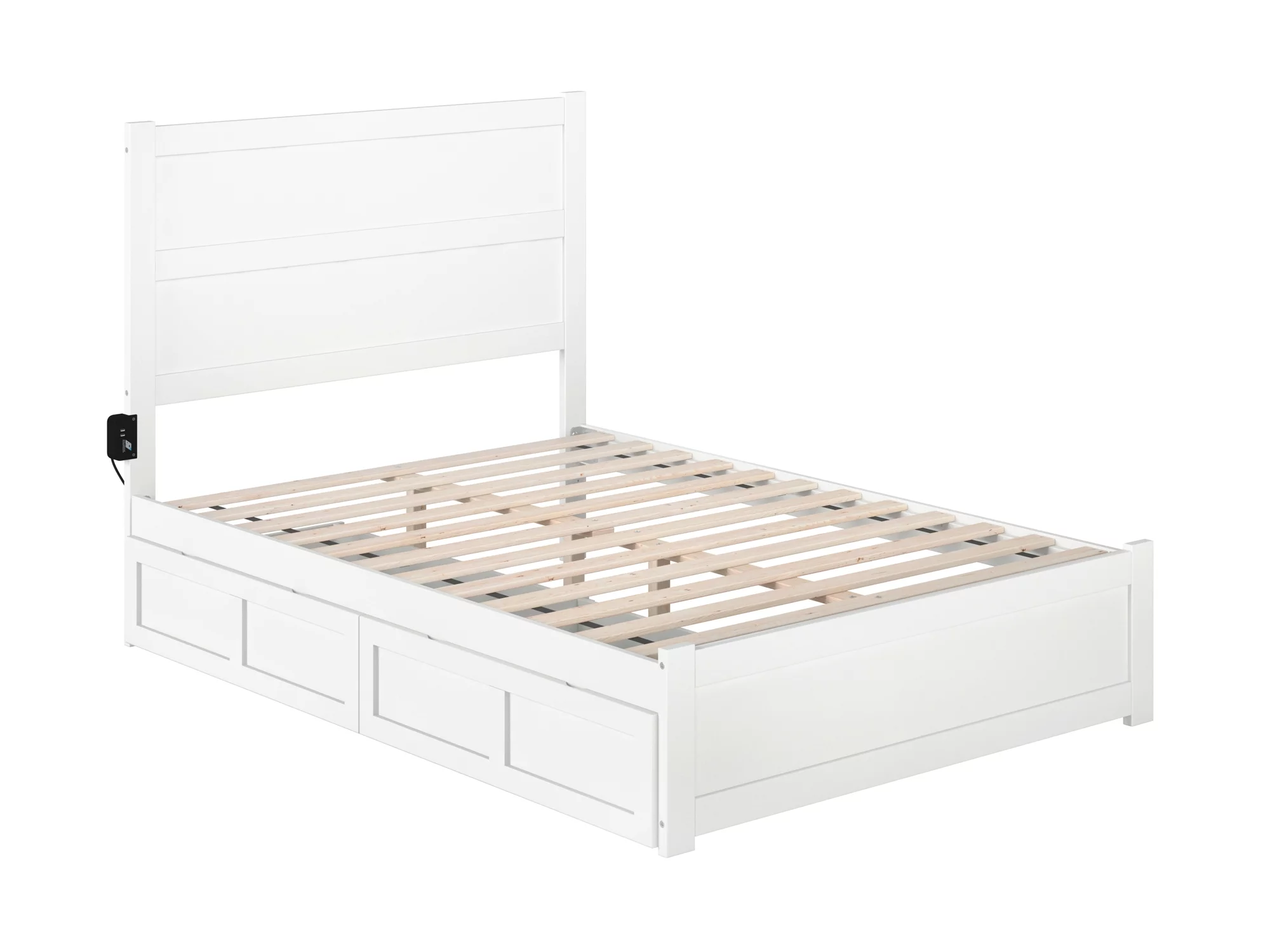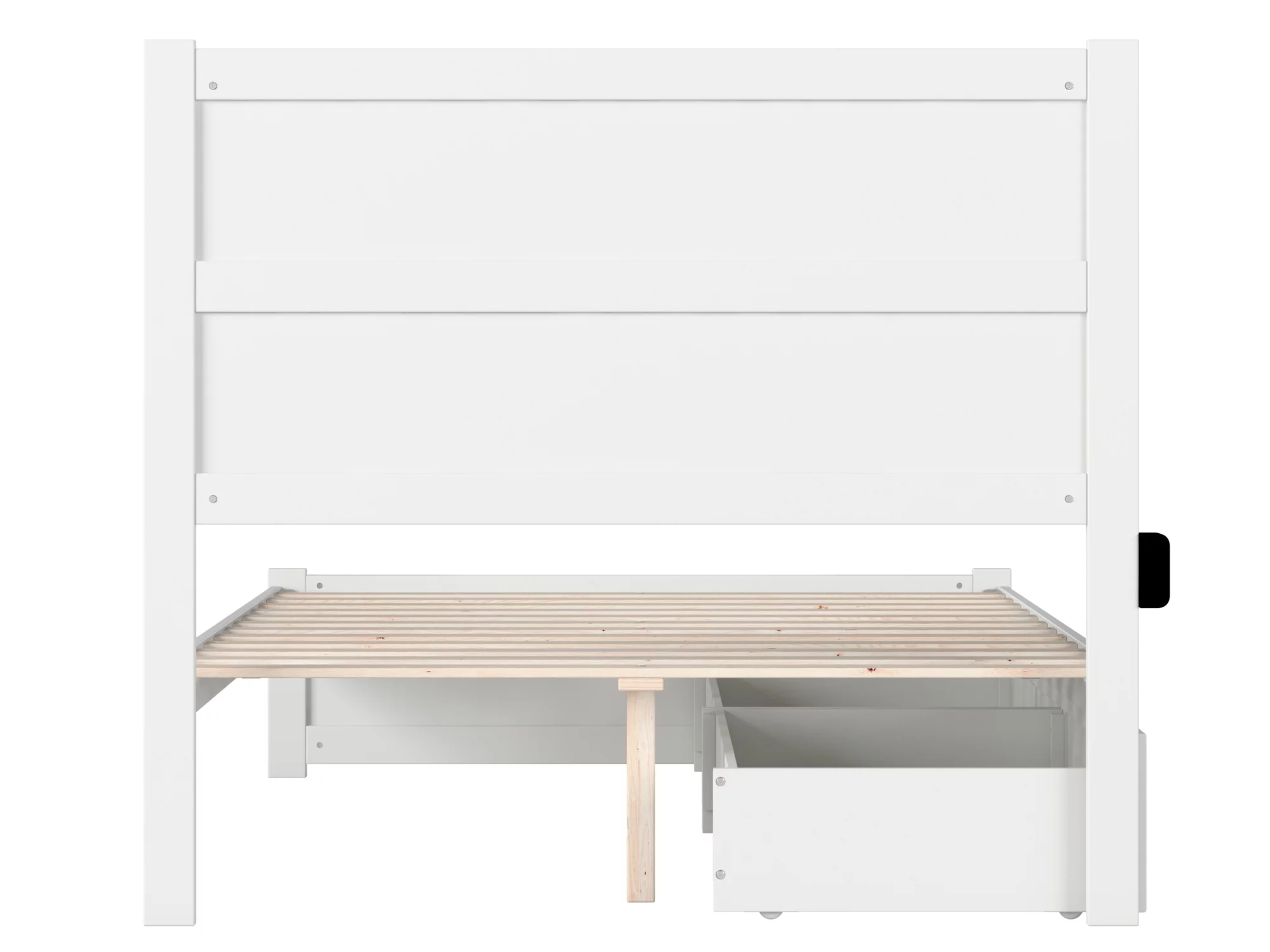 AFI NoHo Full Wood Platform Bed with Headboard Footboard & 2 Storage Drawers, White
