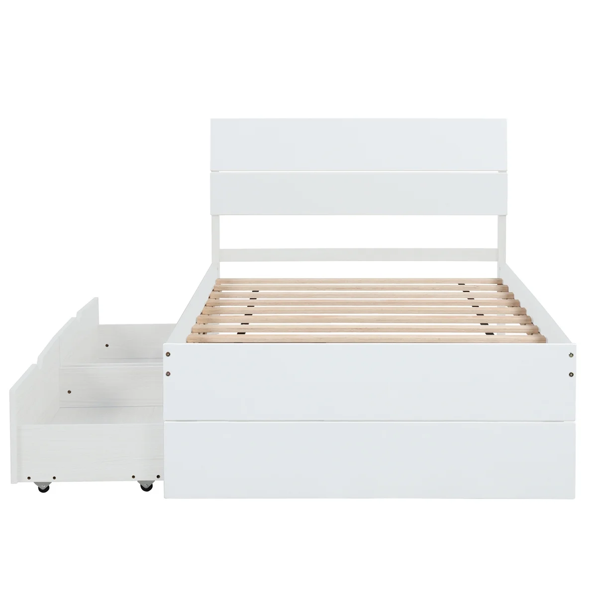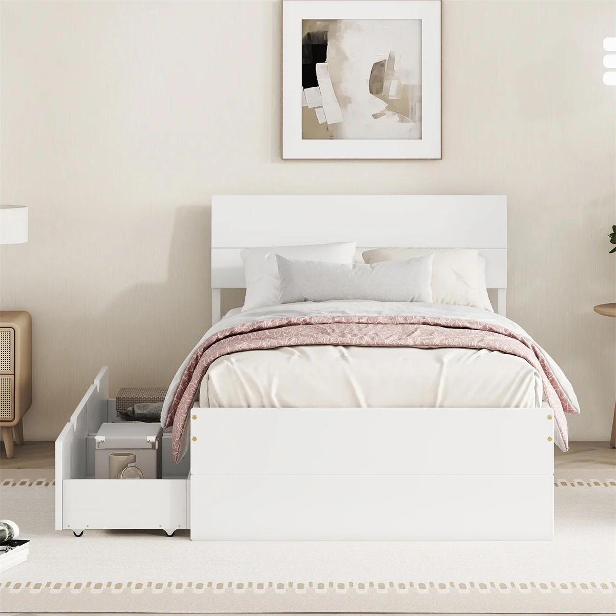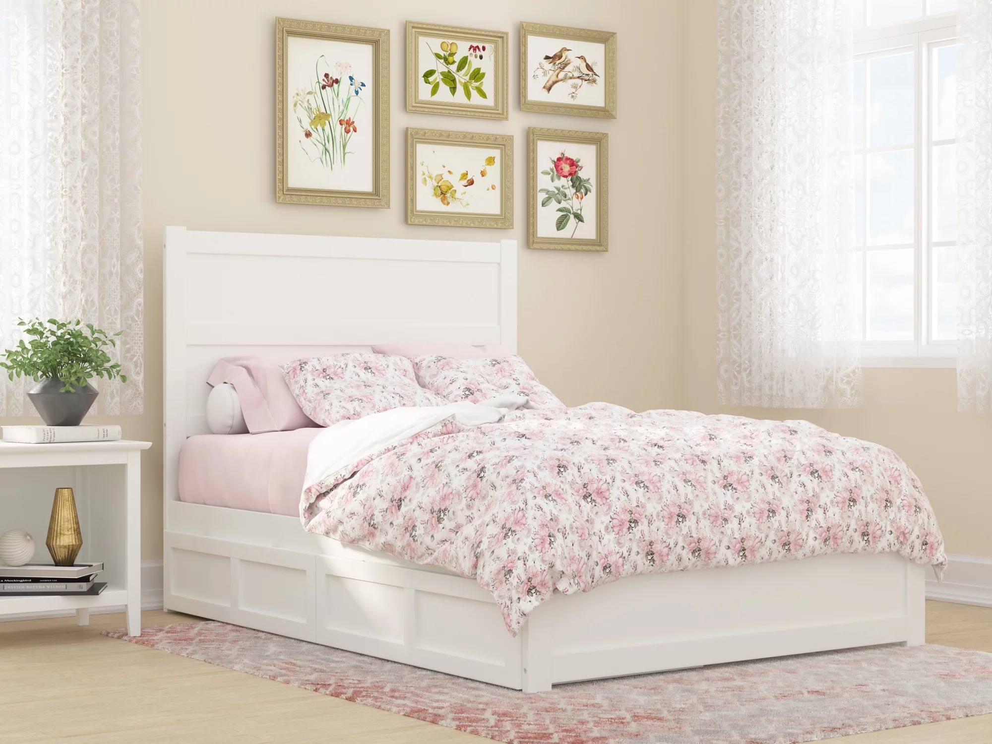 AFI NoHo Full Wood Platform Bed with Headboard Footboard & 2 Storage Drawers, White