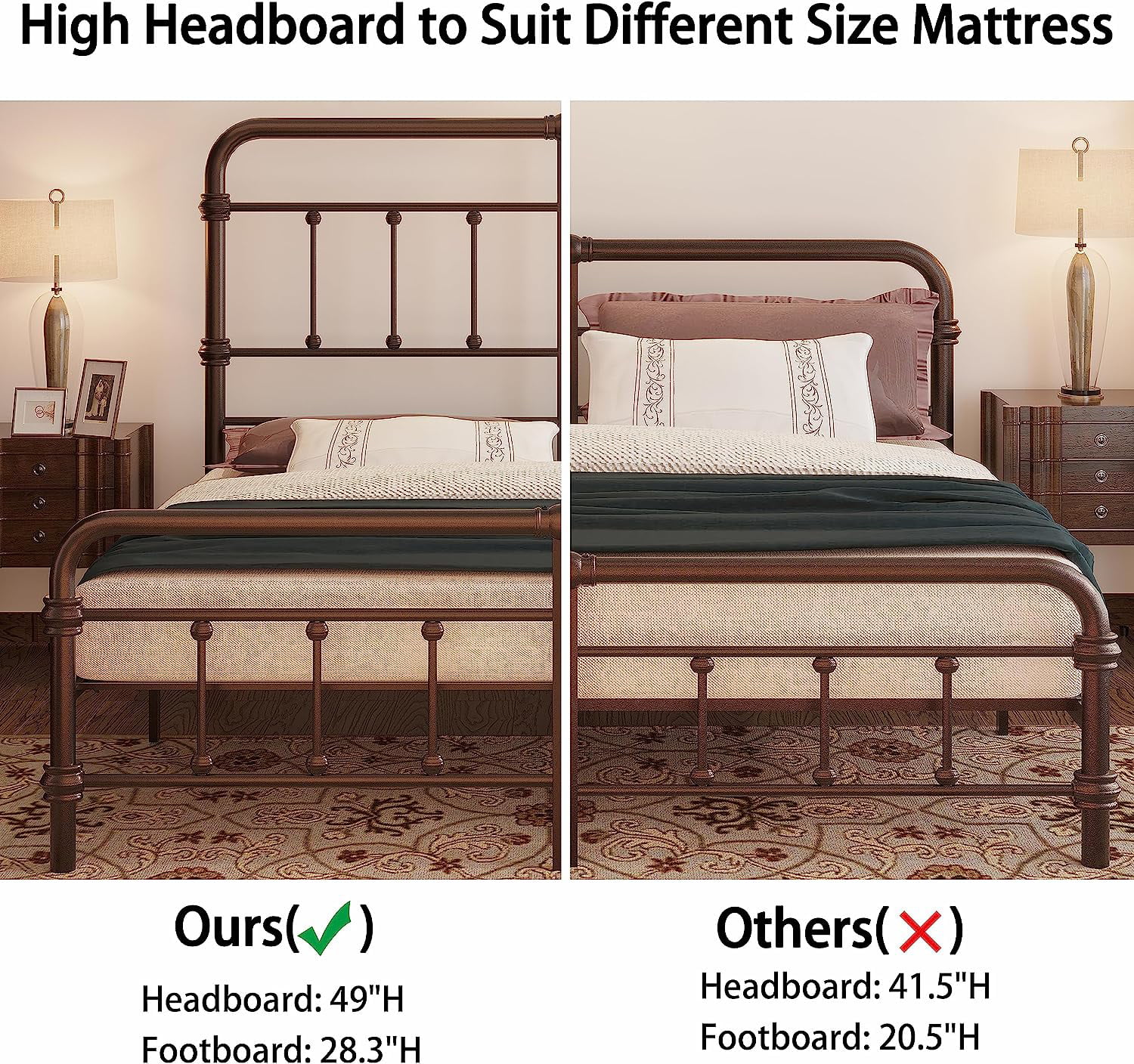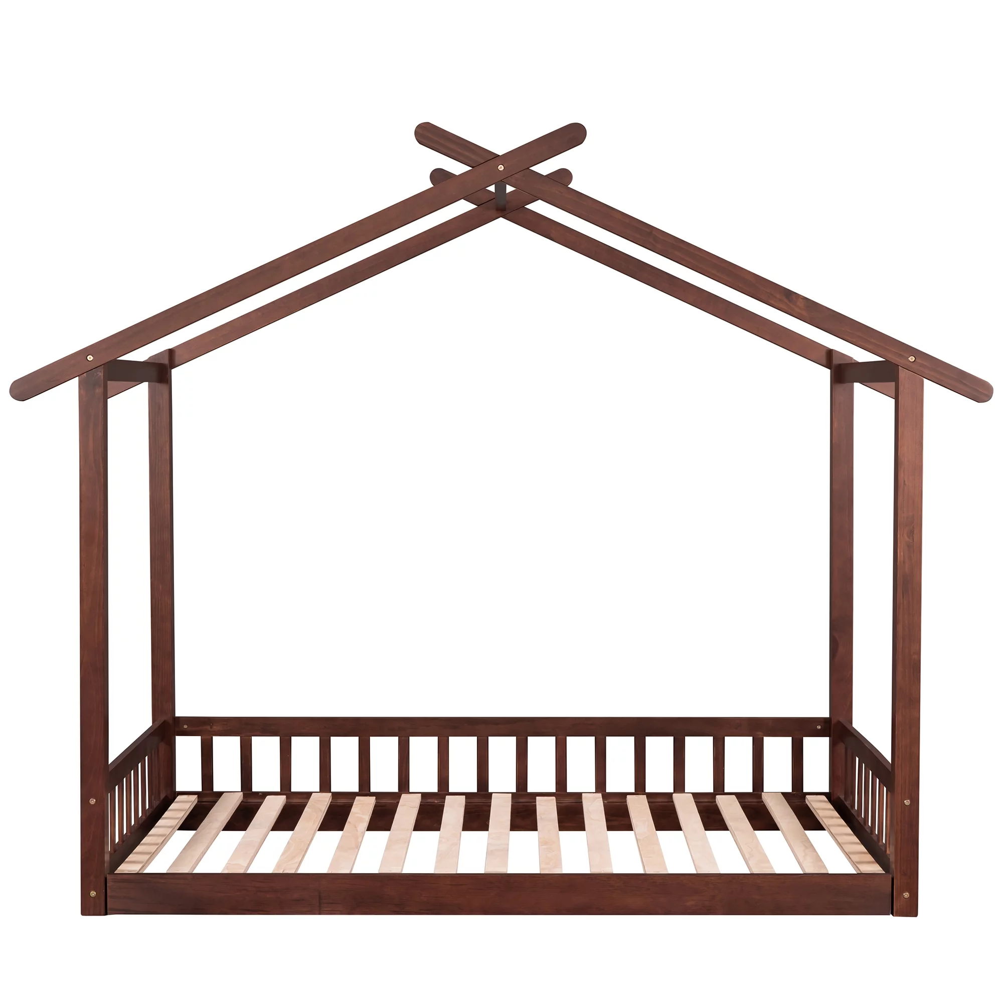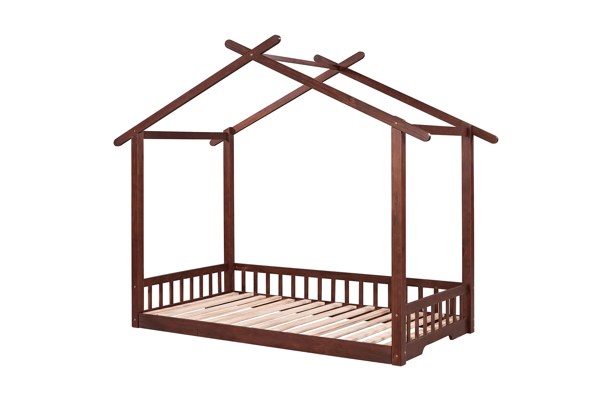 SYTHERS 53" x 30" x 24.5" Toddler Bed Frame with Safety Rail Fence and Headboard, Brown