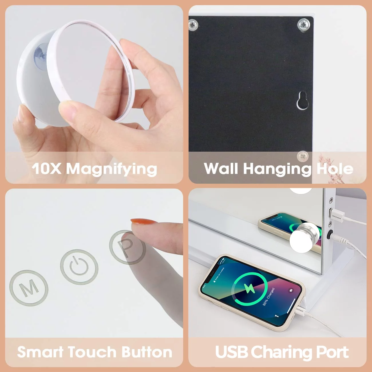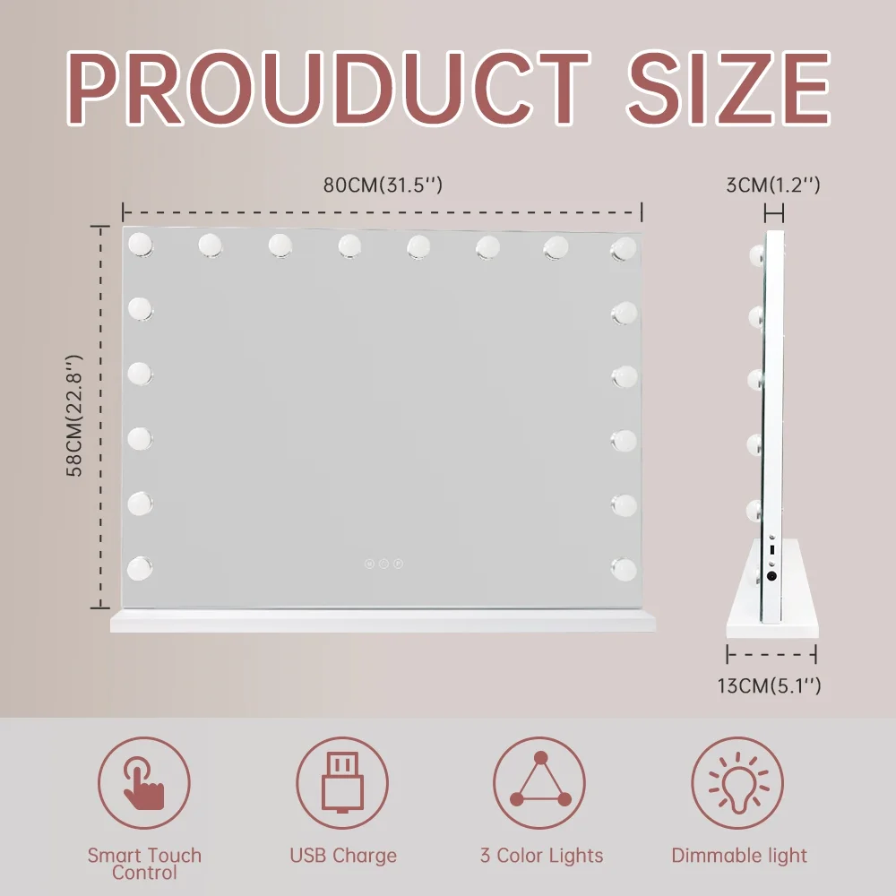 Fenchilin 32''x23'' Large Hollywood Vanity Mirror with Lights USB Tabletop Wall Mount Metal White