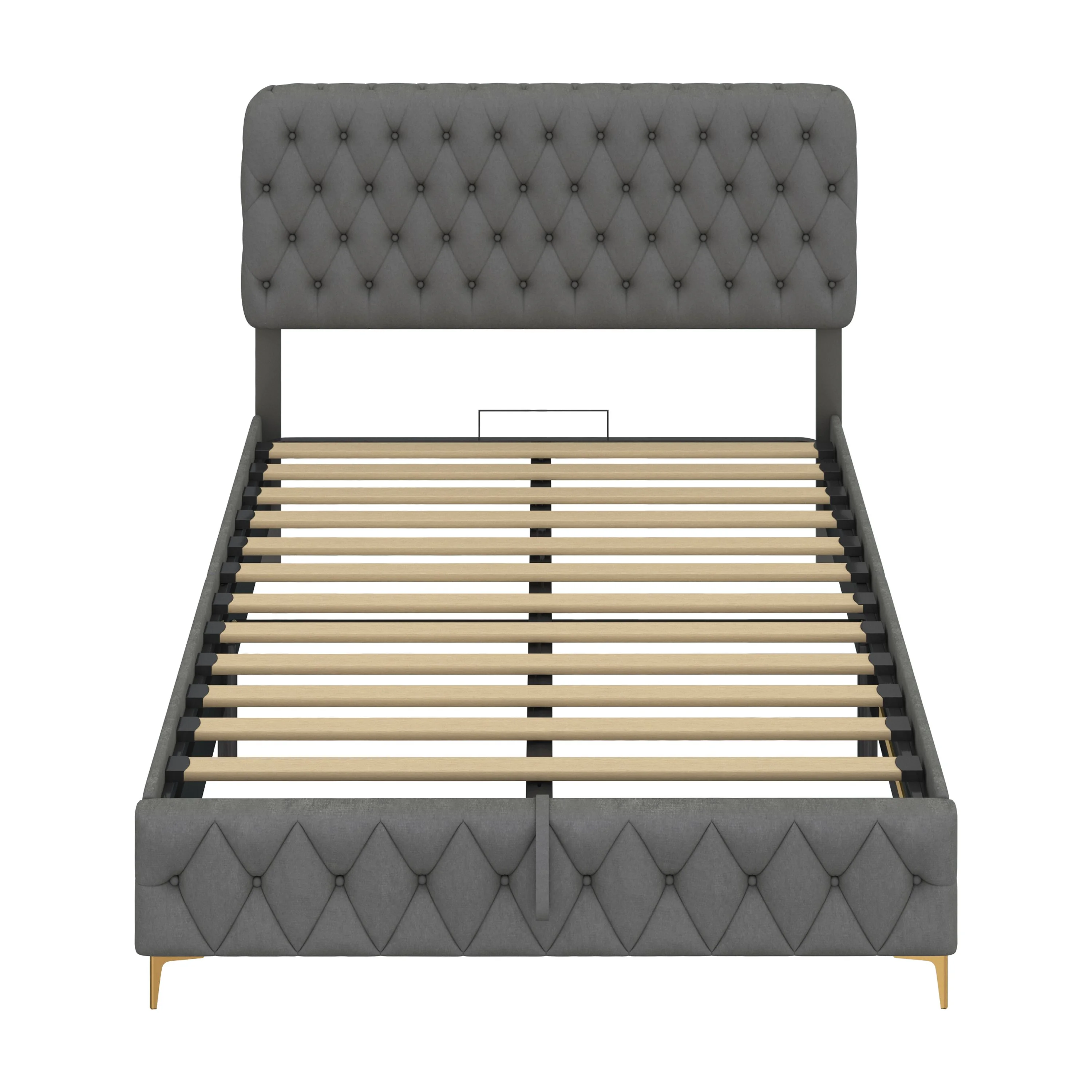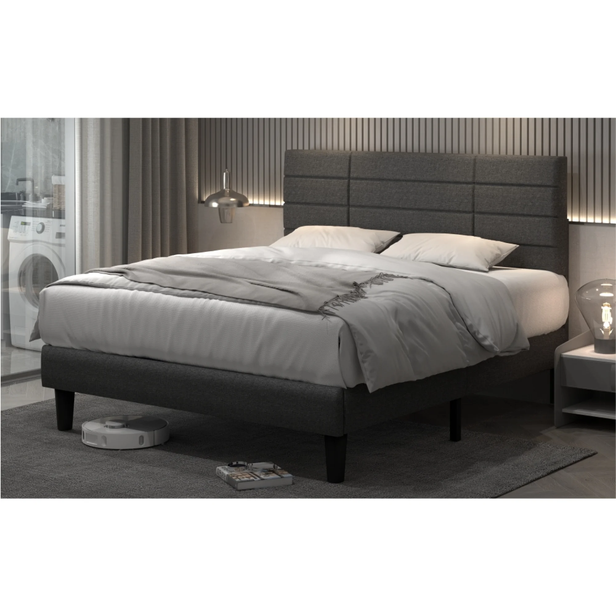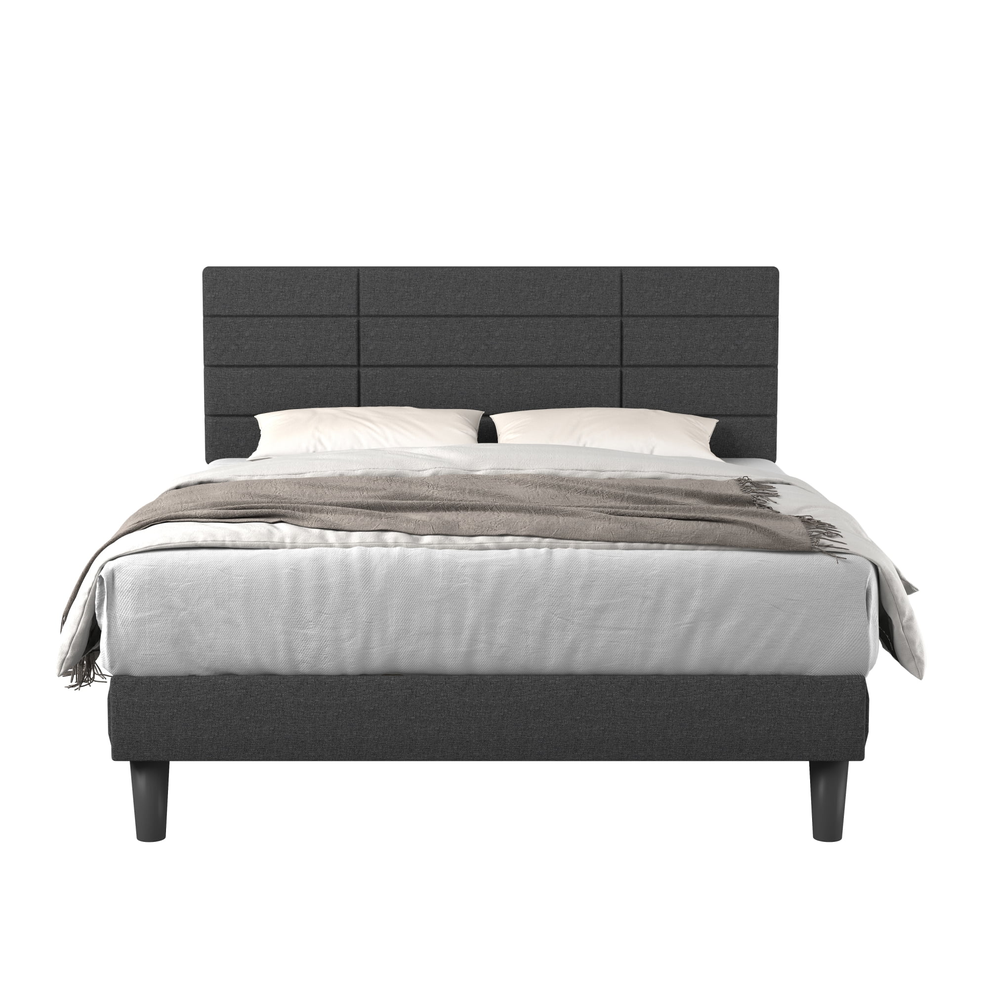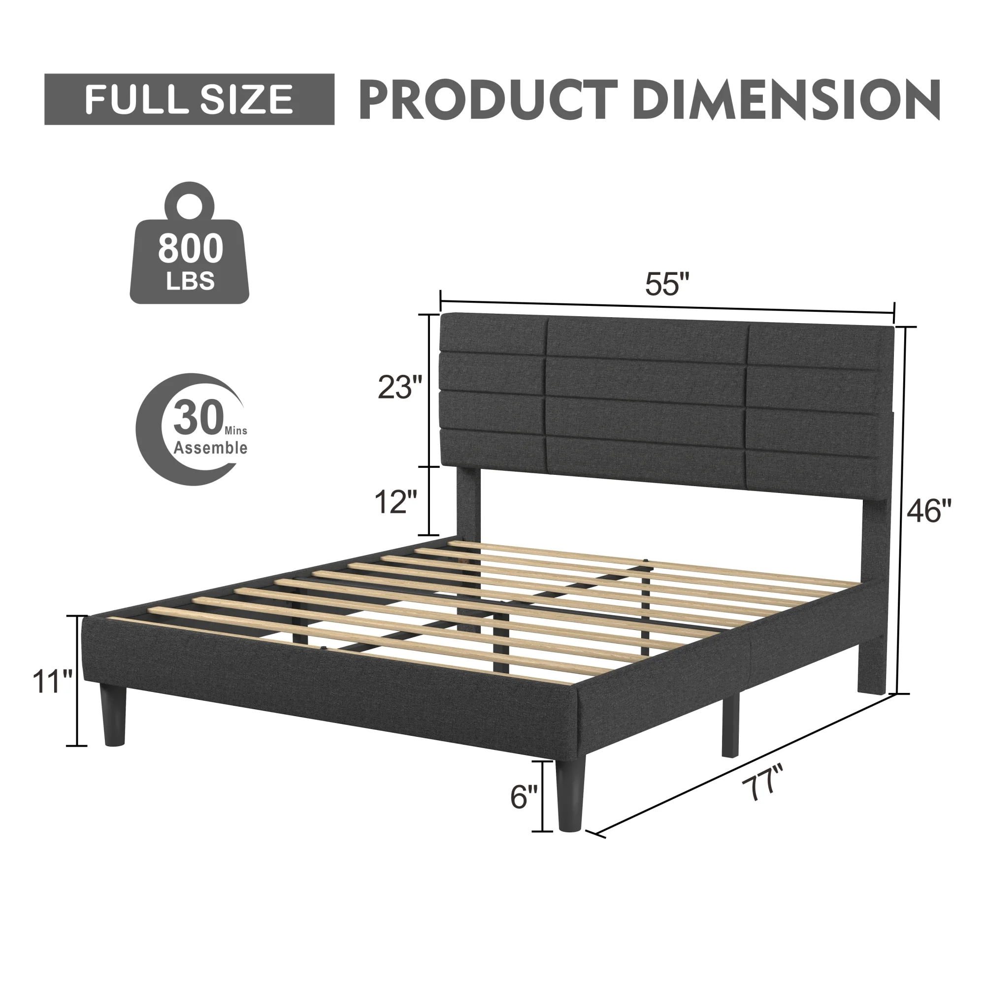Dark Grey Full Size Bed Frame with Upholstered Headboard, Strong Frame, Wooden Slats, No Box Spring Needed