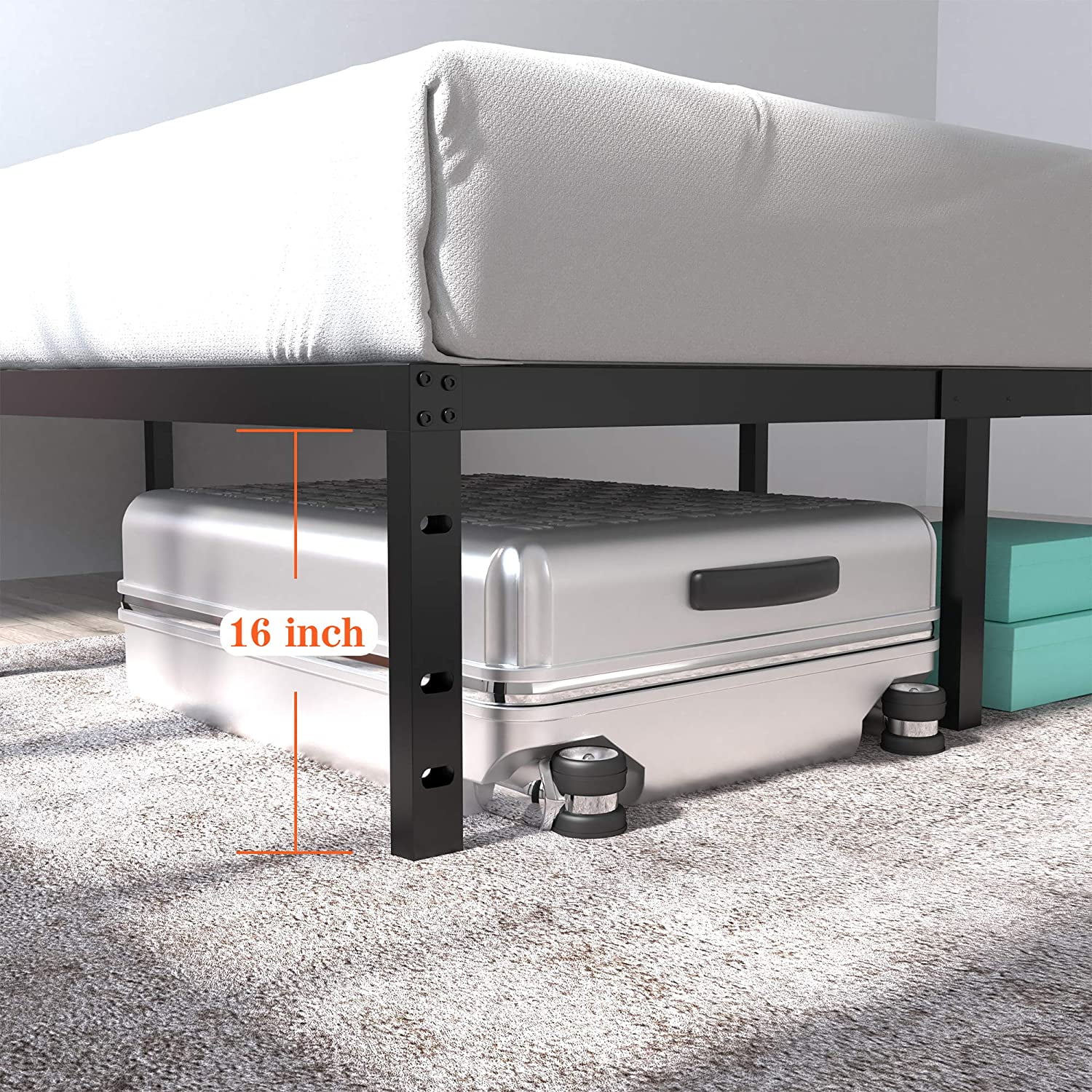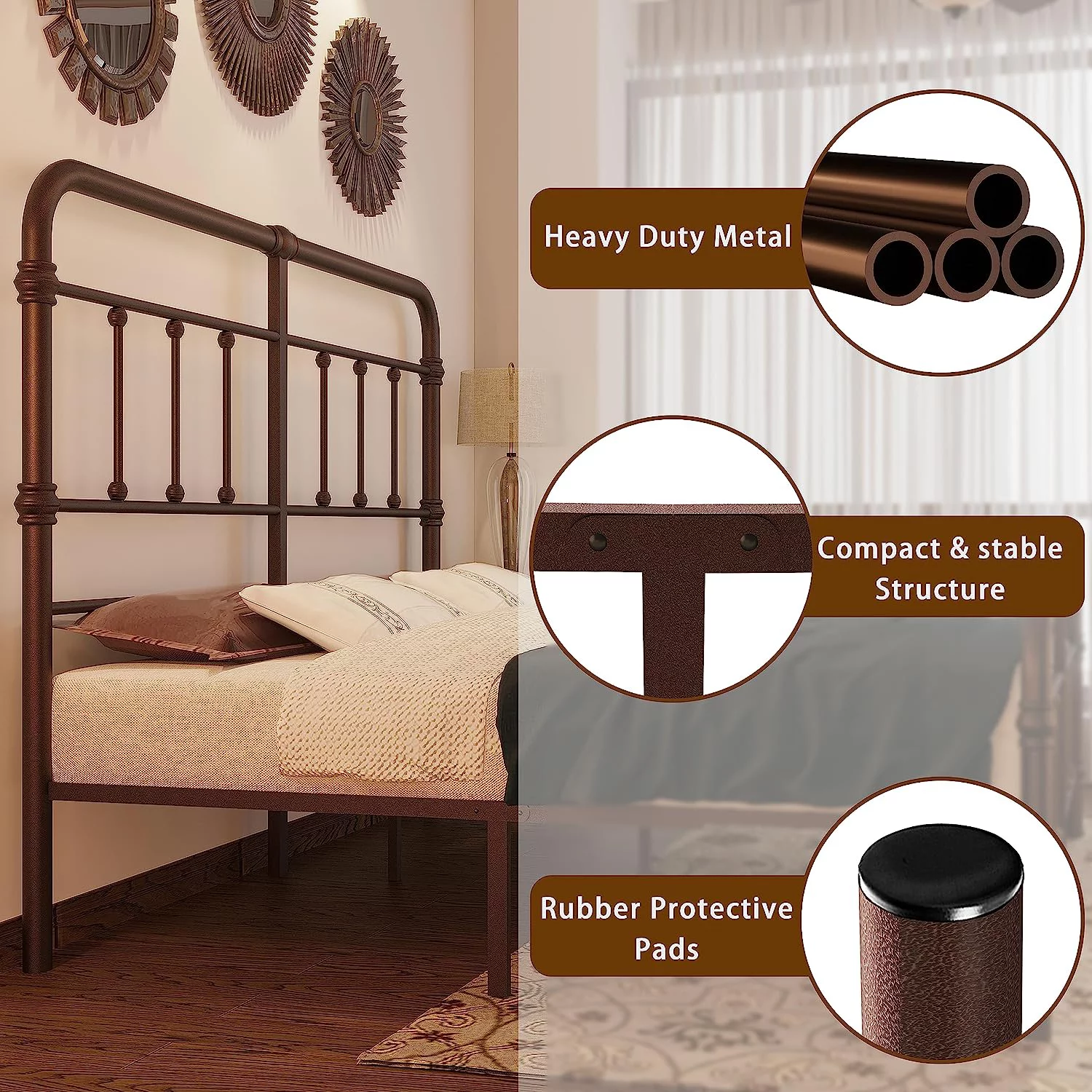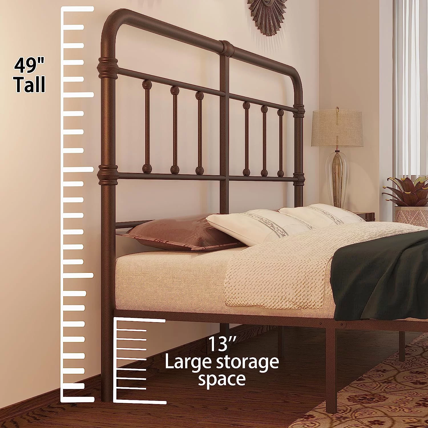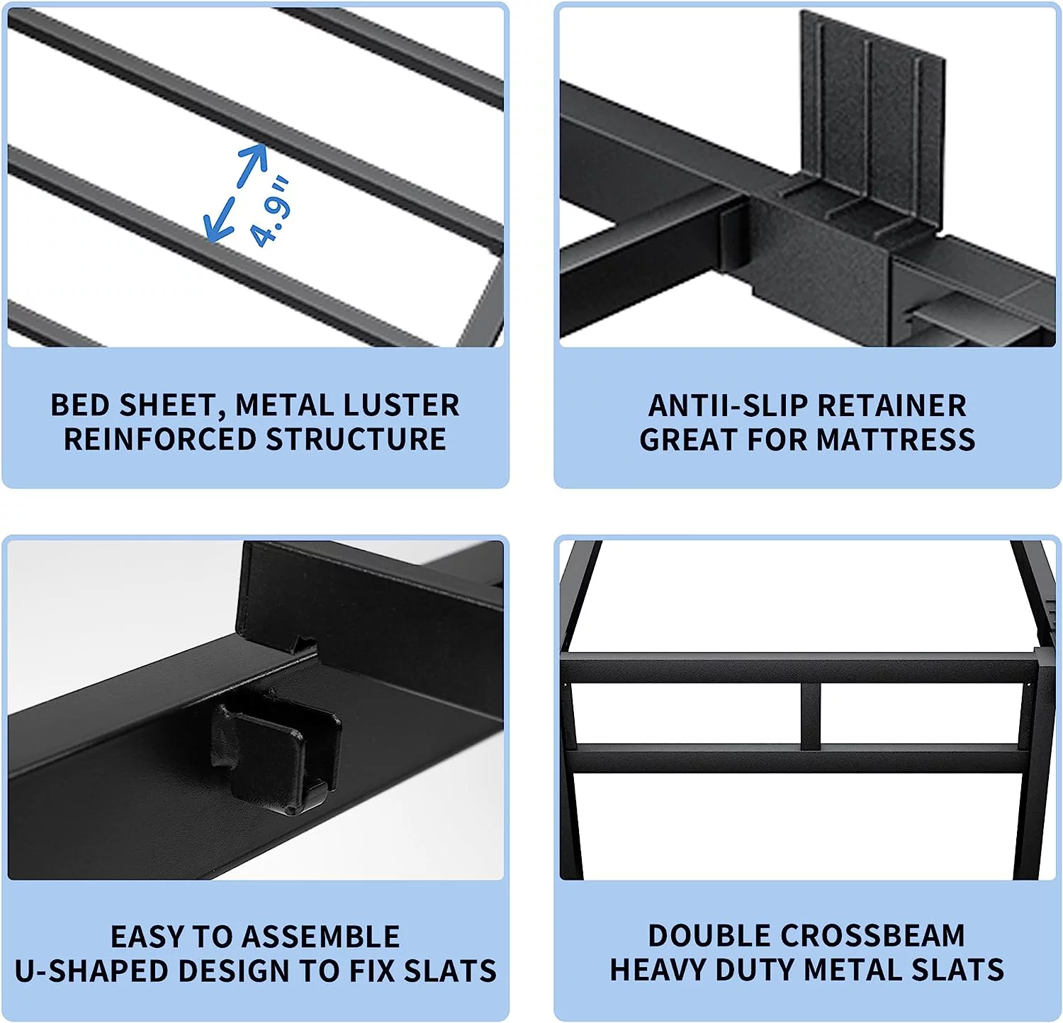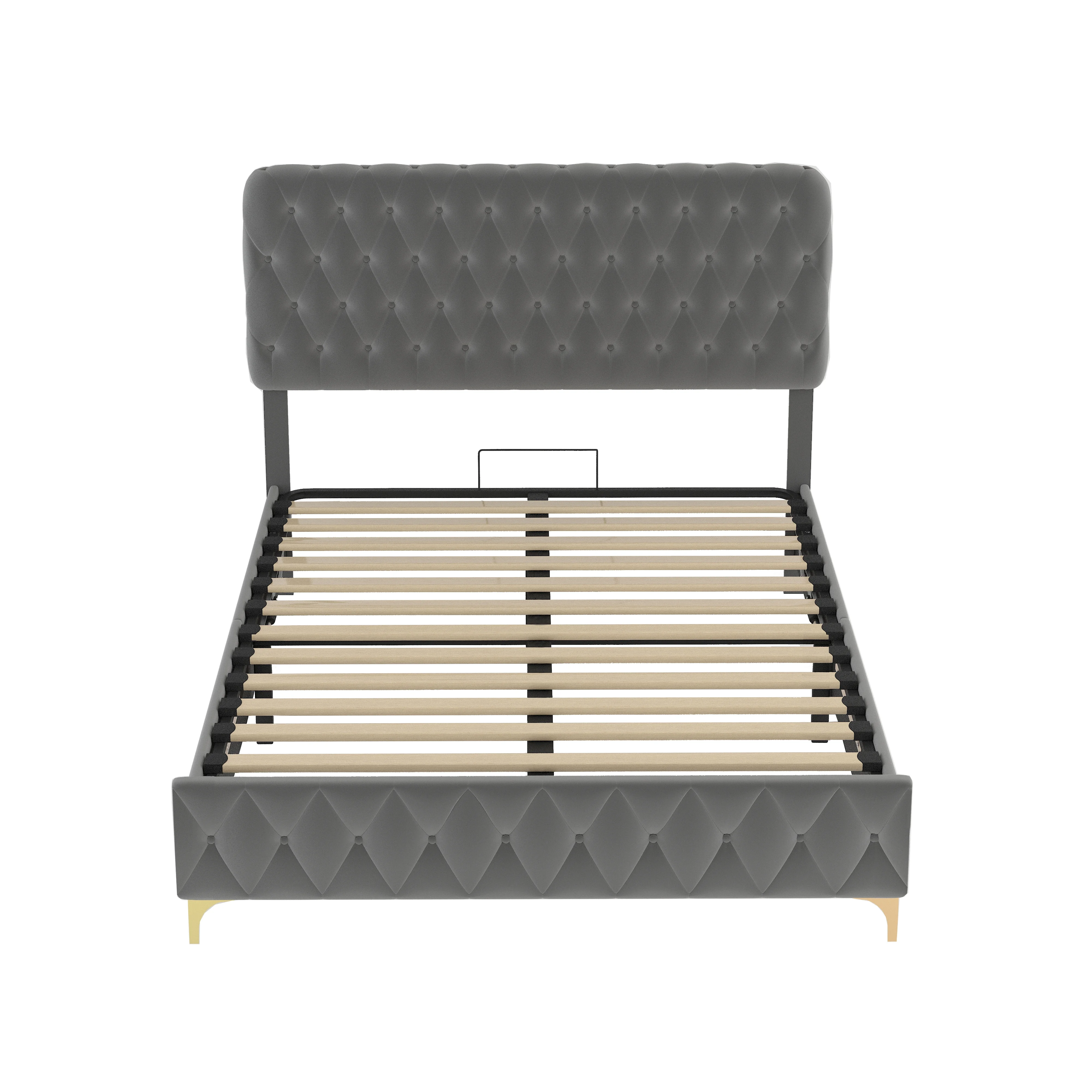 Dark Grey Full Size Bed Frame with Upholstered Headboard, Strong Frame, Wooden Slats, No Box Spring Needed