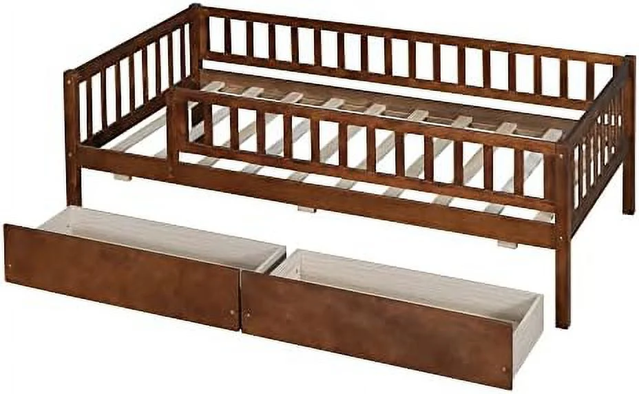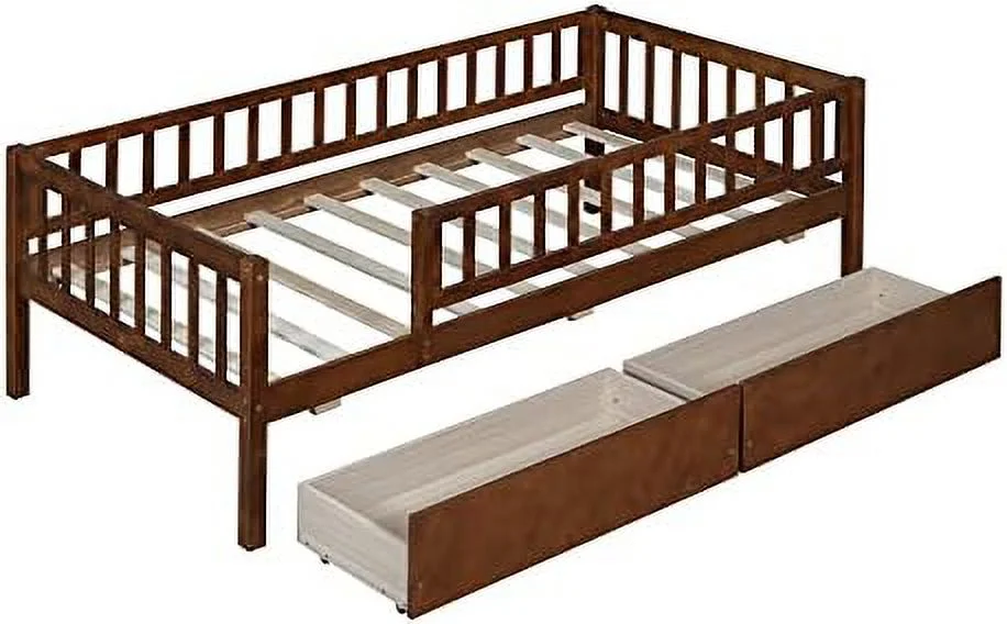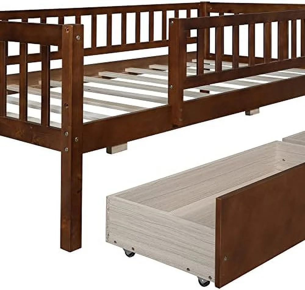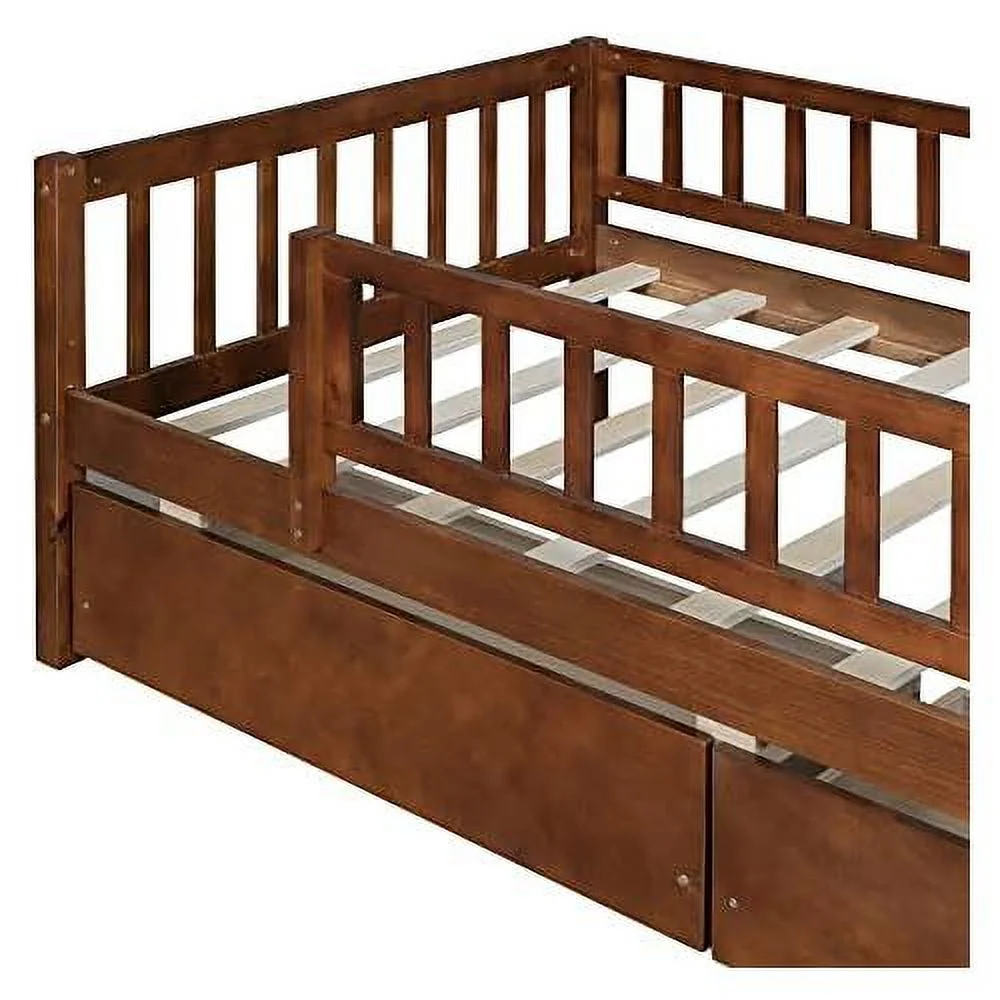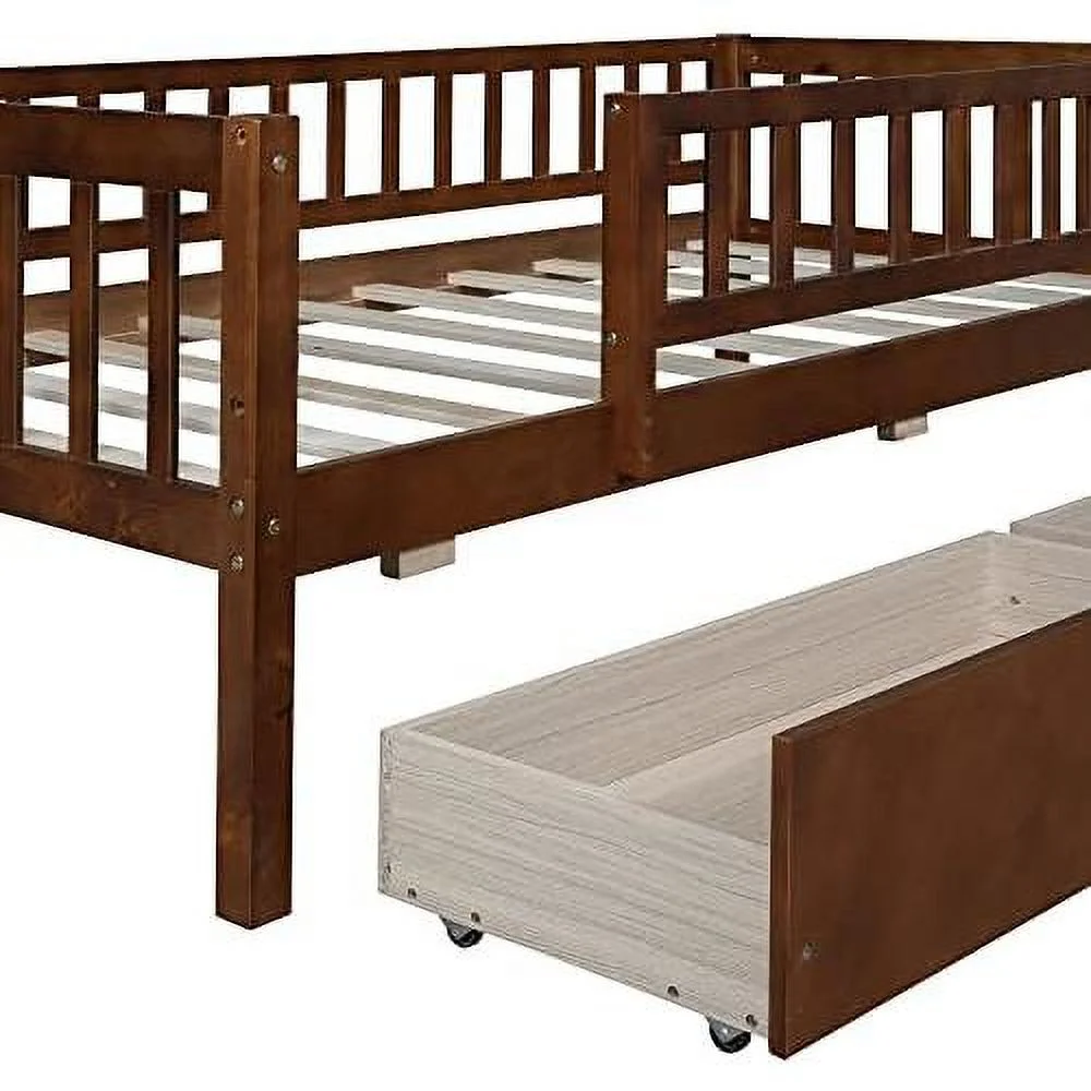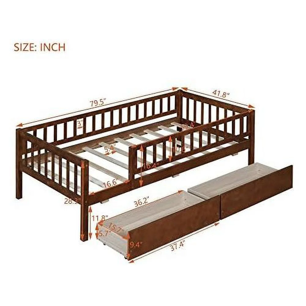 Size Daybed With Drawers, Wood Bed Frame, No Box Spring Needed, Walnut