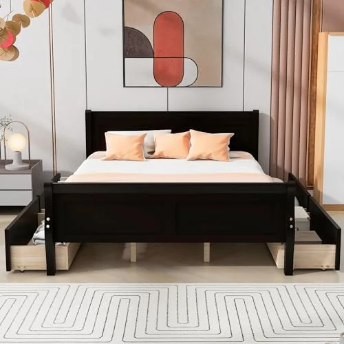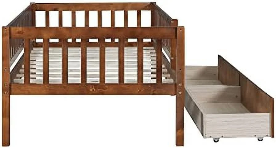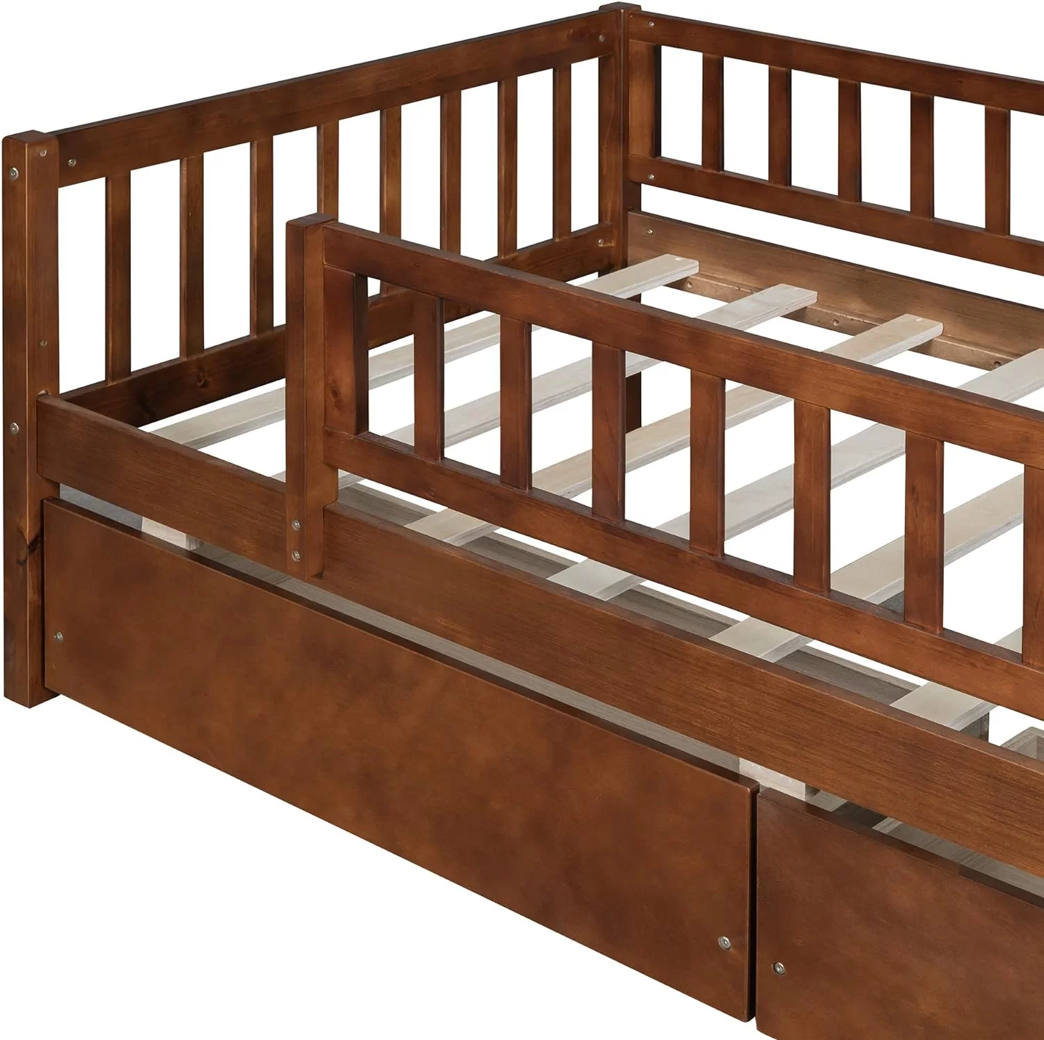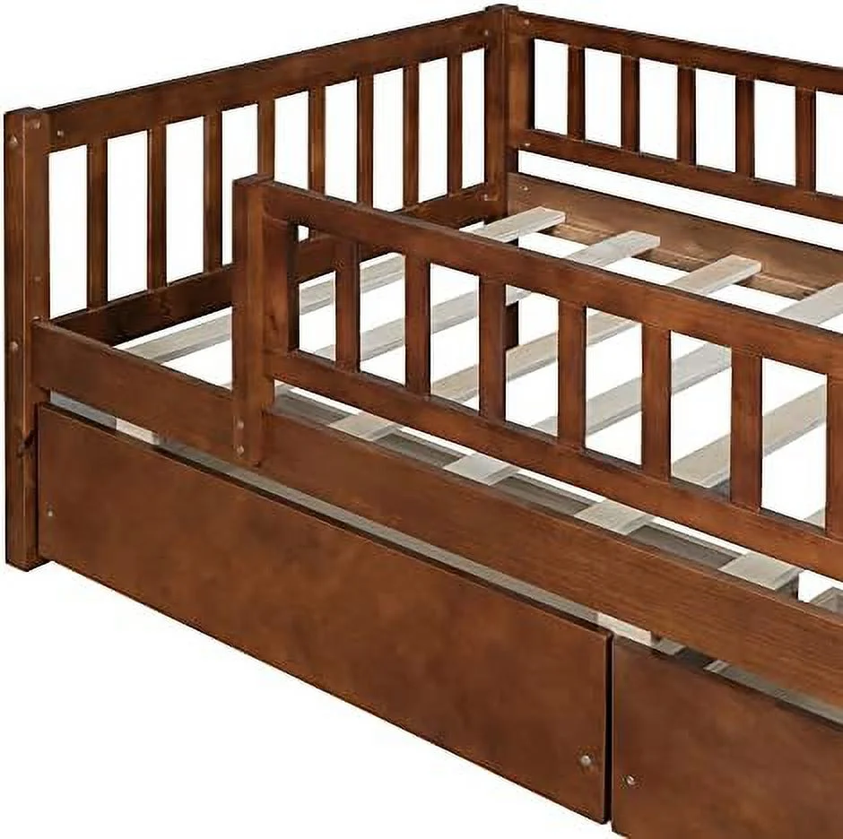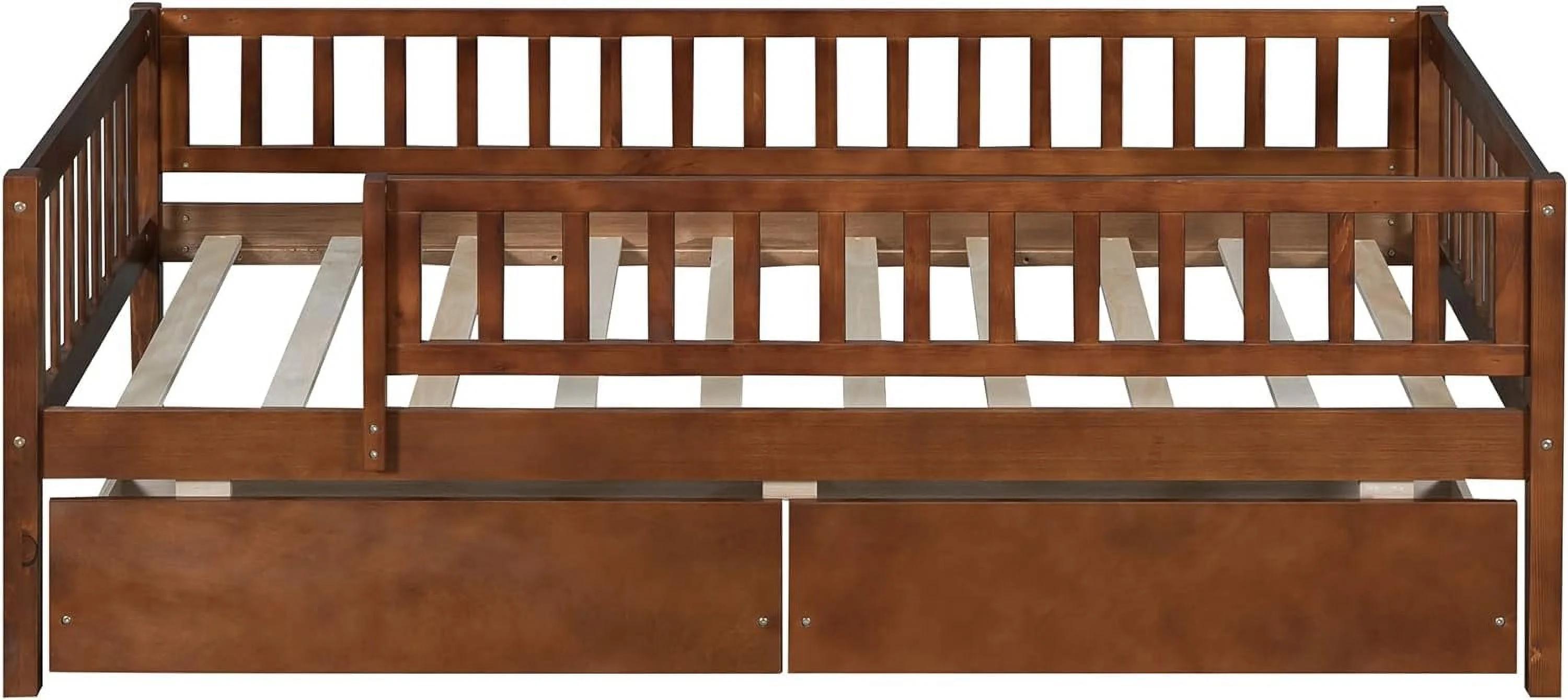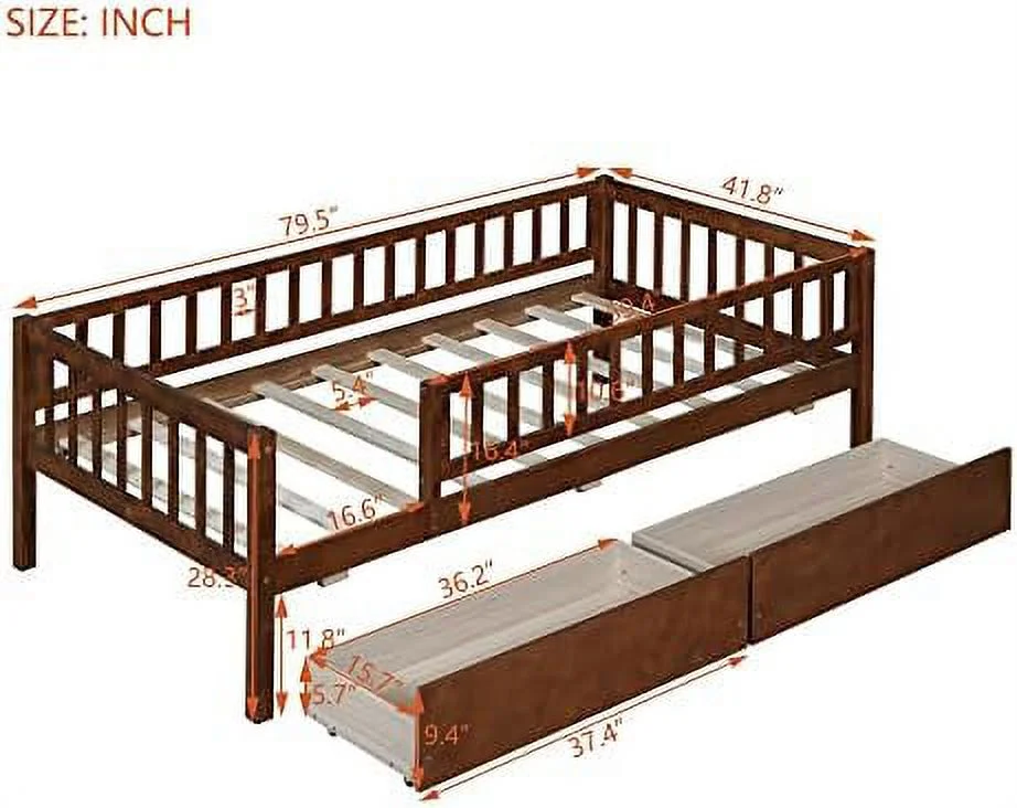 Size Daybed With Drawers, Wood Bed Frame, No Box Spring Needed, Walnut