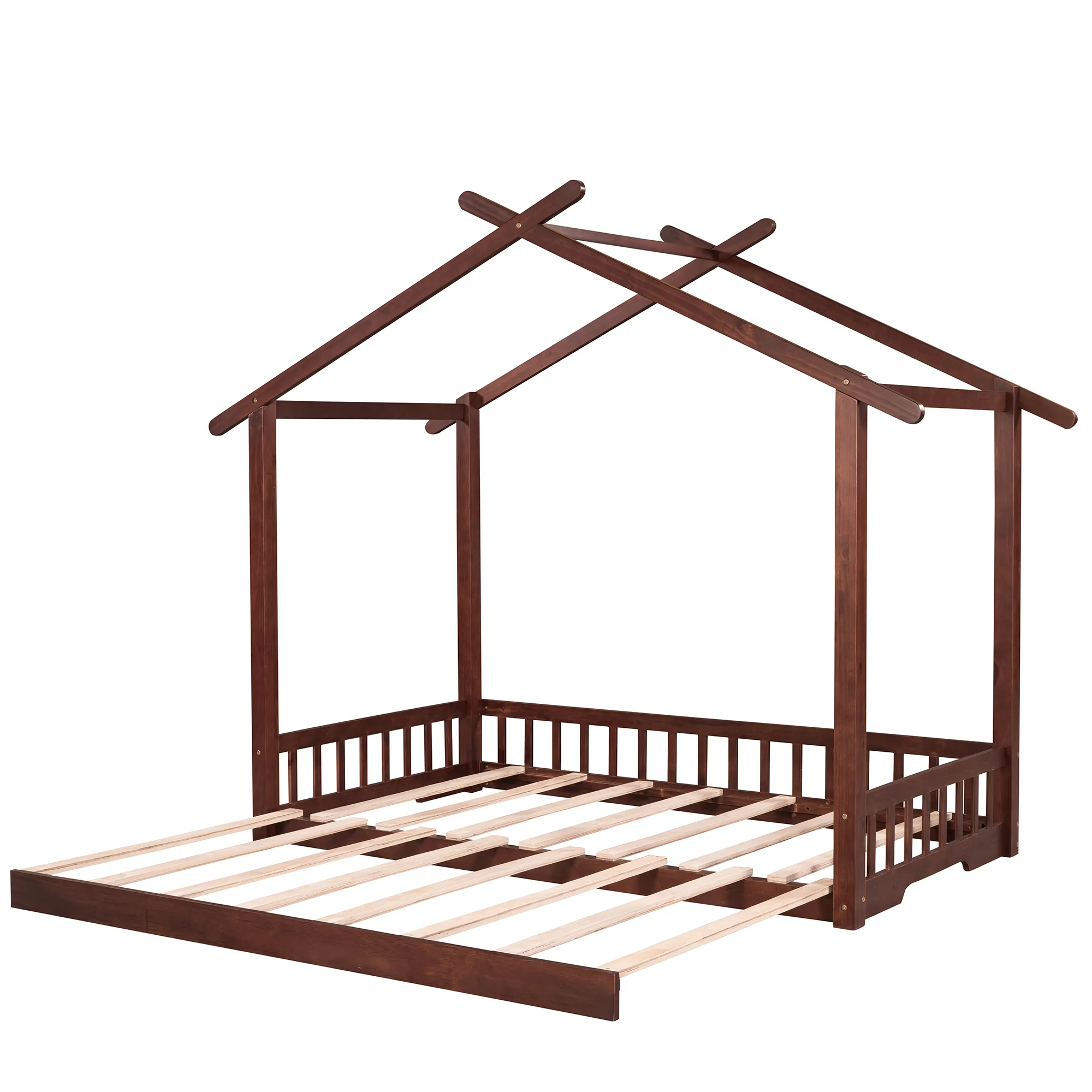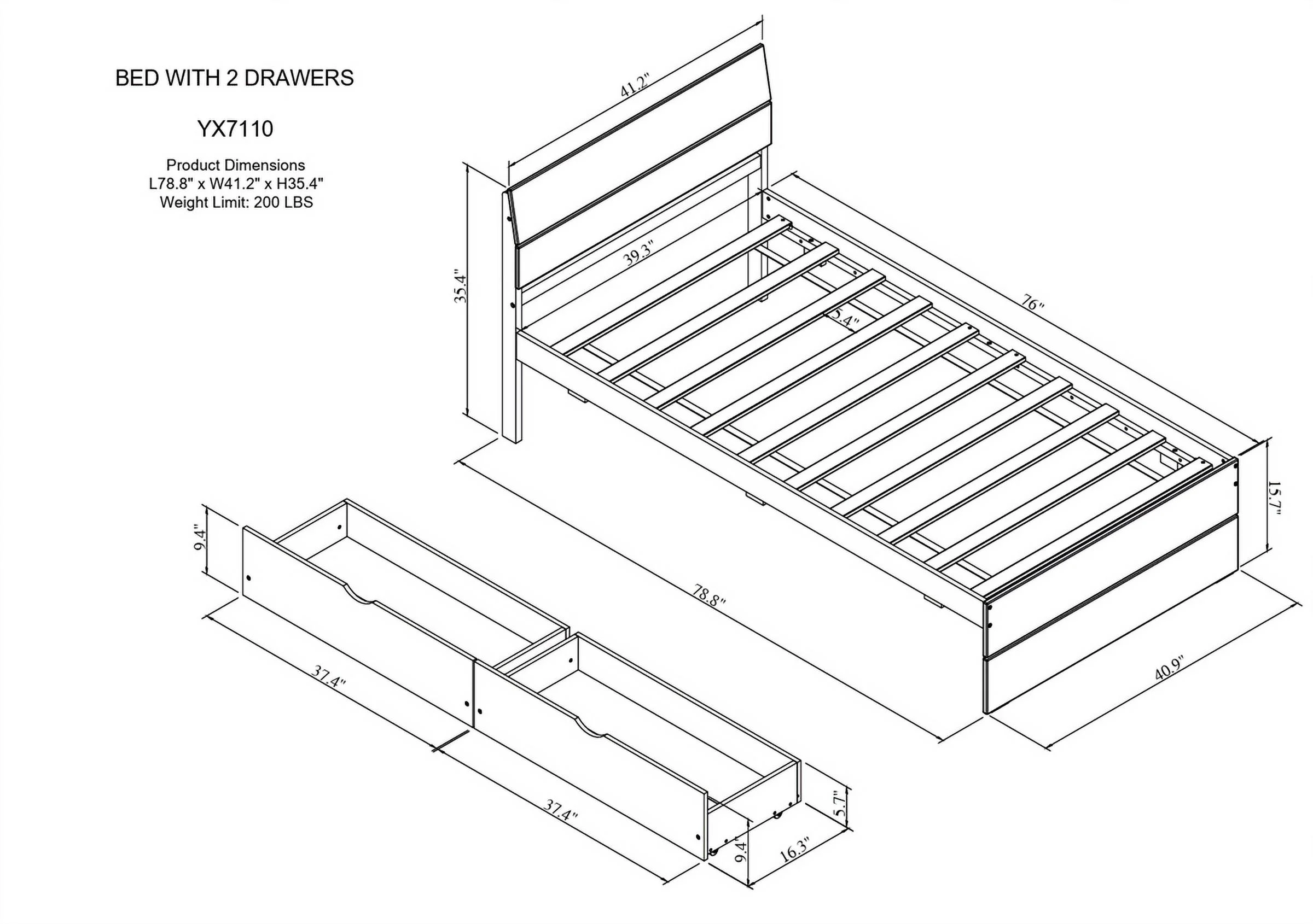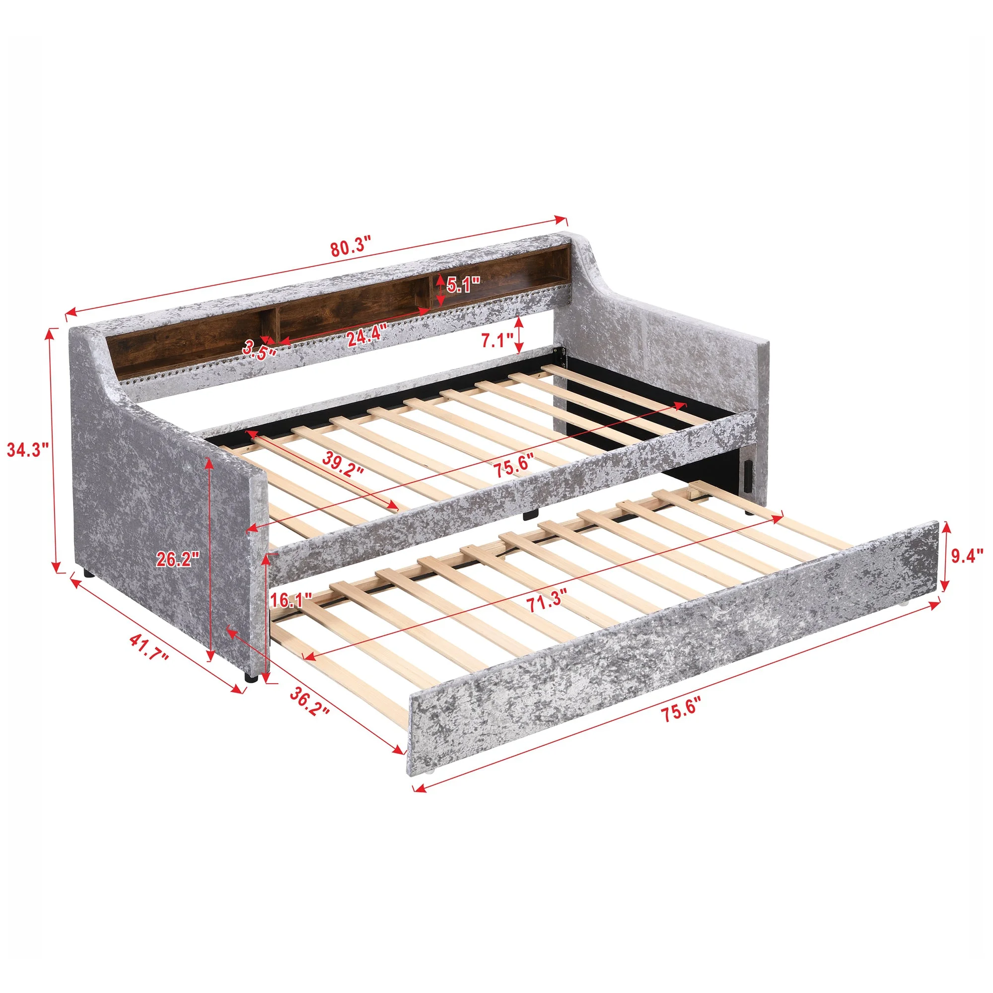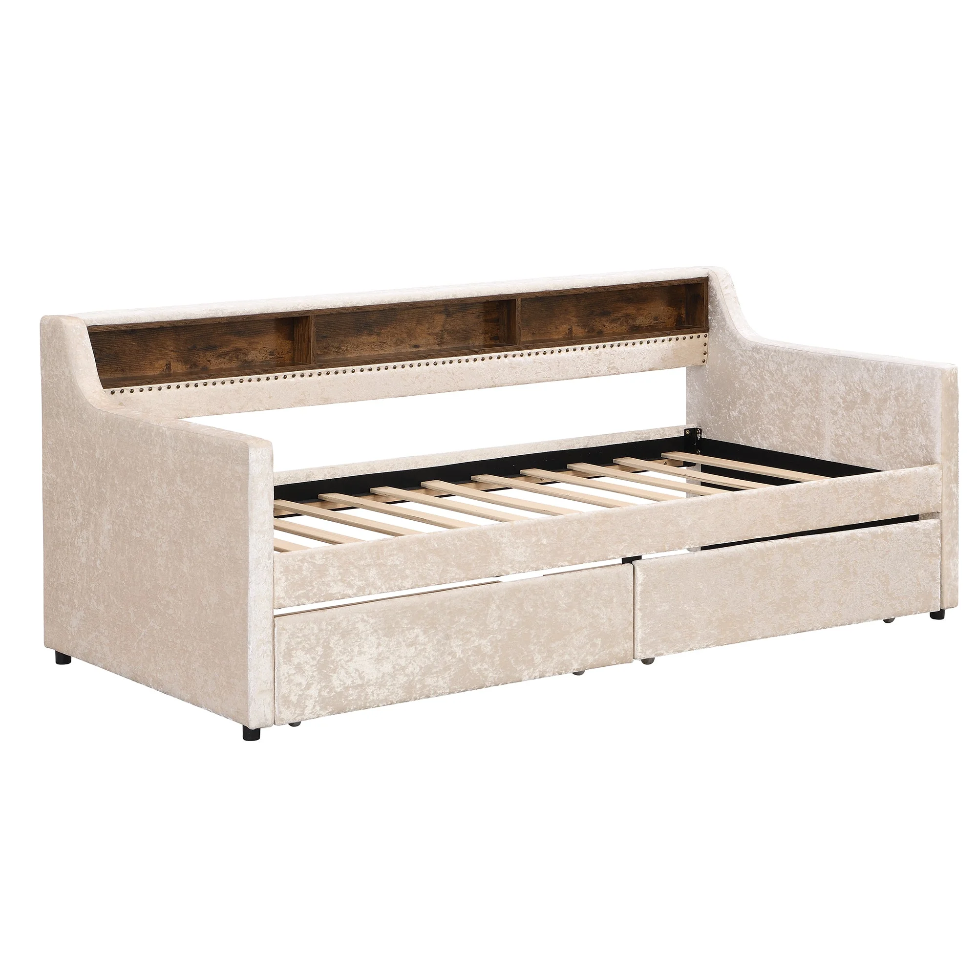 Size Daybed With Drawers, Wood Bed Frame, No Box Spring Needed, Walnut