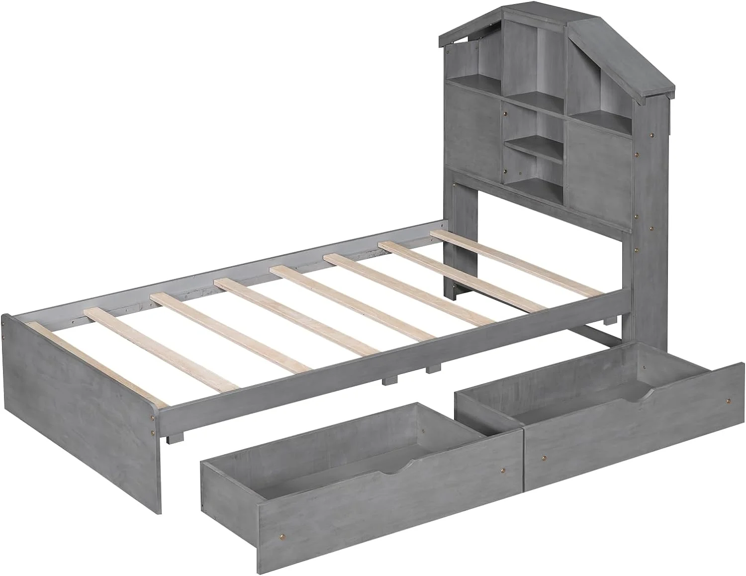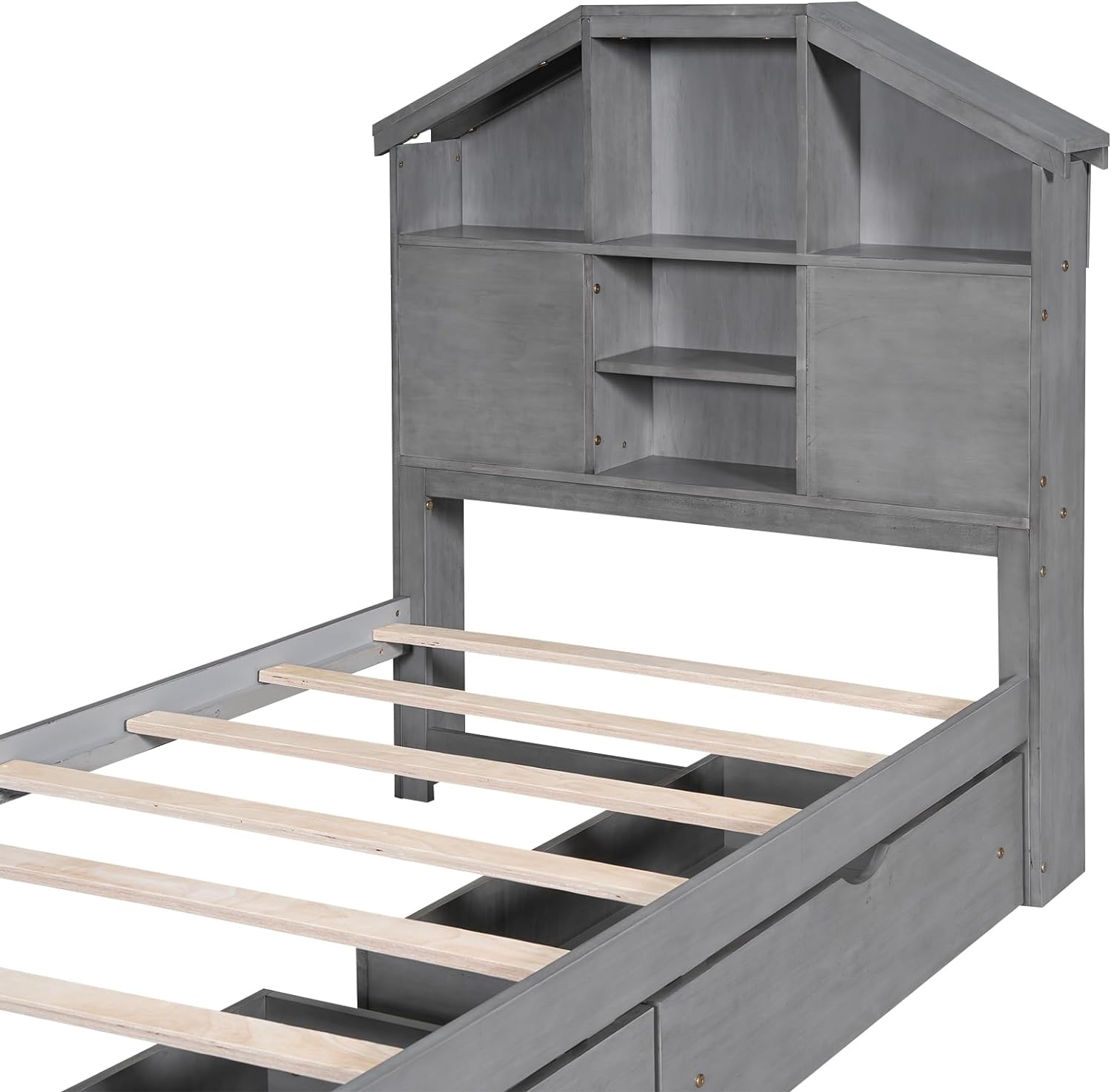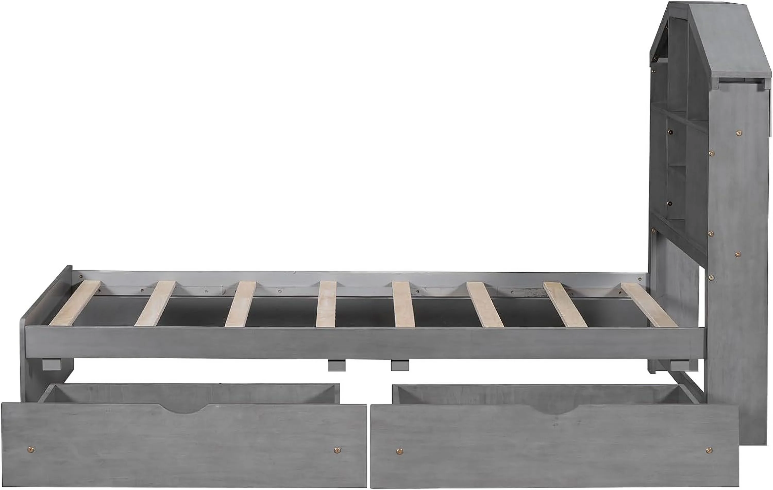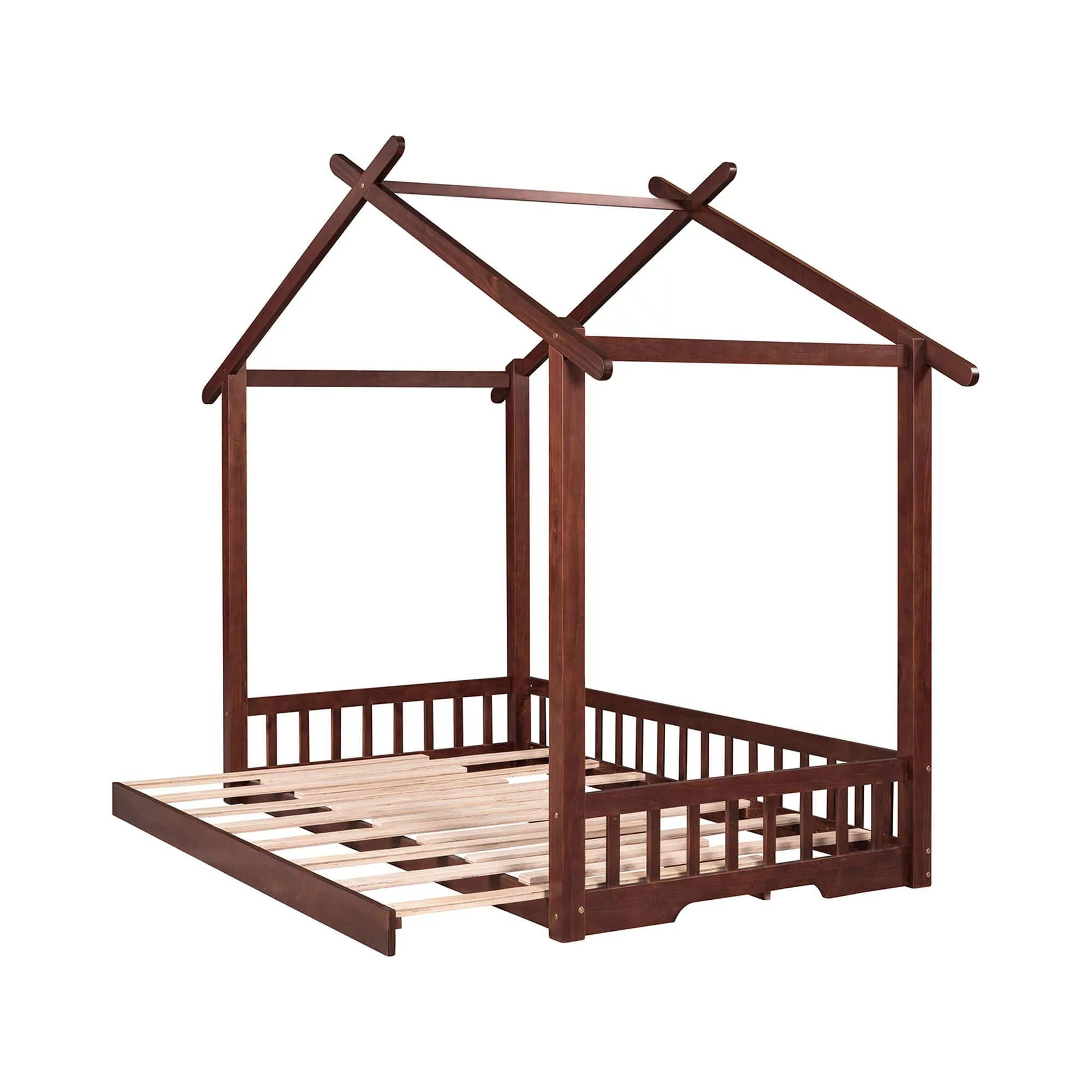 Size Daybed With Drawers, Wood Bed Frame, No Box Spring Needed, Walnut