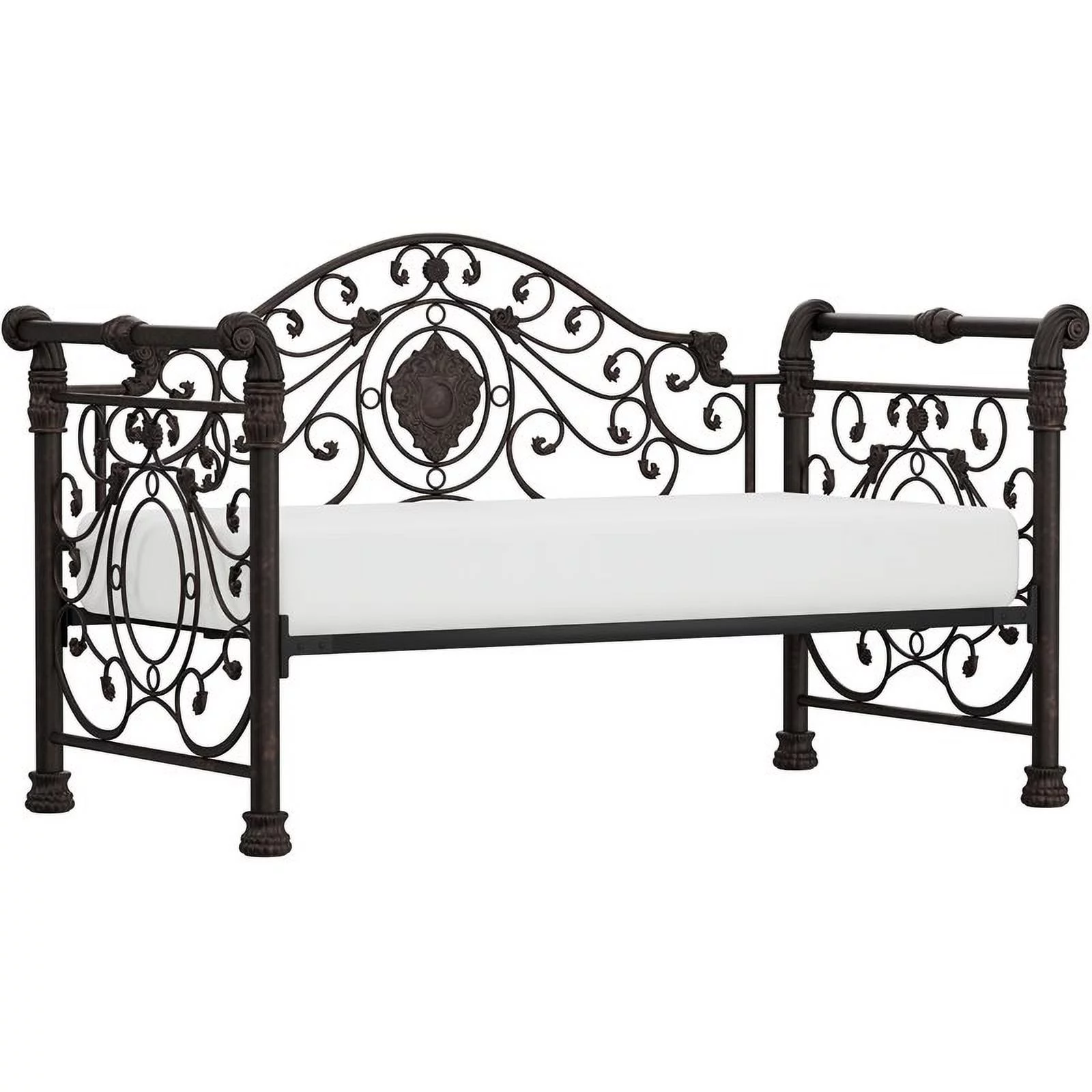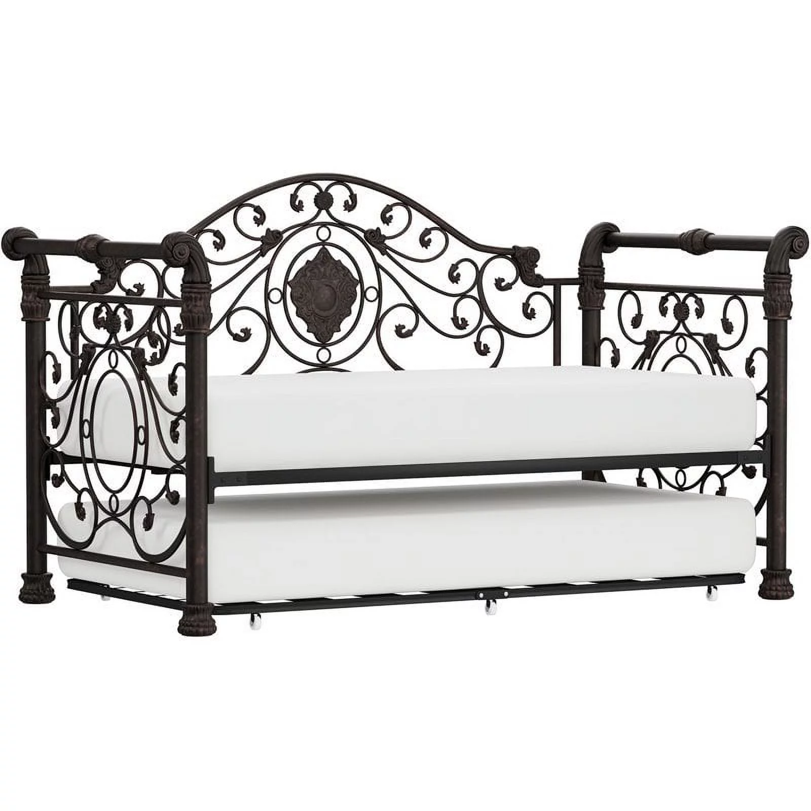 Bowery Hill Metal Sleigh Daybed With Suspension Deck and Trundle in Brown