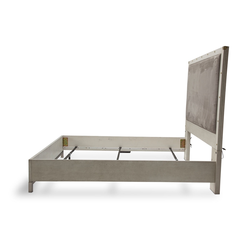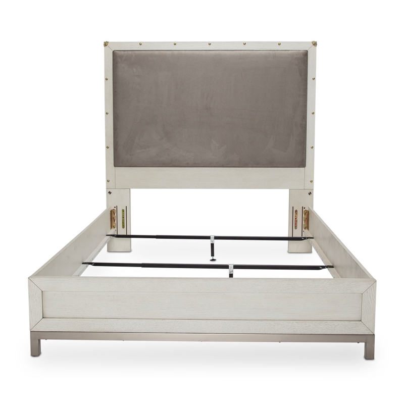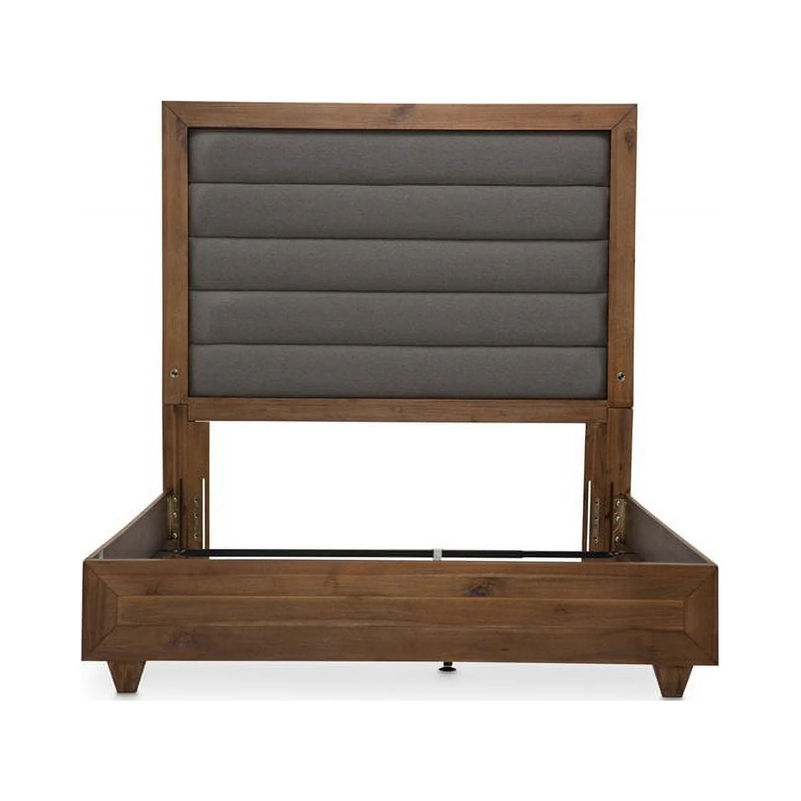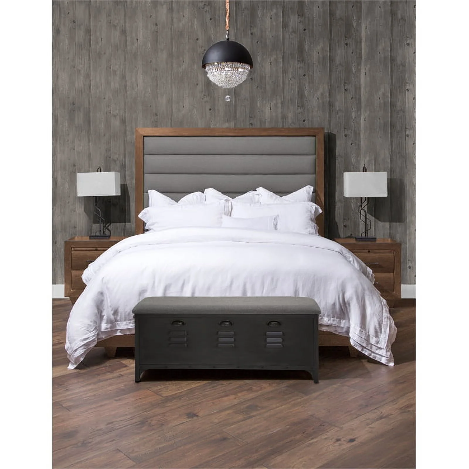 Michael Amini Brooklyn Walk Queen Tufted Wood Panel Bed in Gray/Burnt Umber