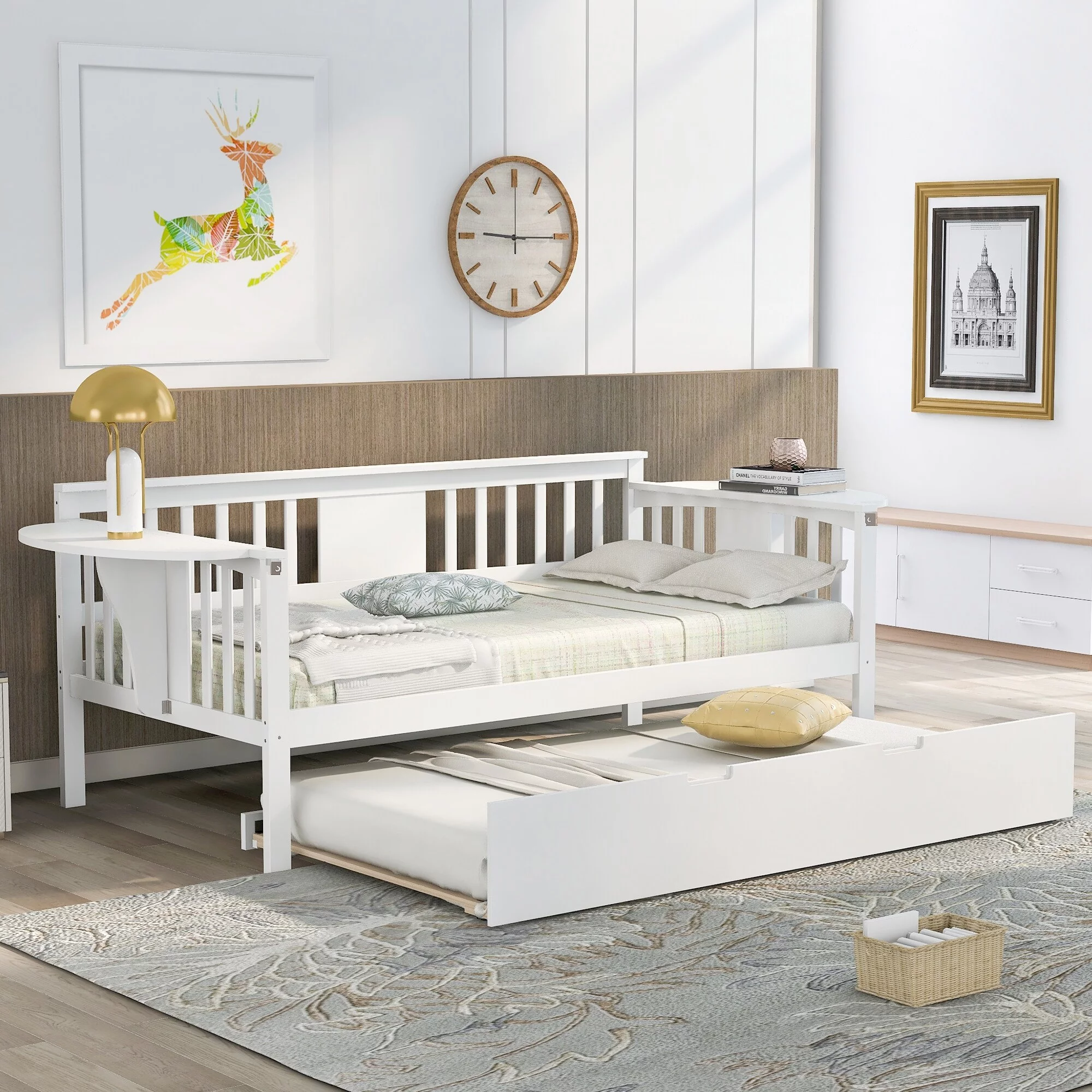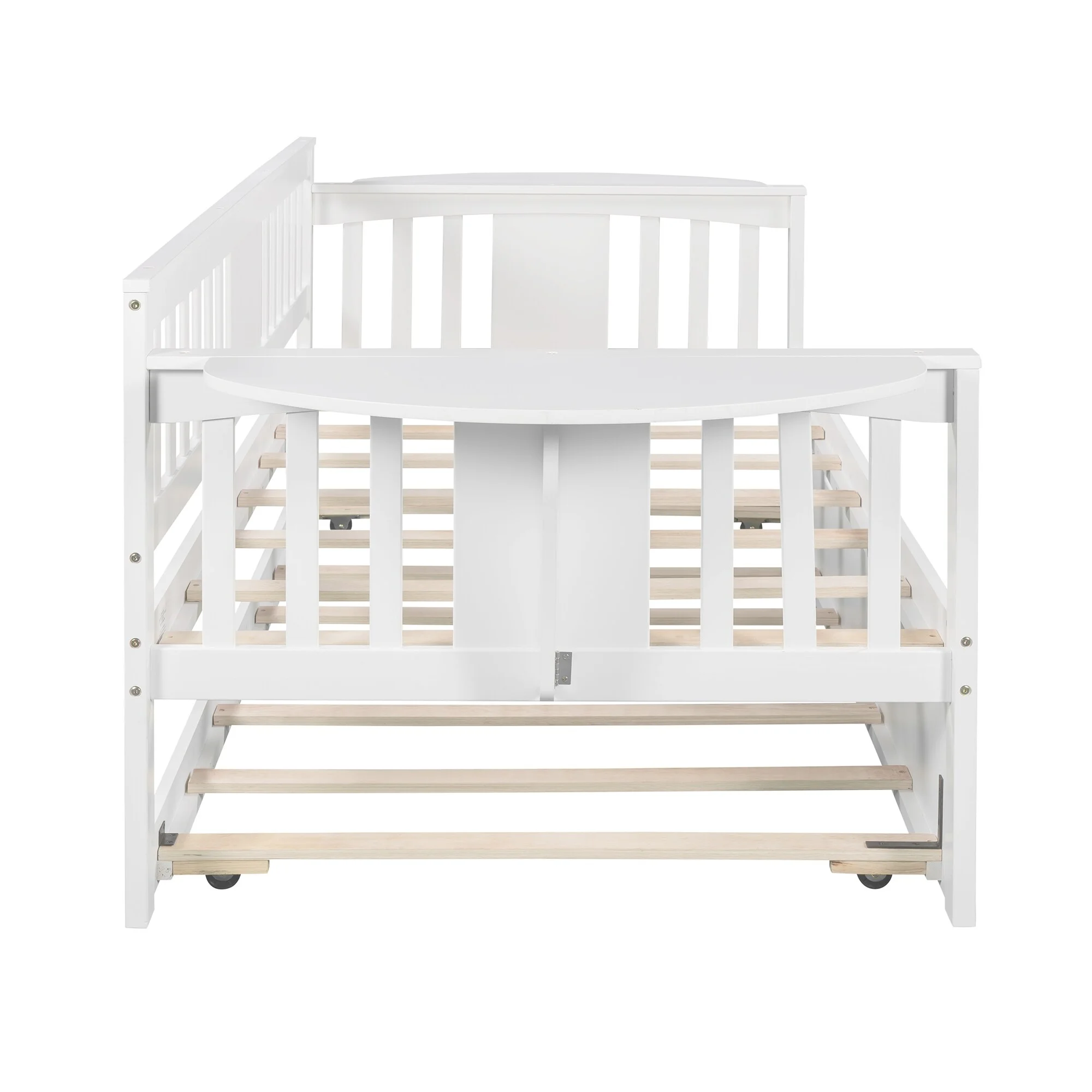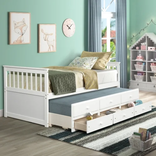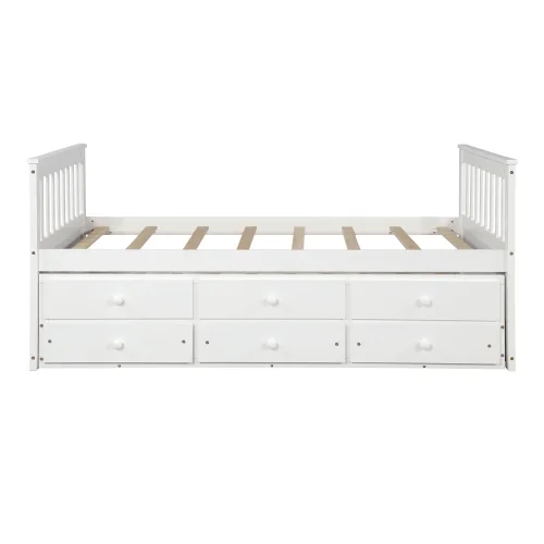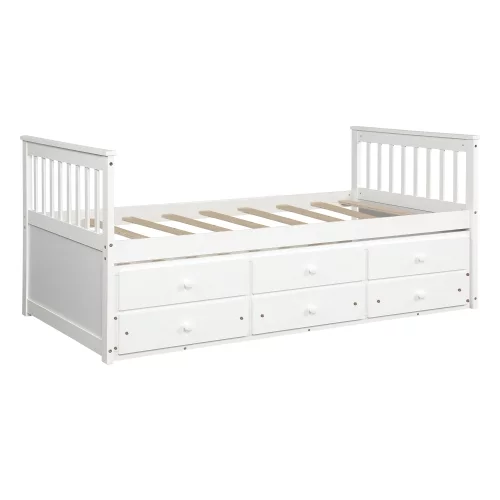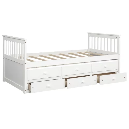 TOPMAX Captain's Bed Twin Daybed with Trundle Bed and Storage Drawers, White