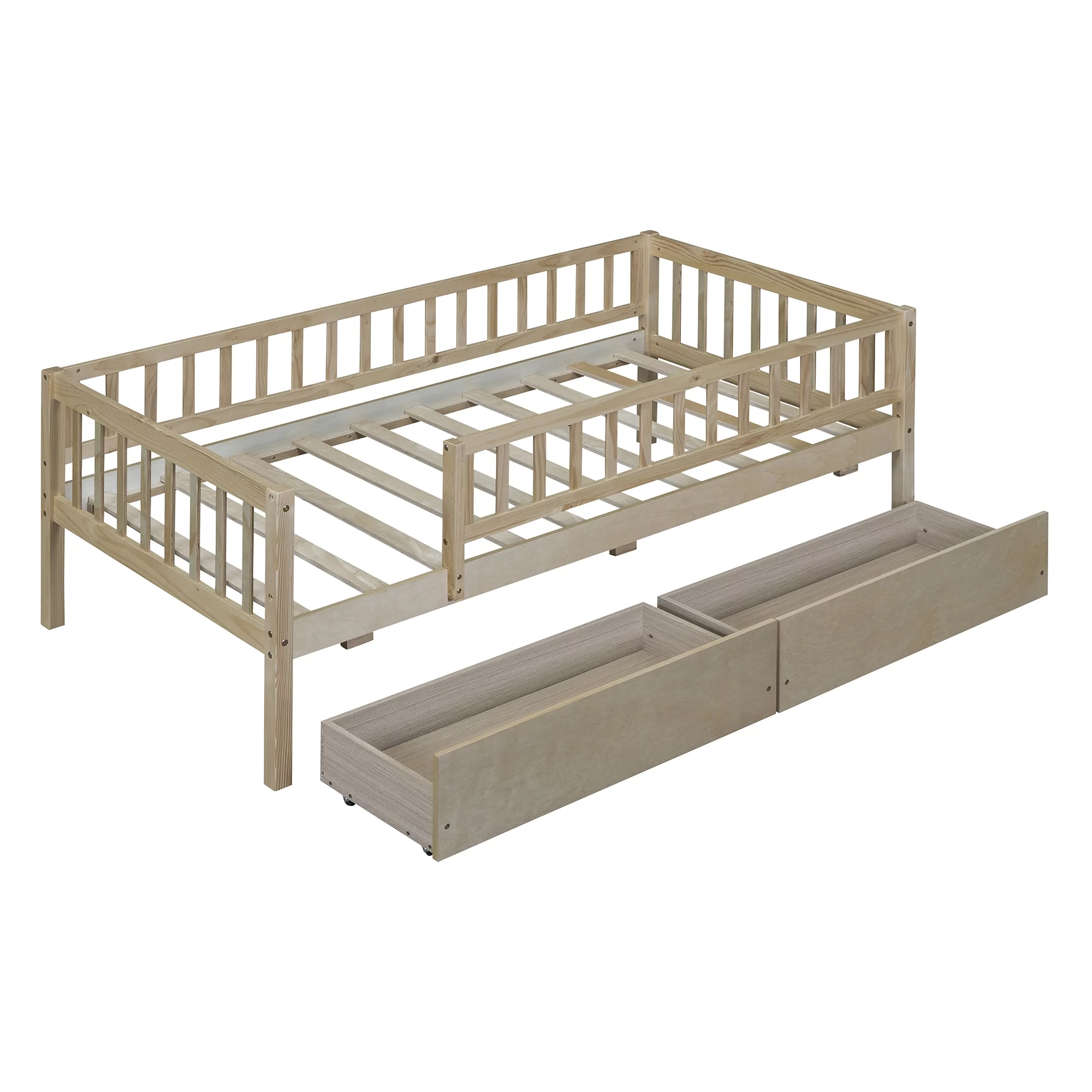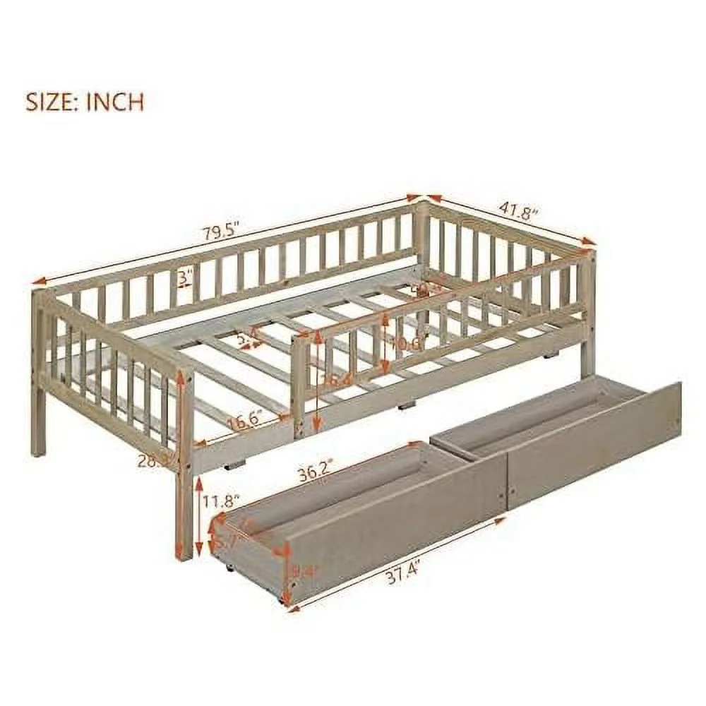 Sesslife Twin Size Daybed Wood Bed with 2 Drawers, Twin Bed for Boys and Girls, No Box Spring Needed(Natural)