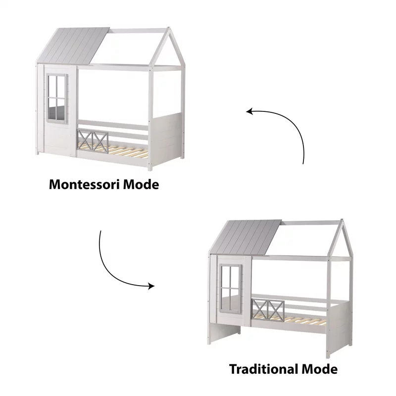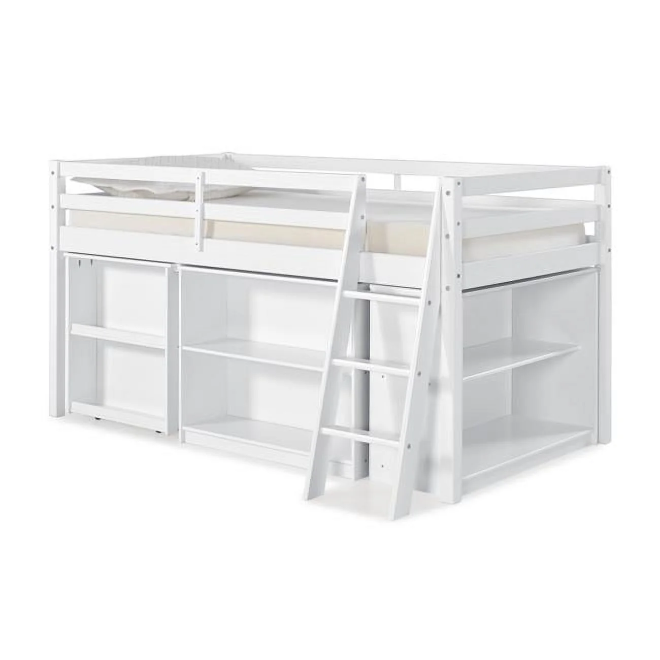 Alaterre Roxy Wood Junior Loft Bed with Pull-Out Desk, Shelving & Bookcase, White