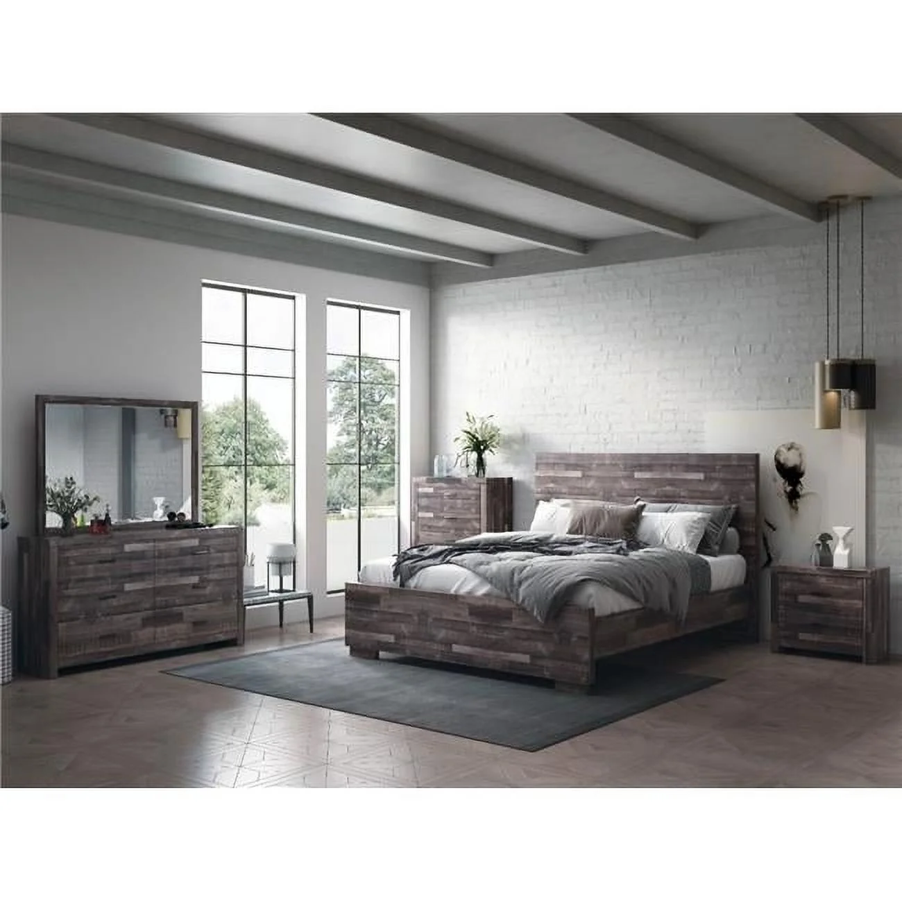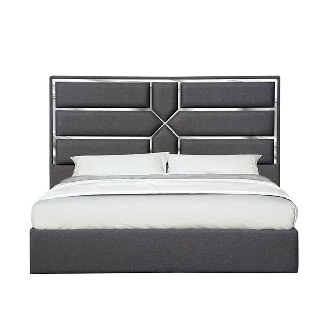 J & M Furniture 18730-Q 55.5 x 64.5 x 83.4 in. Da Vinci Queen Size Bed, Charcoal