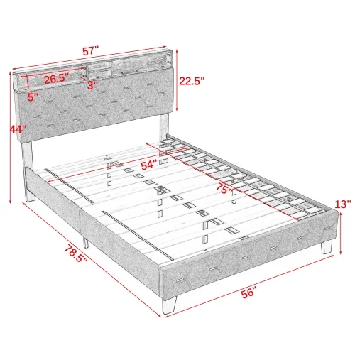 Complete Storage Bed Solution with Frame and Slats for Double Size Bed