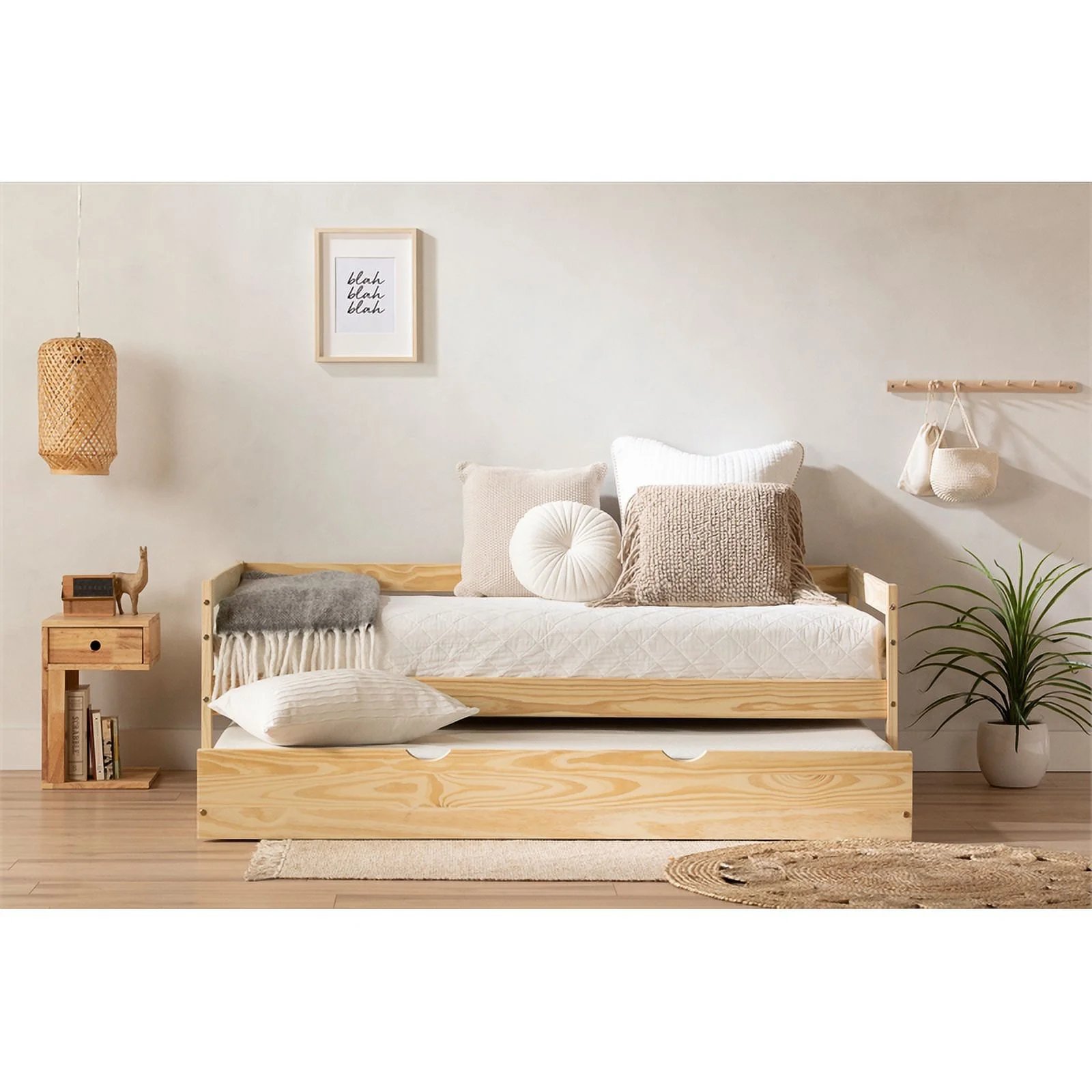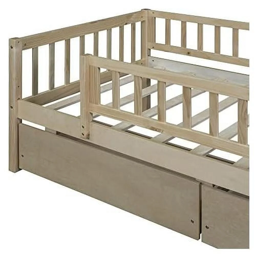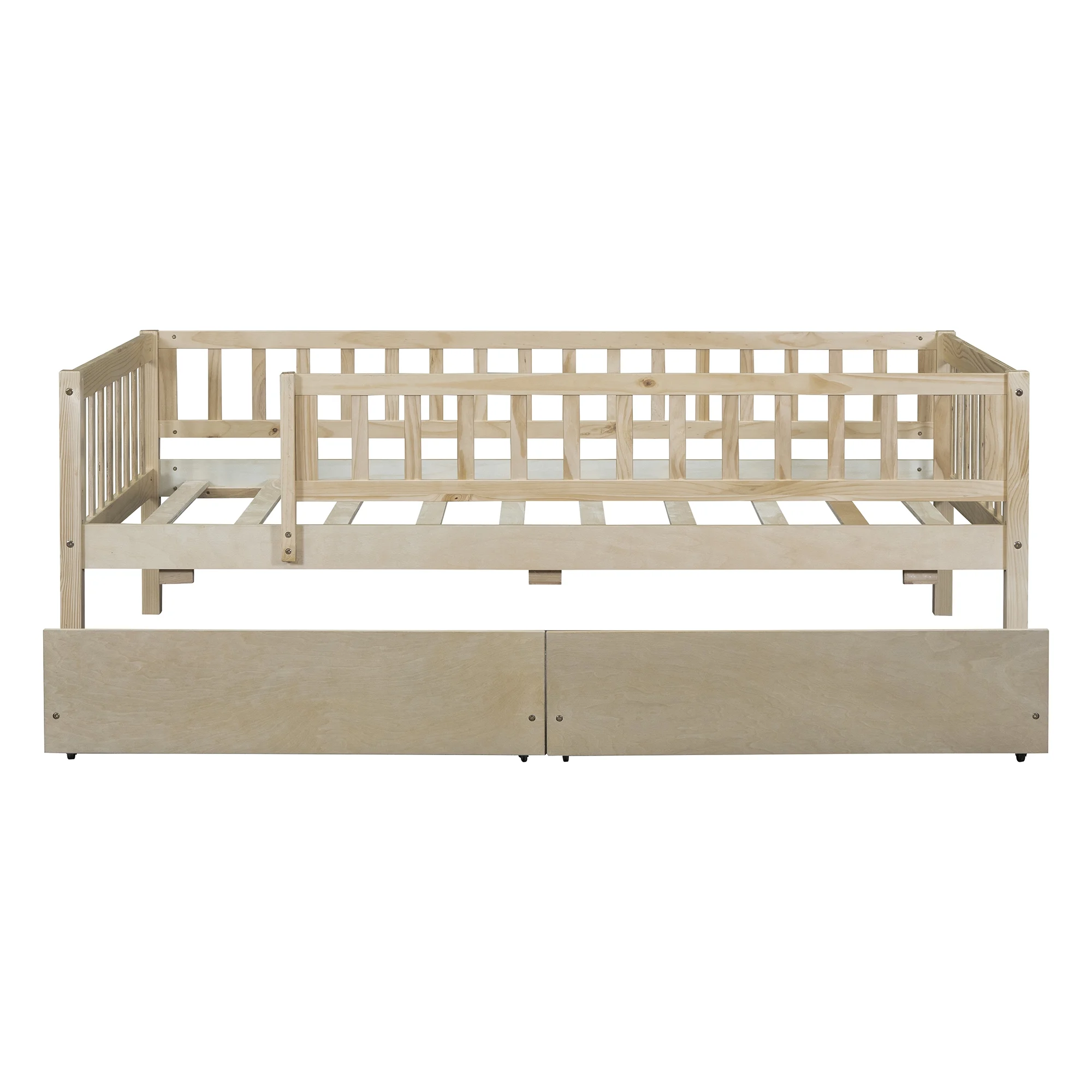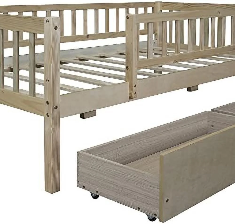 Size Daybed With Drawers, Wood Bed Frame, No Box Spring Needed, Natural