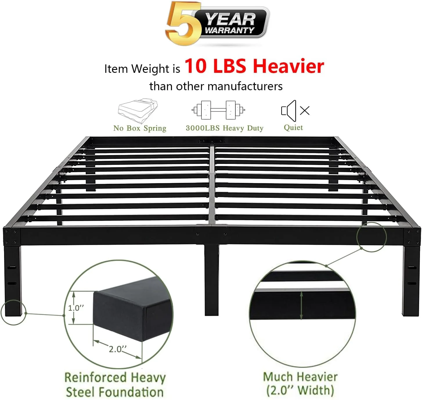 JIAH 18 Inch Bed Frame/Reinforced /3500lbs /Easy Assembly/Mattress Foundation/Steel Slat/Noise Free, King