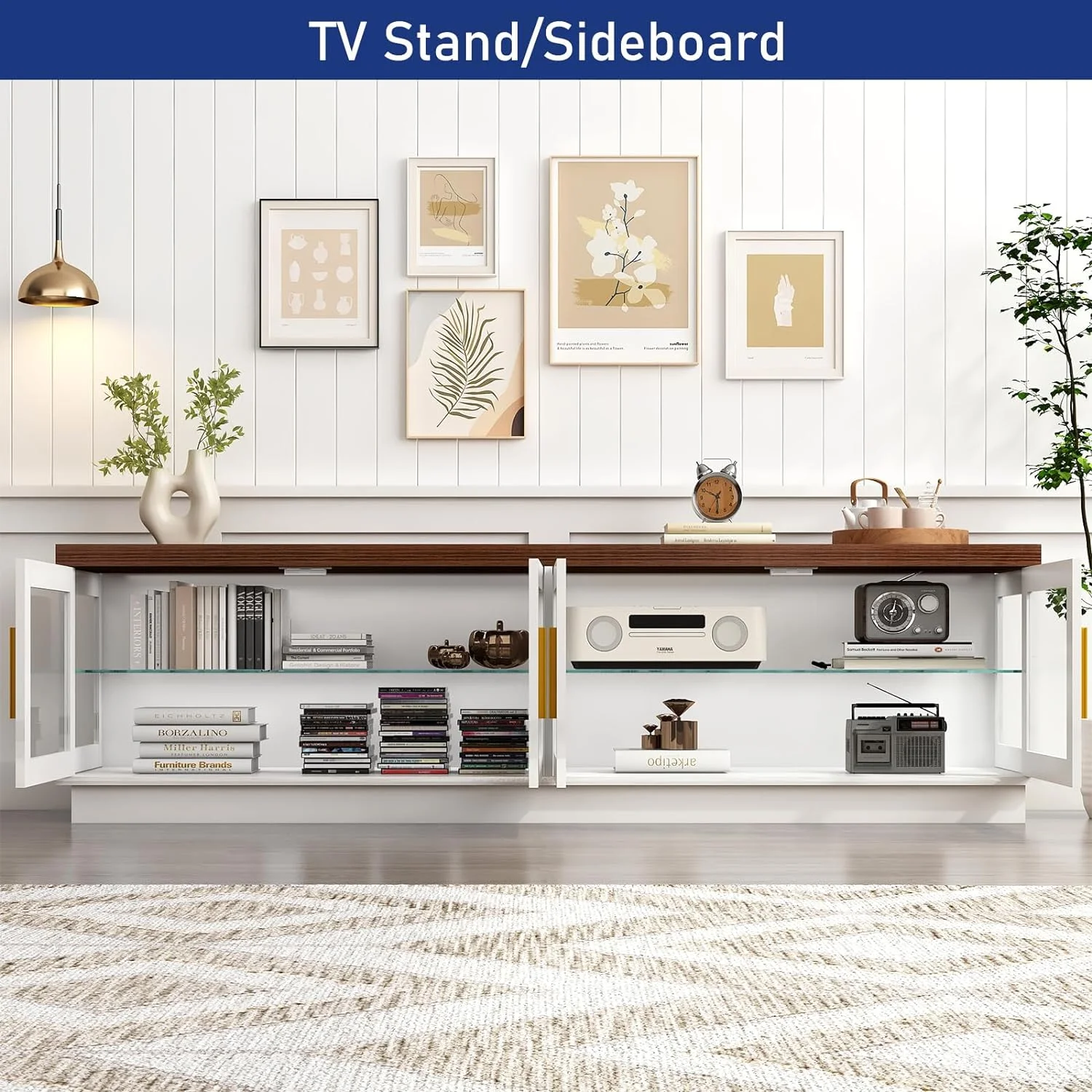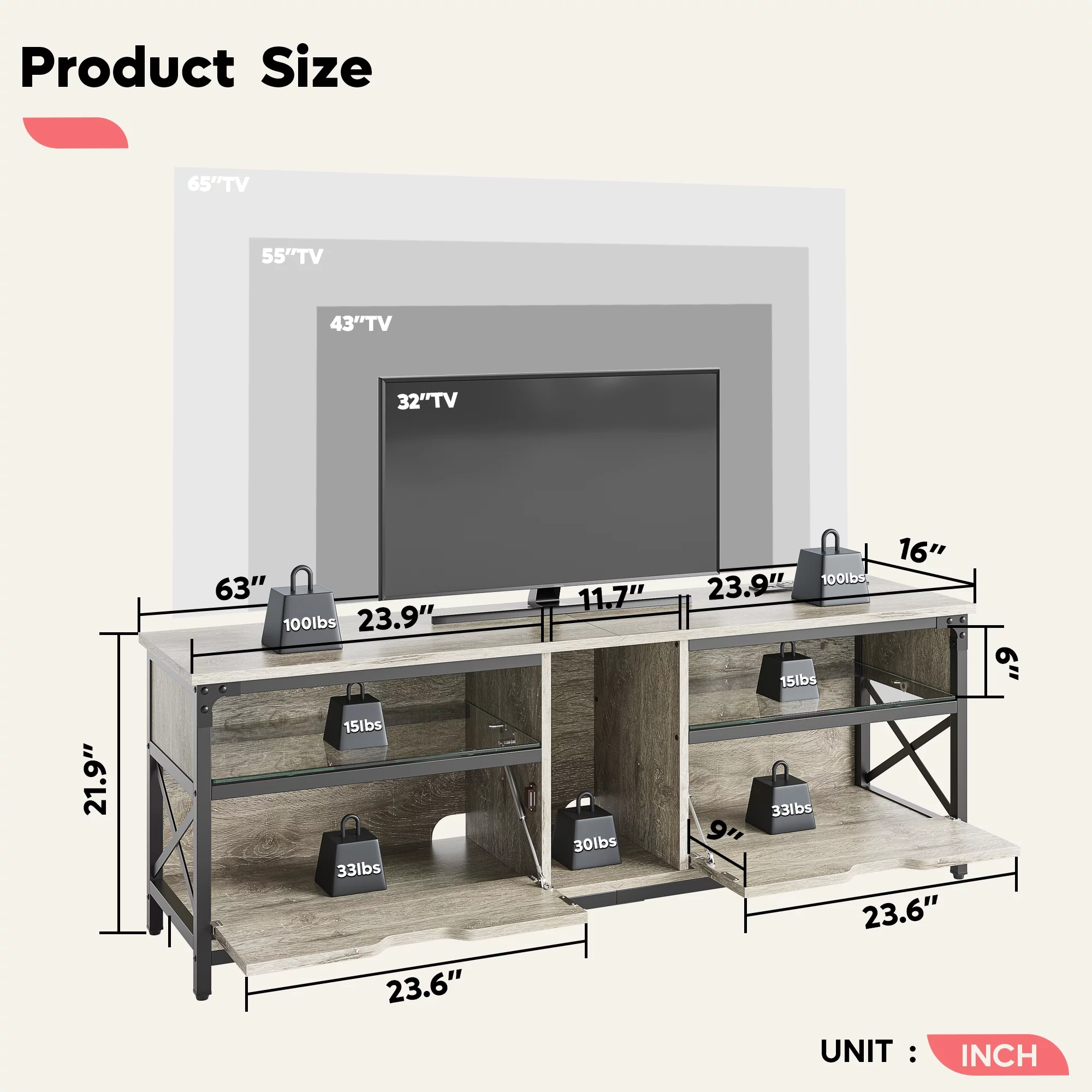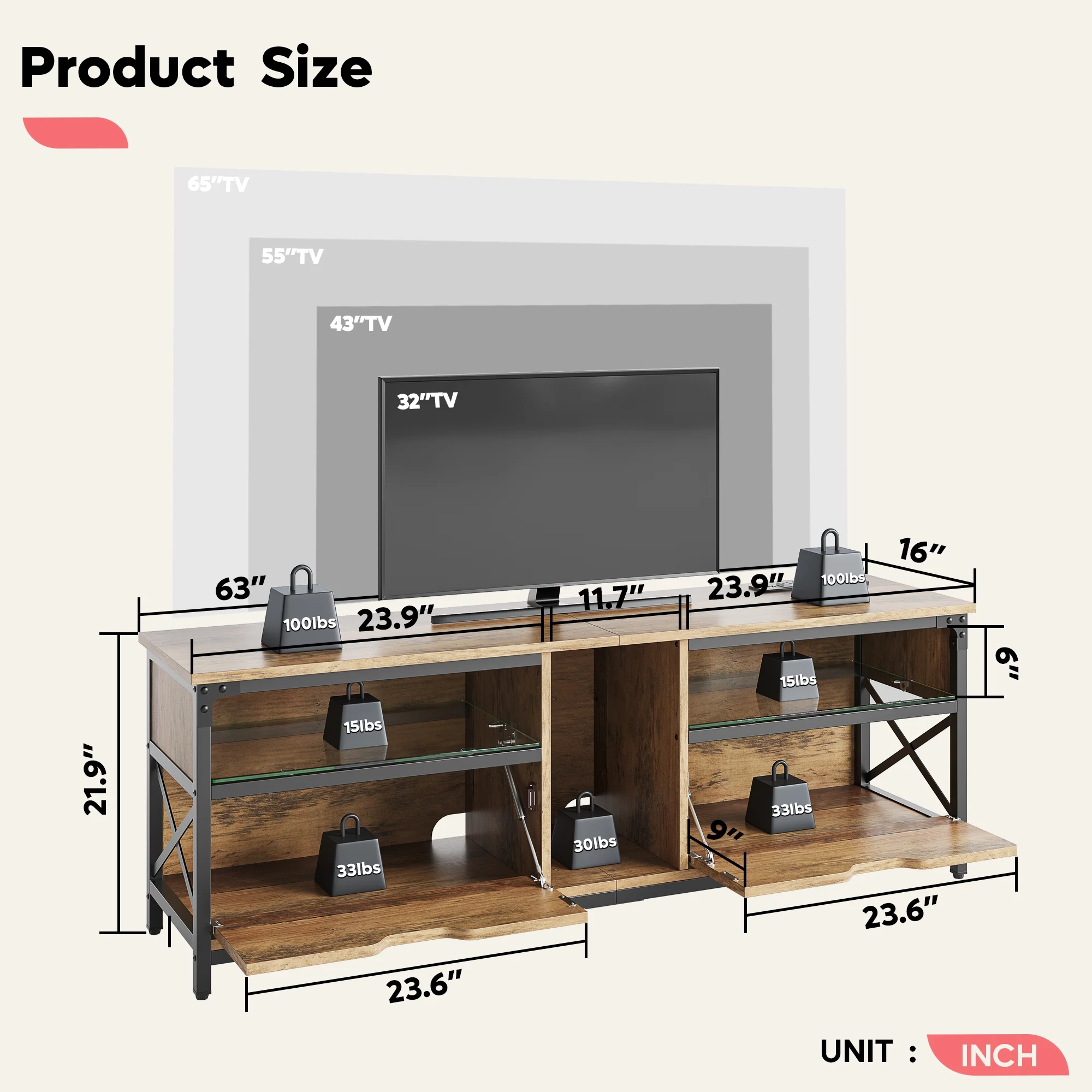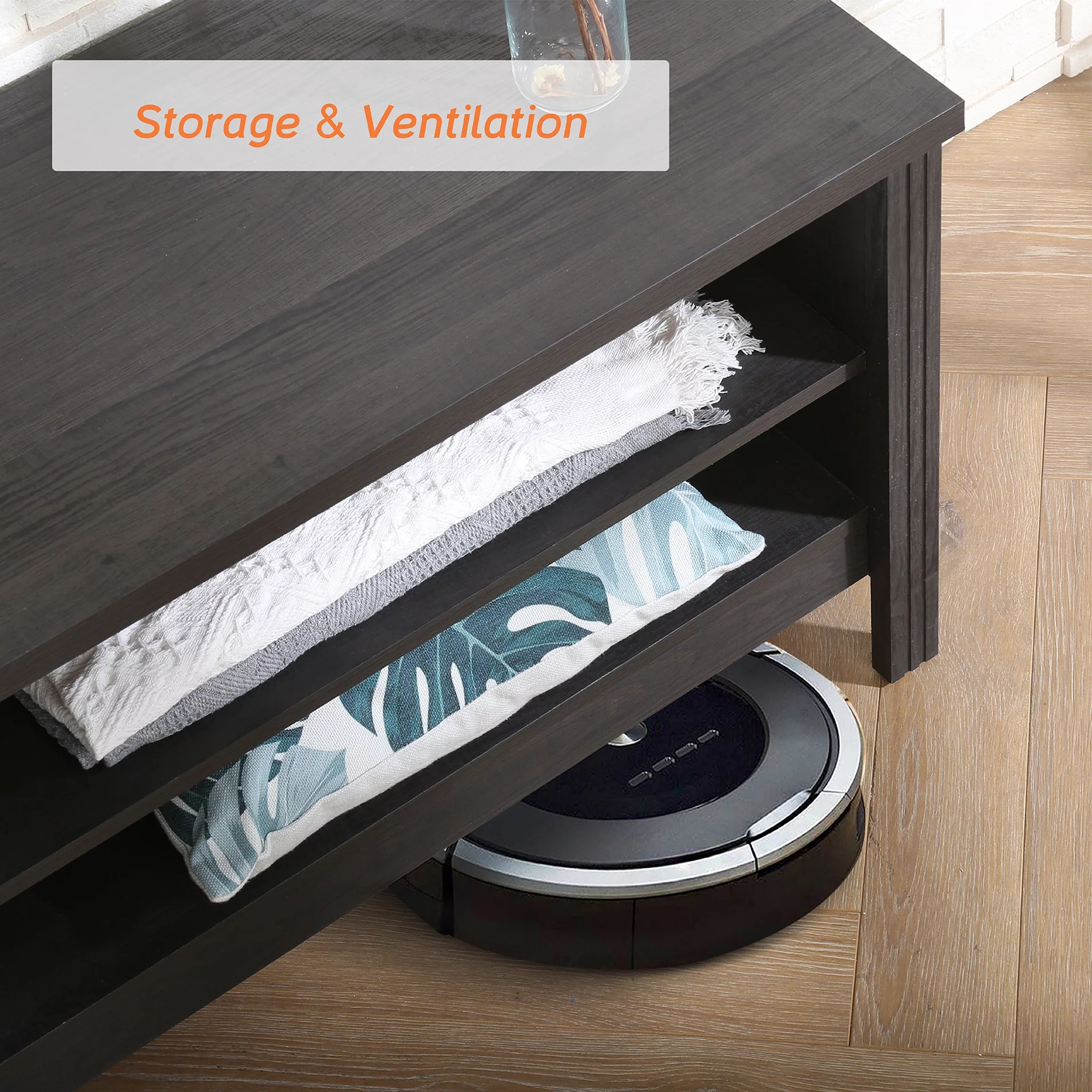 TV Stand for 75 Inch TV, Farmhouse Wood TV Cabinet with 6 Cubby for Living Room Bedroom,70 inch Black