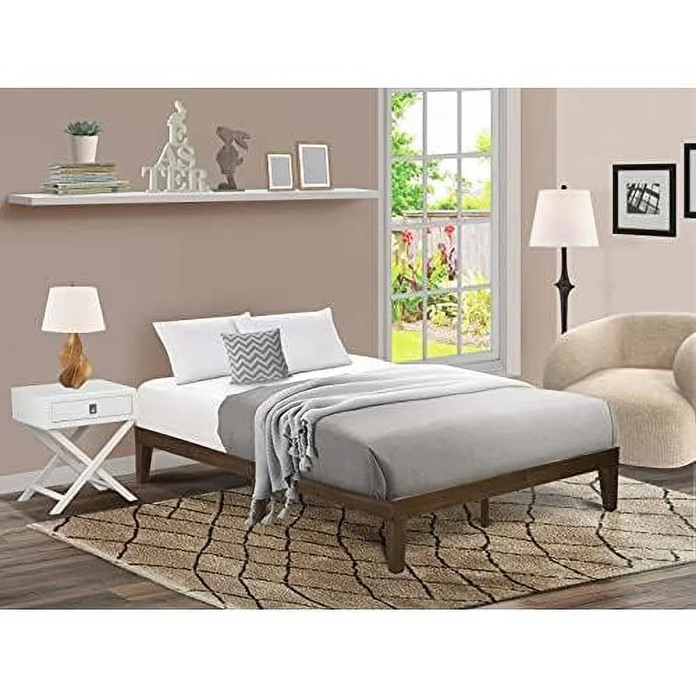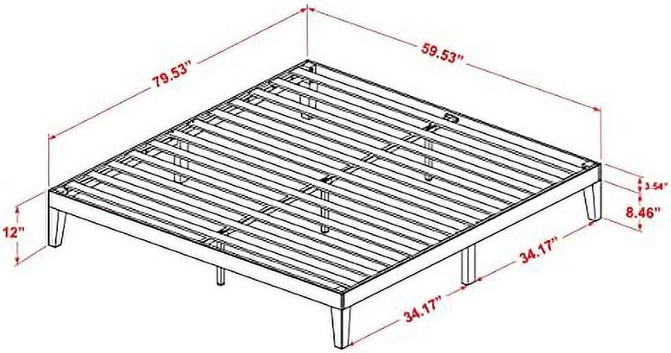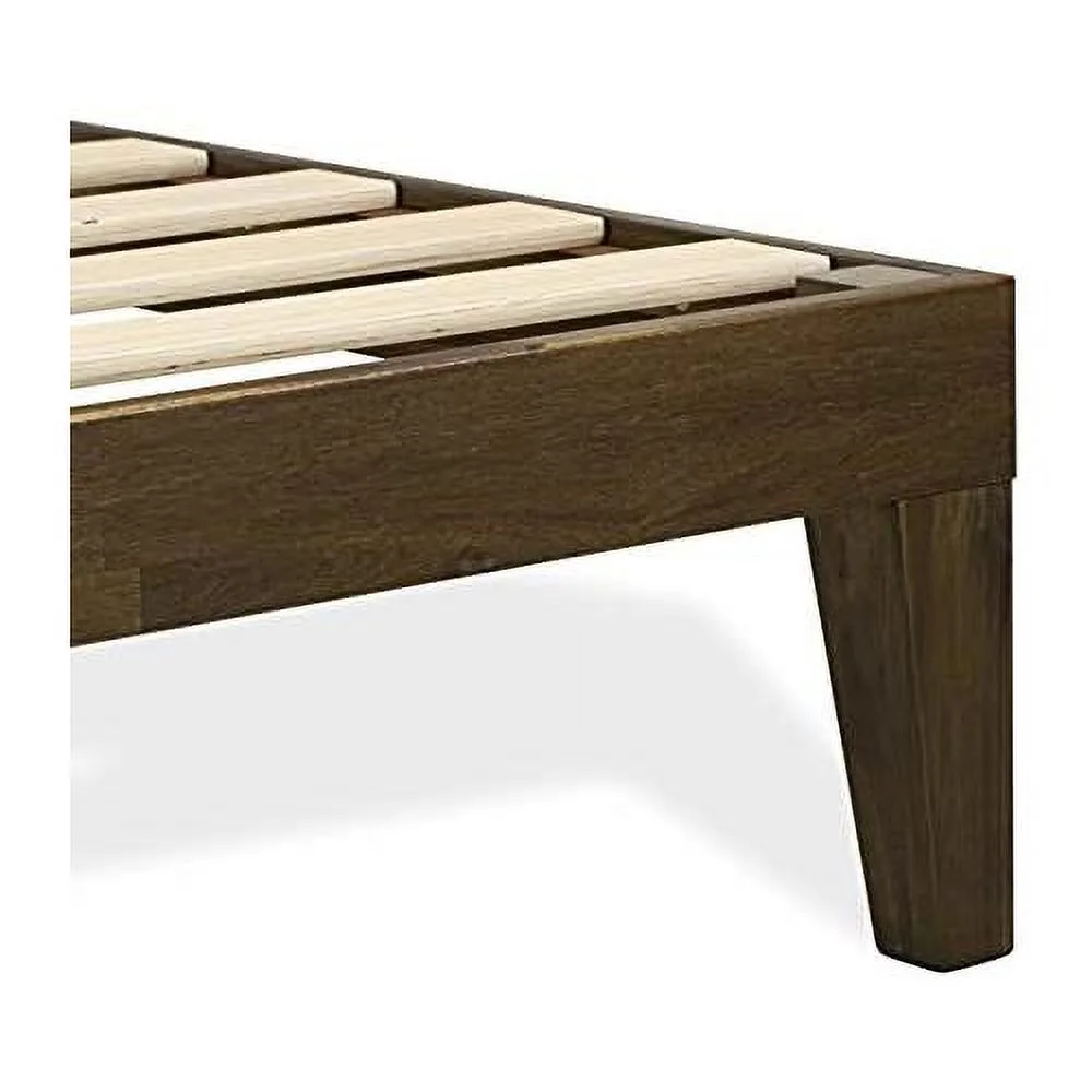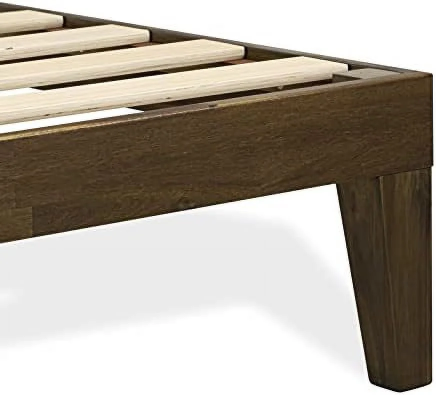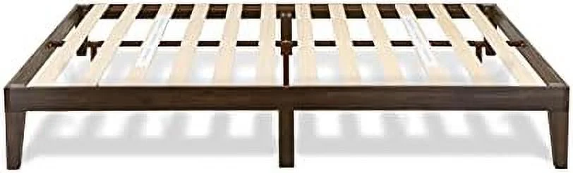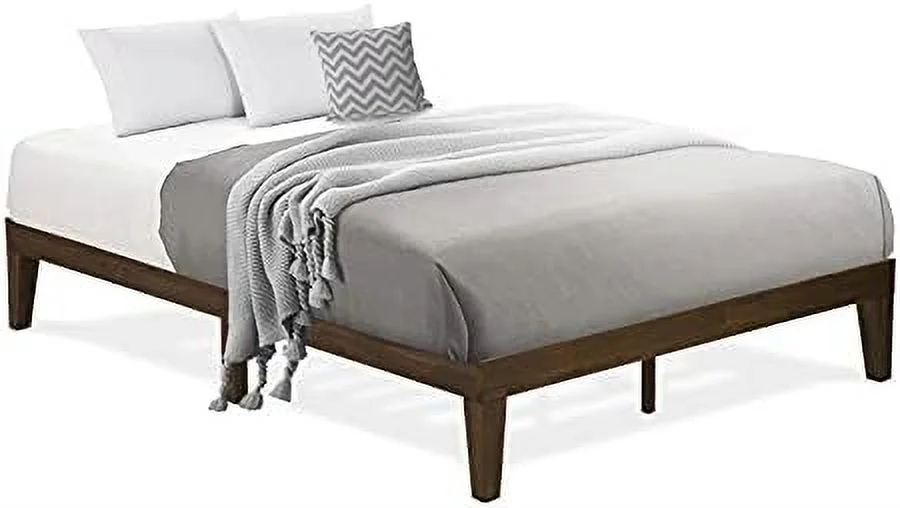 Queen Platform Bed Frame With 4 Solid Wood Legs And 2 Extra Center Legs - Walnut Finish