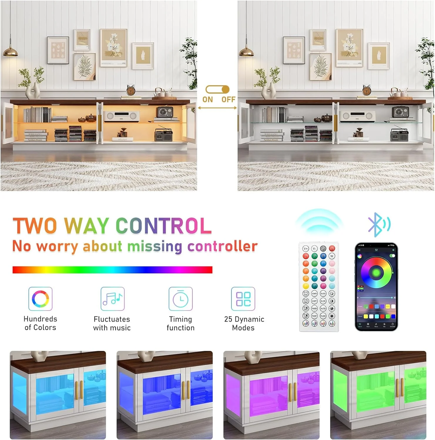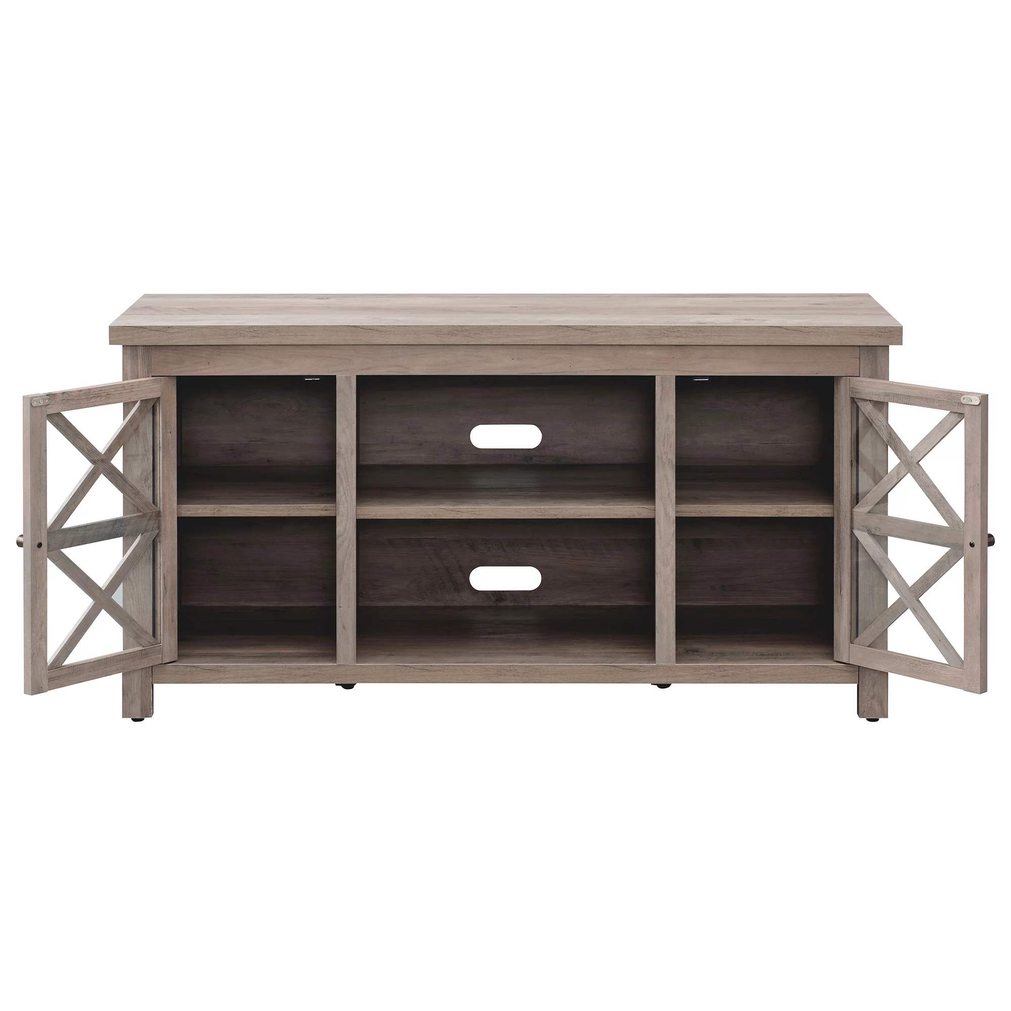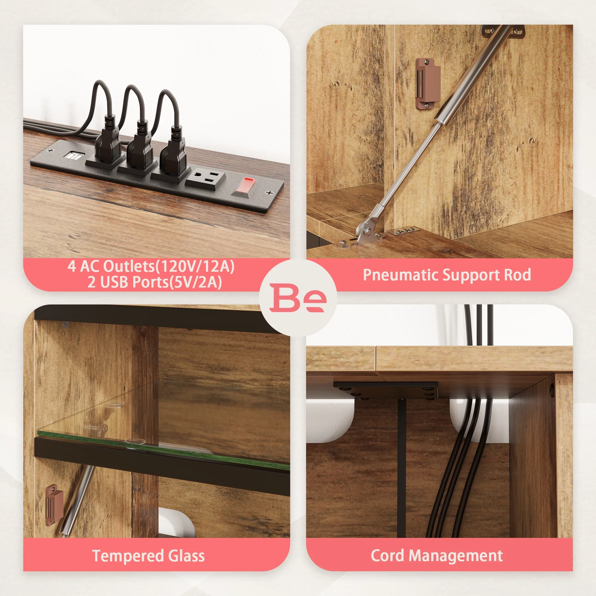Bestier Modern Farmhouse TV Stand for TVs up to 70" with Charging Station & LED Lights, Weathered Rustic Oak