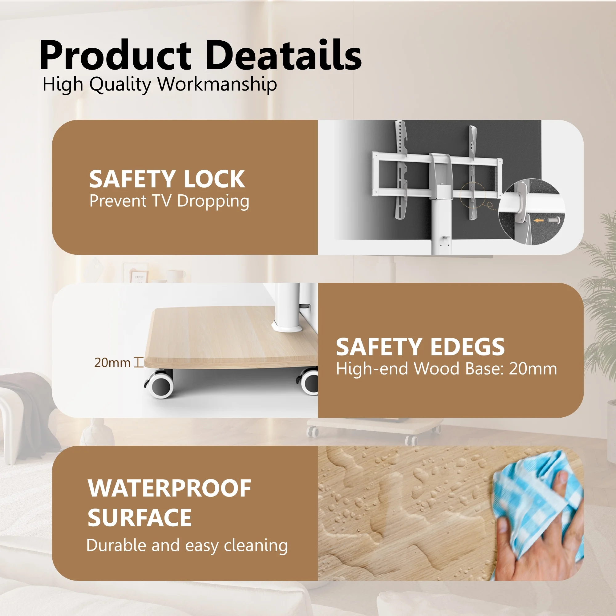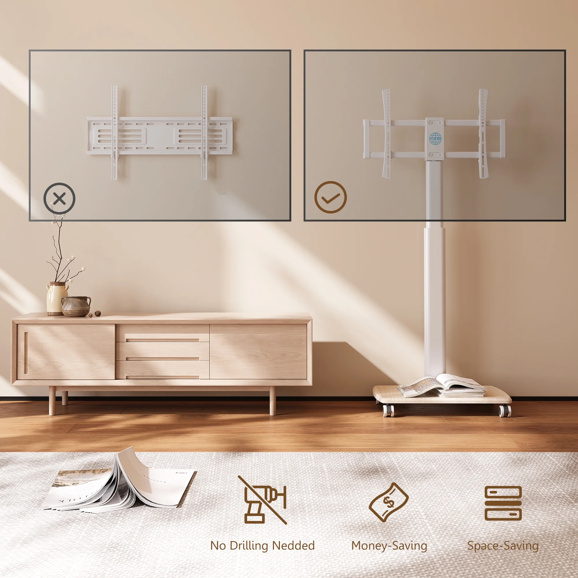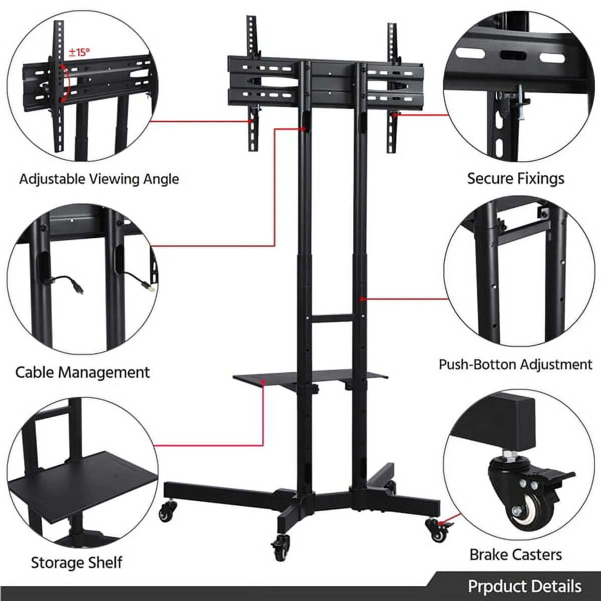Easyfashion Modern Mobile TV Stand Rolling TV Cart for Flat Panel TVs up to 75'', Black