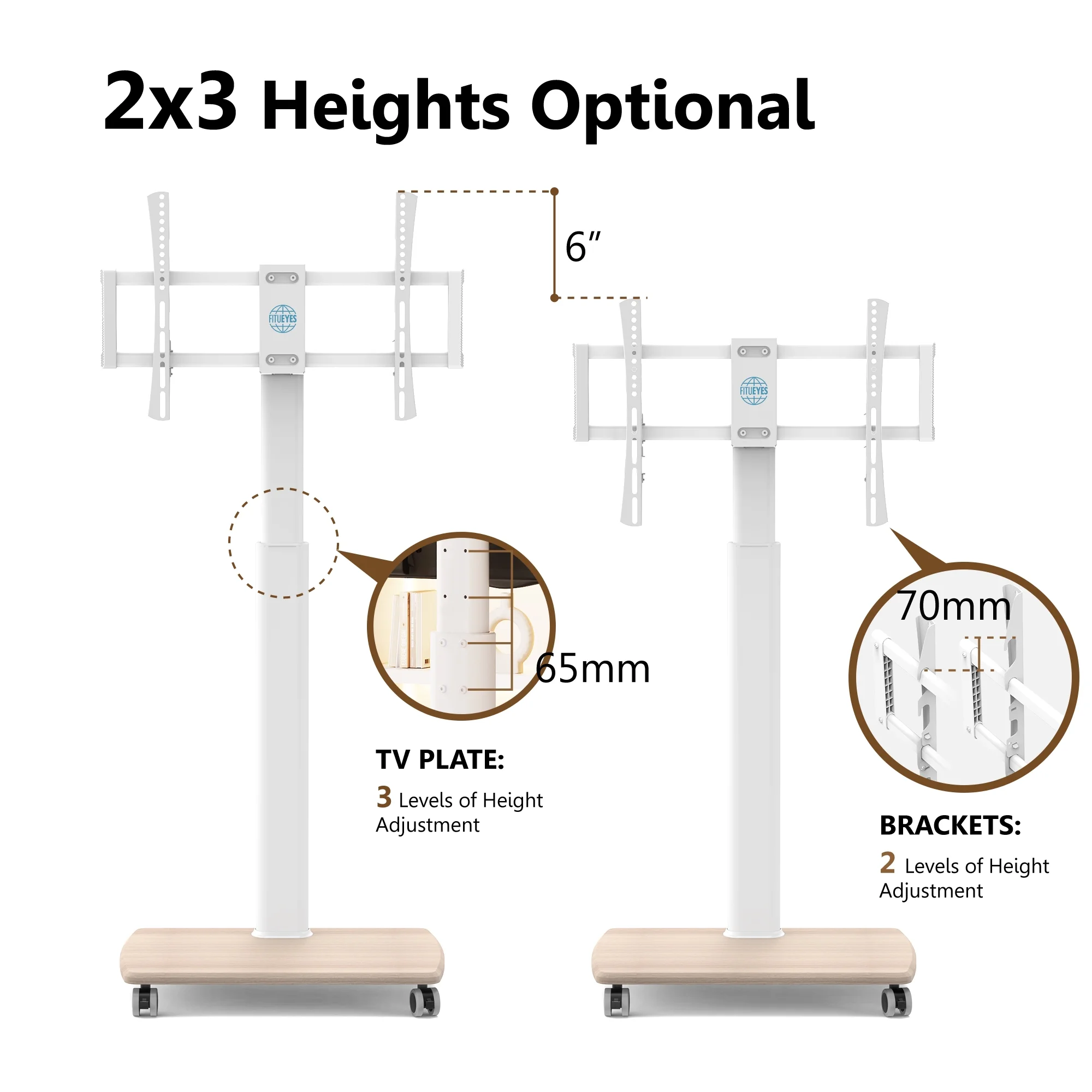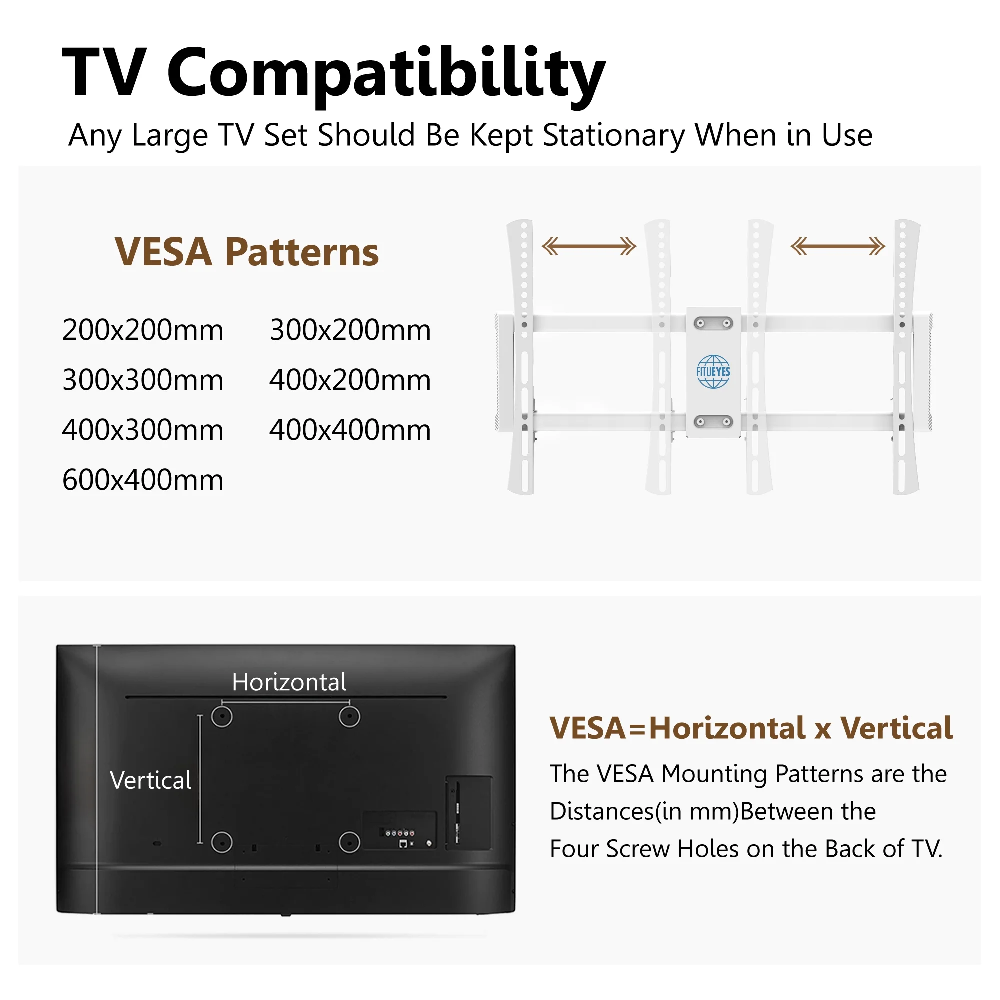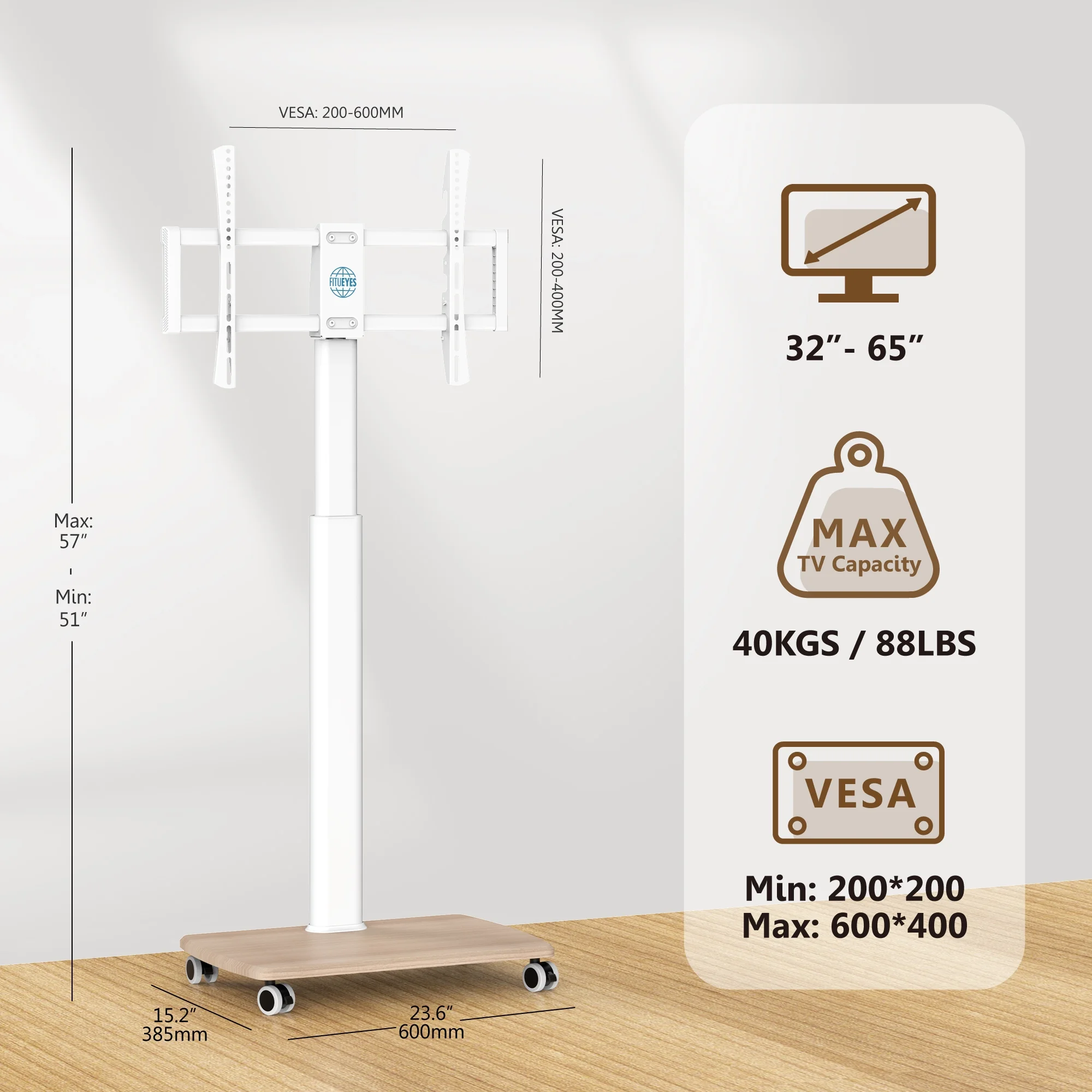 PERLESMITH Universal TV Stand for 37-75" Flat Screen TVs with Height Adjustable Max 600x400, Holds up to 99 lbs