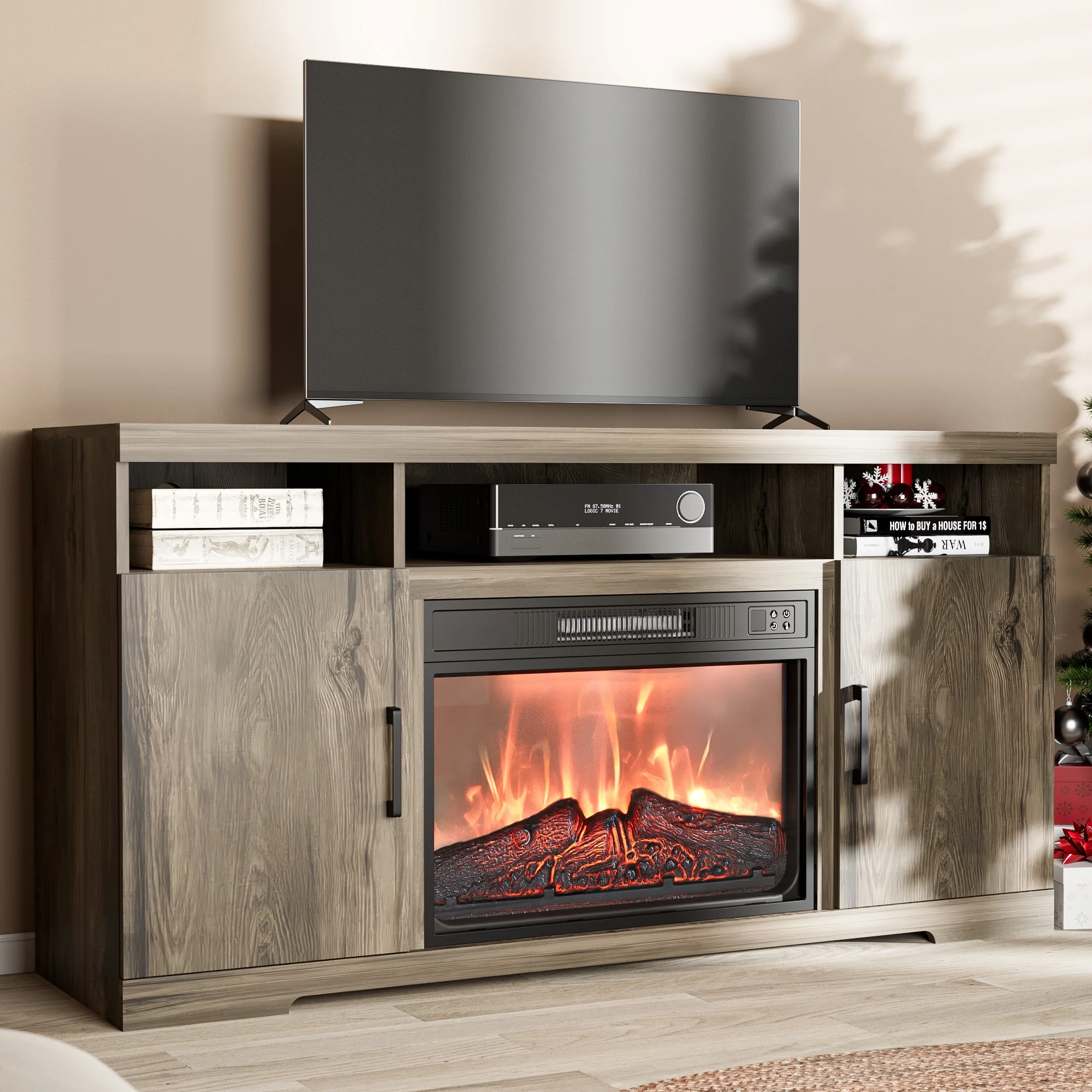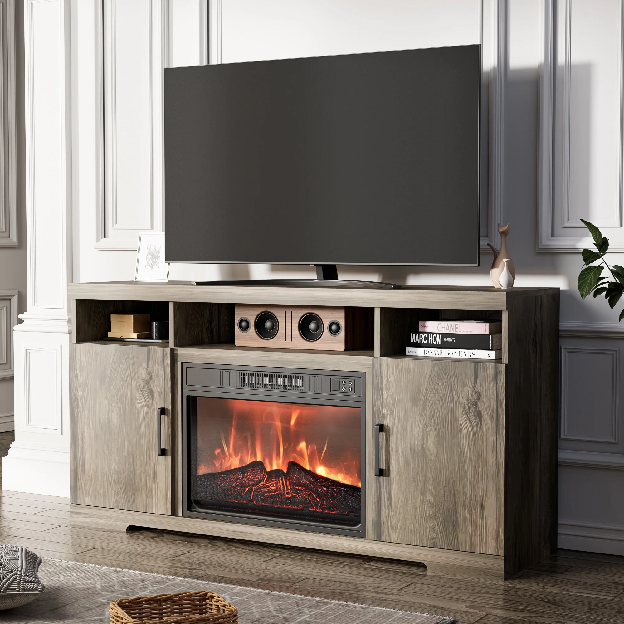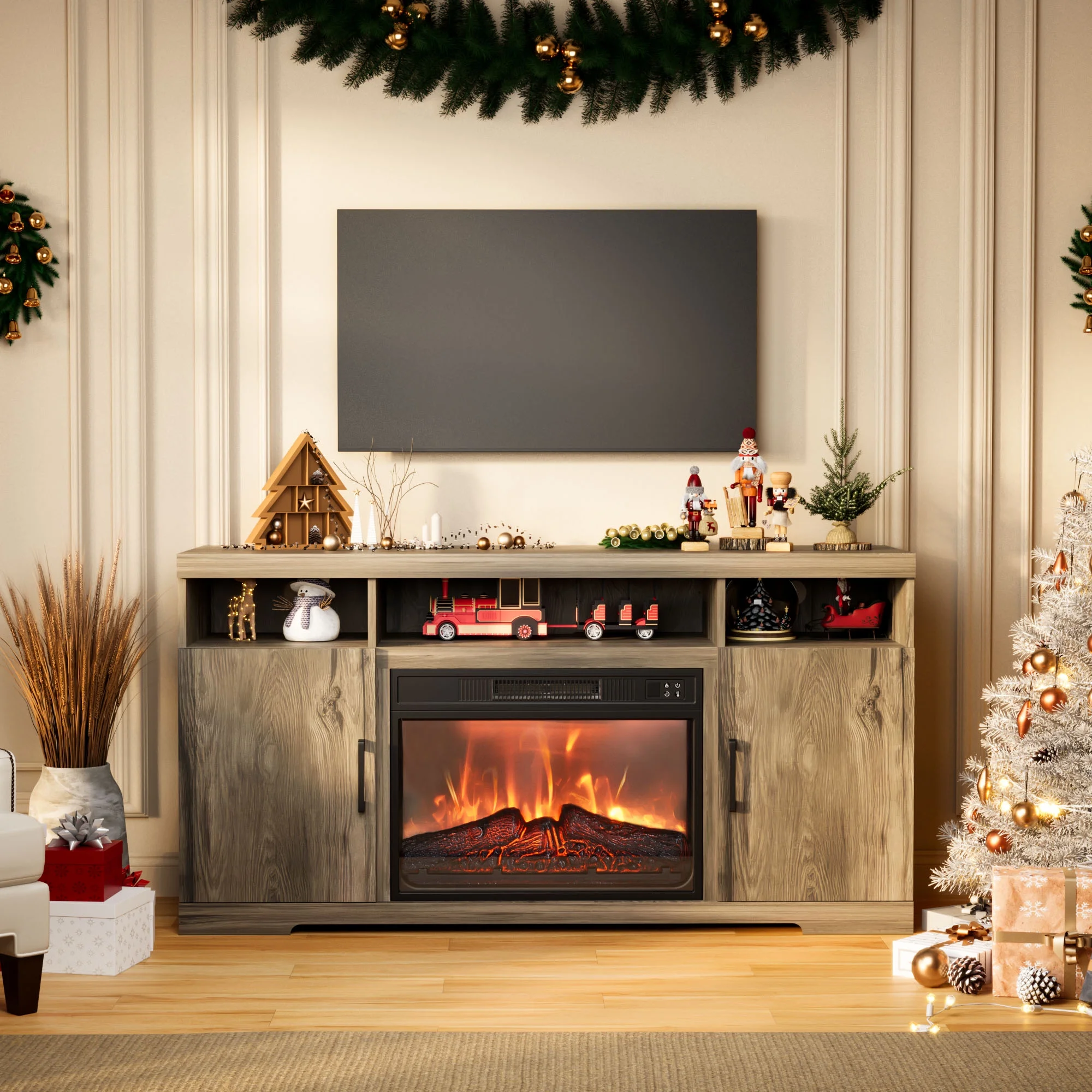 WedealFu Inc Farmhouse Corner TV Stand Entertainment Center Media Console for TVs up to 55" with Power Outlet Brown