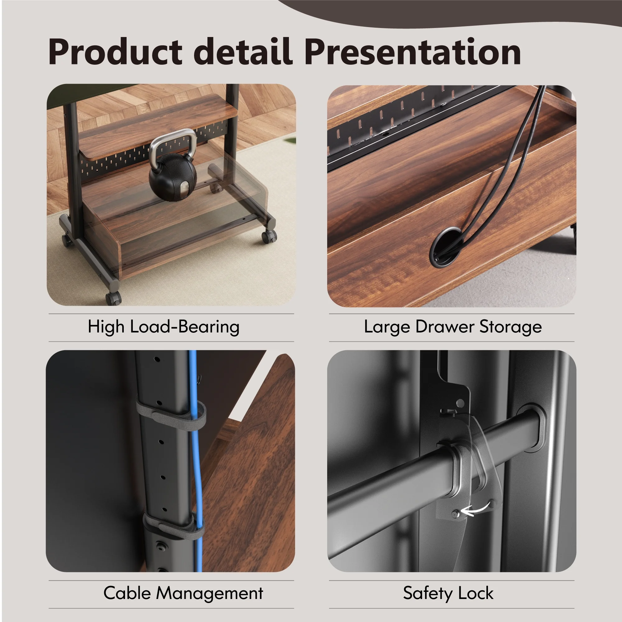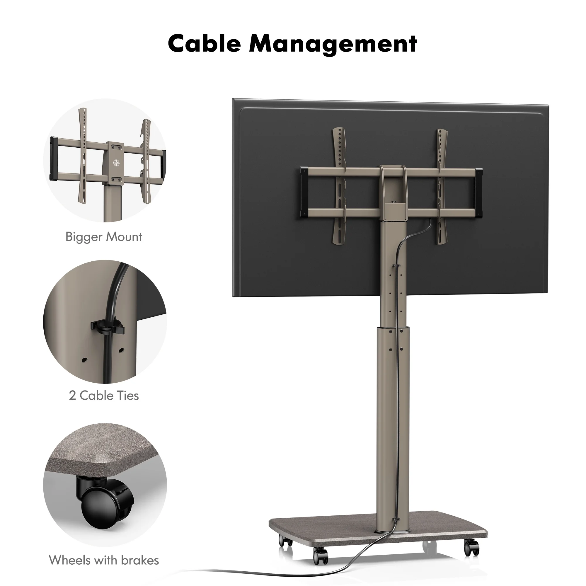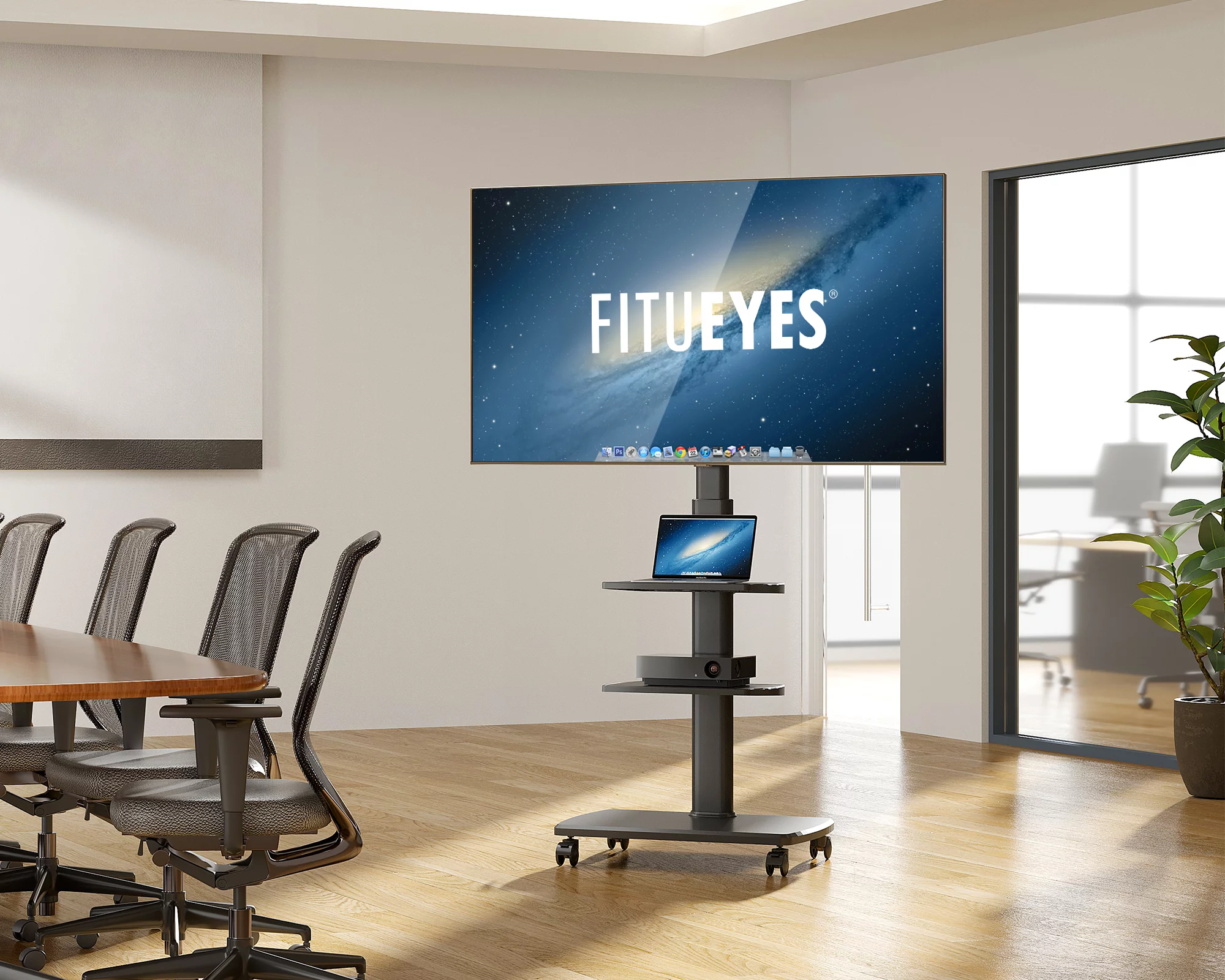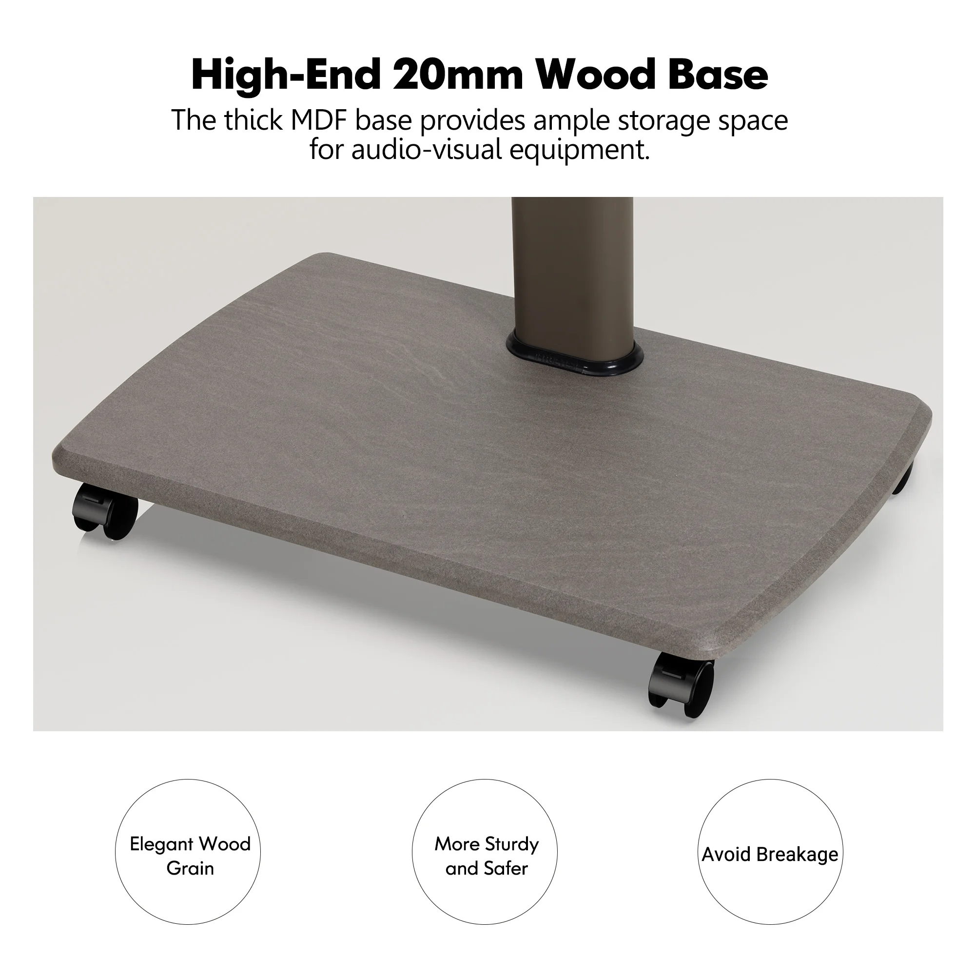 Floor TV Stand For Tvs up To 65”, Black & Modern Mobile TV Stand on Wheels, Wooden Base
