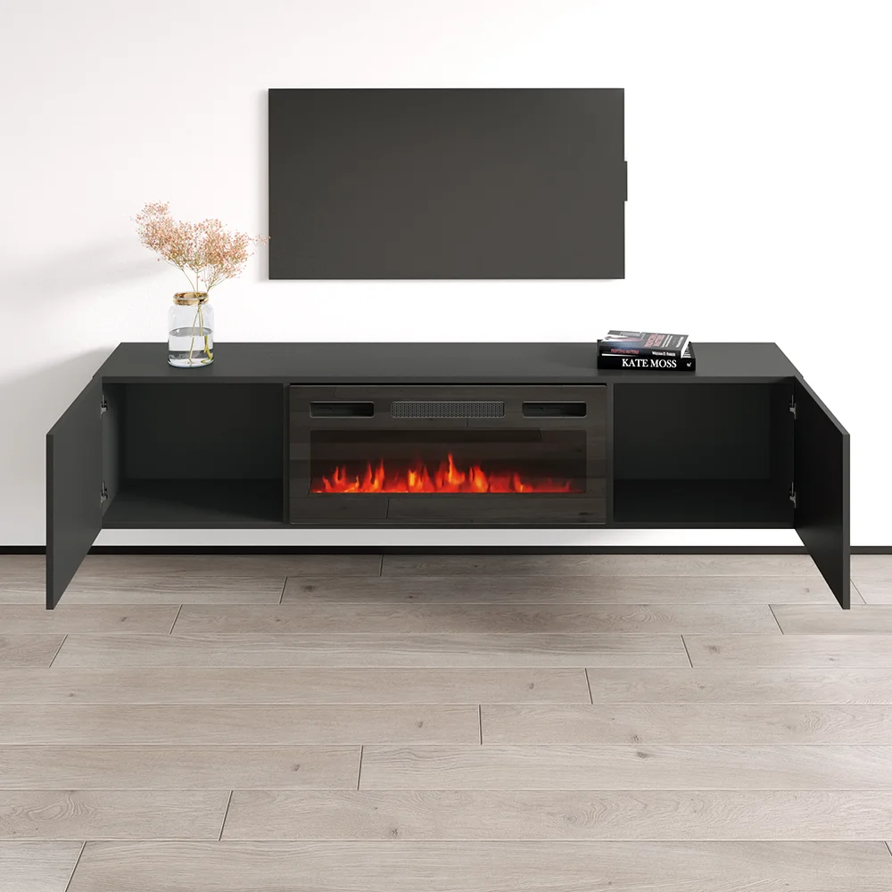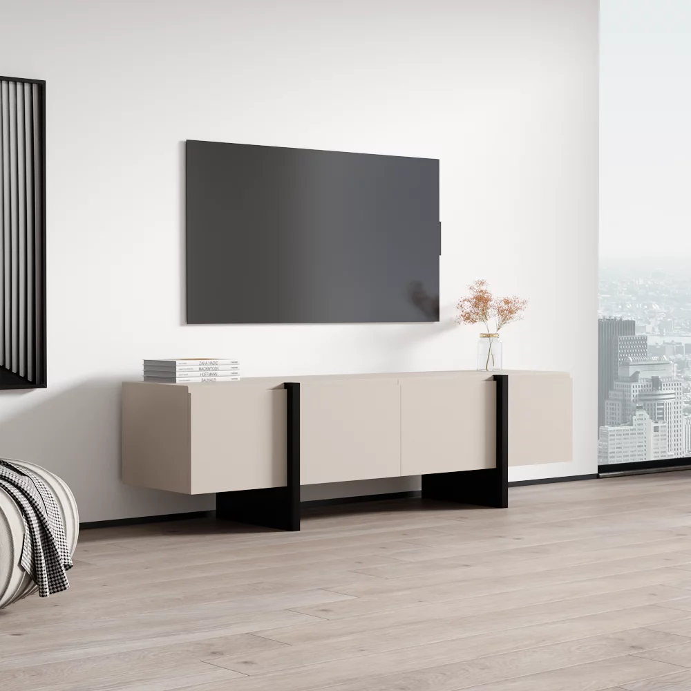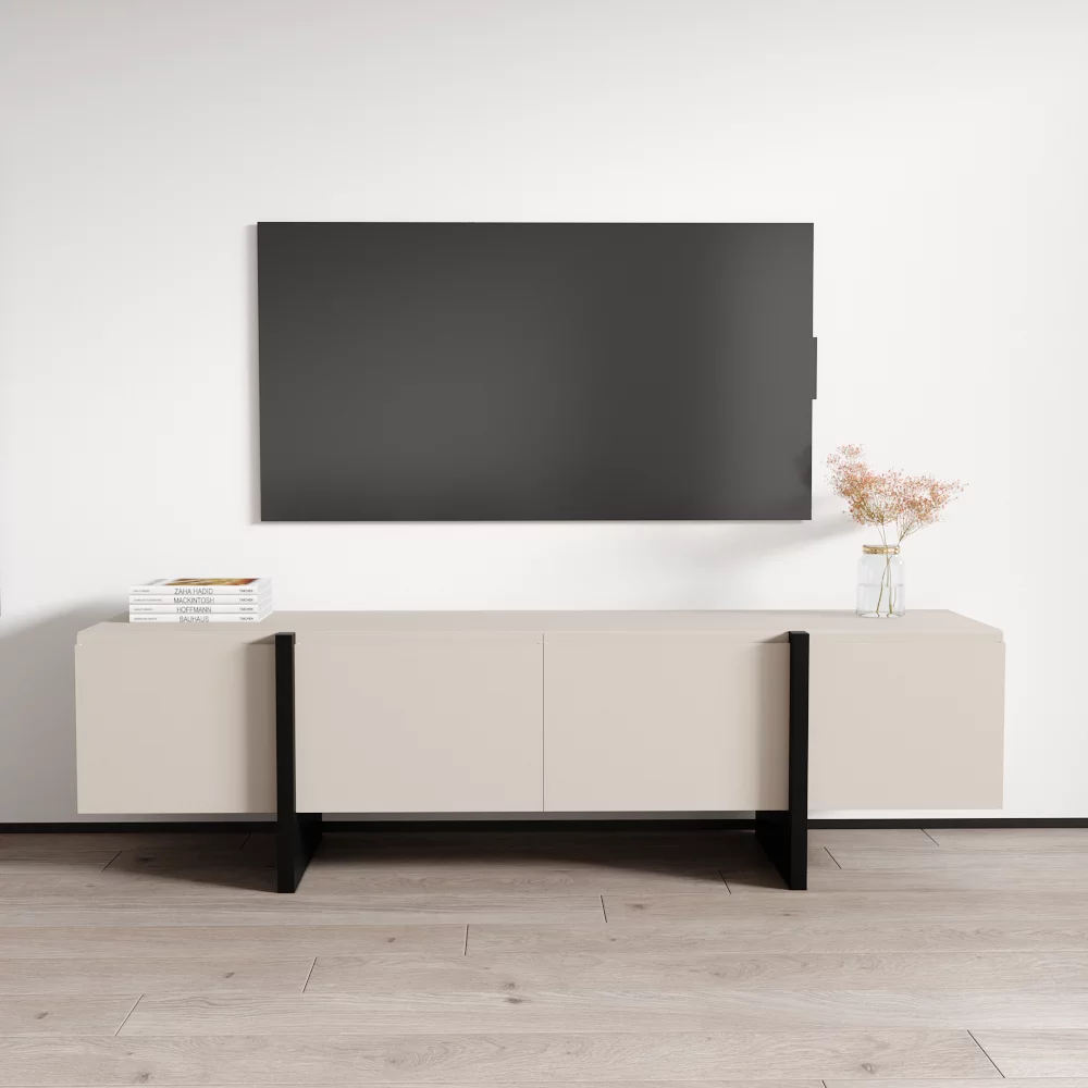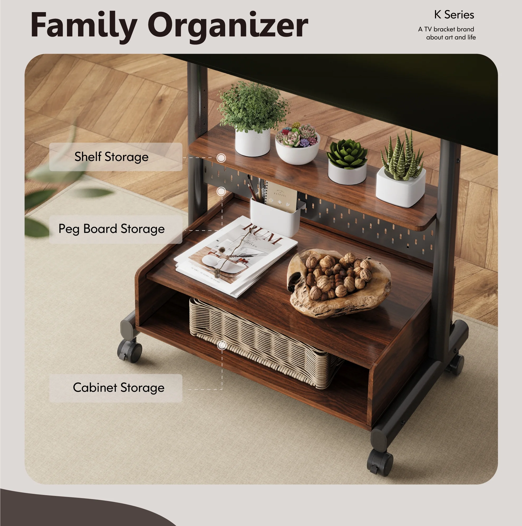 Floor TV Stand For Tvs up To 65”, Black & Modern Mobile TV Stand on Wheels, Wooden Base