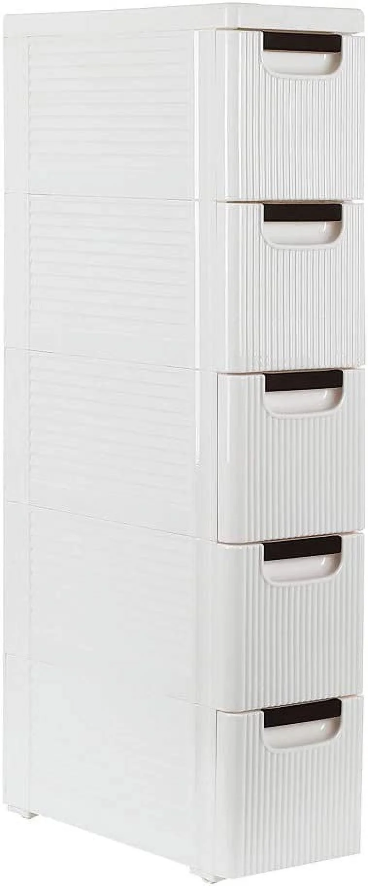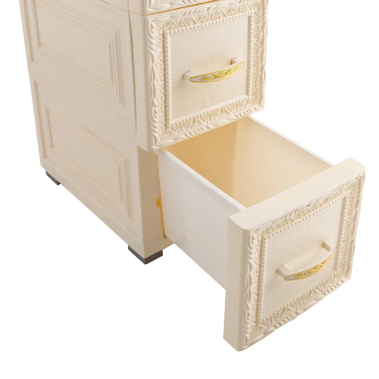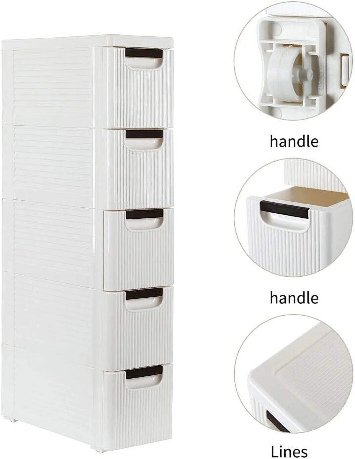 DENEST 5 Tiers Moveable Cabinet Cupboard Chest Storage Organizer with 6 Drawers Wheels