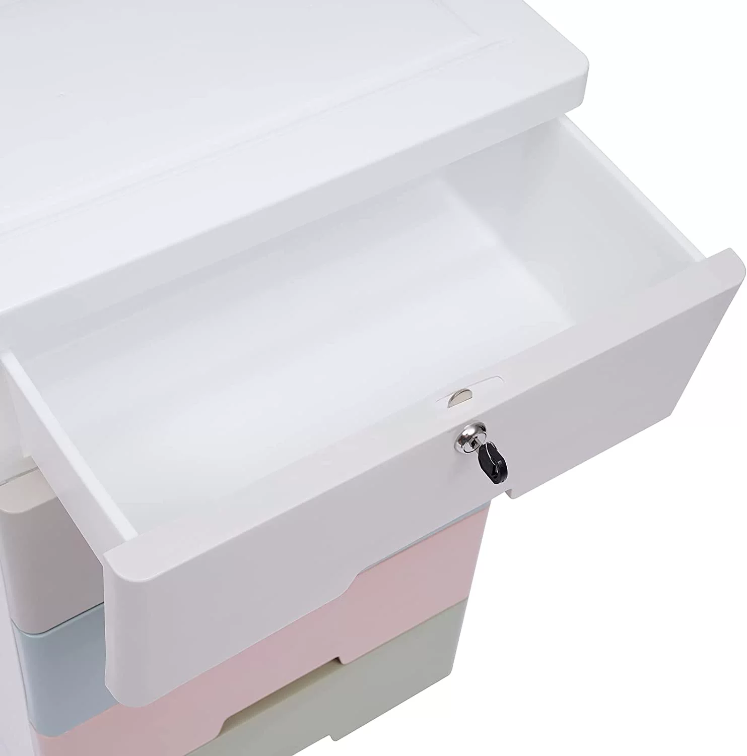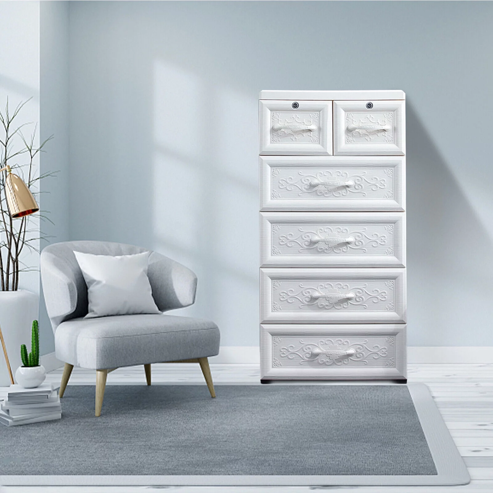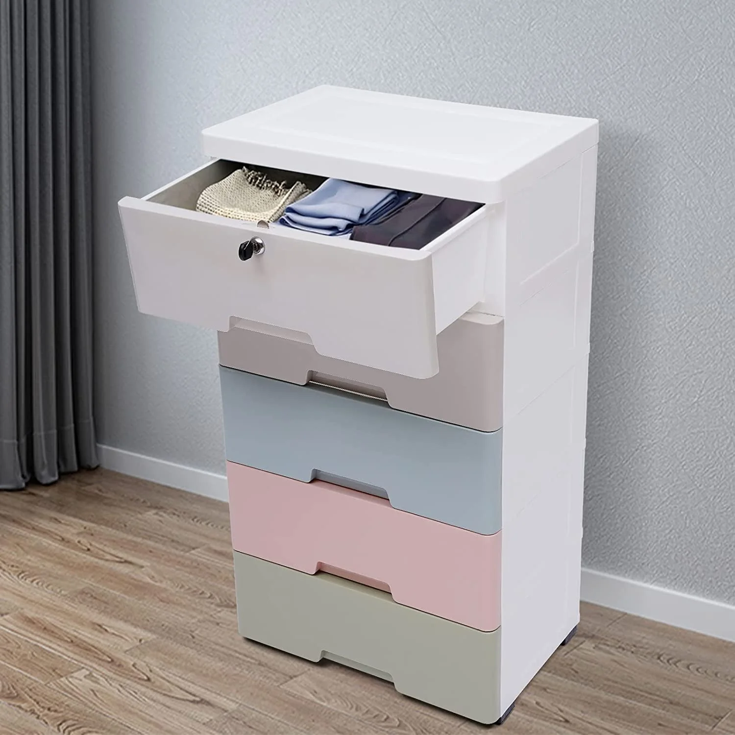 DENEST 5 Tiers Moveable Cabinet Cupboard Chest Storage Organizer with 6 Drawers Wheels